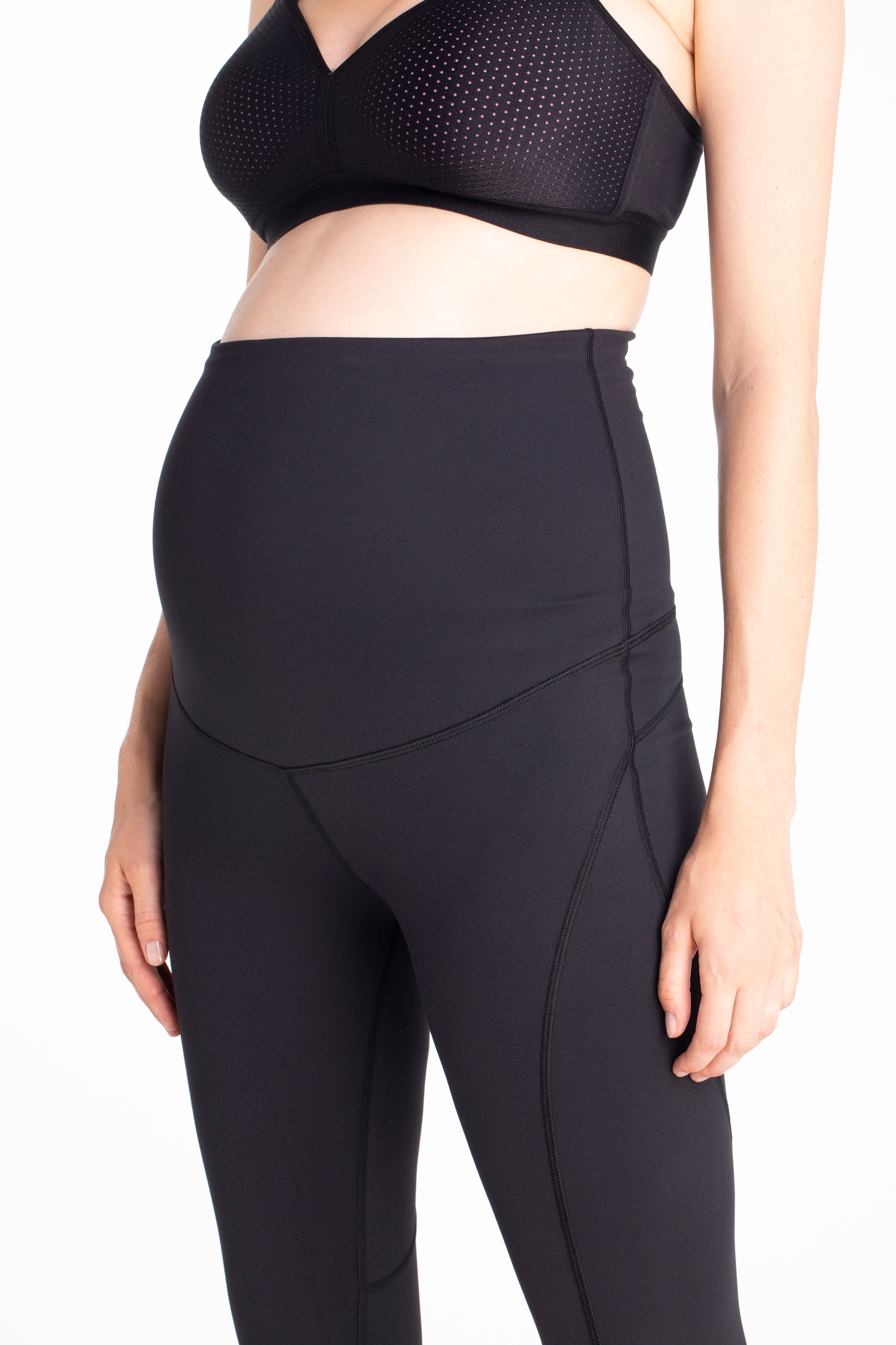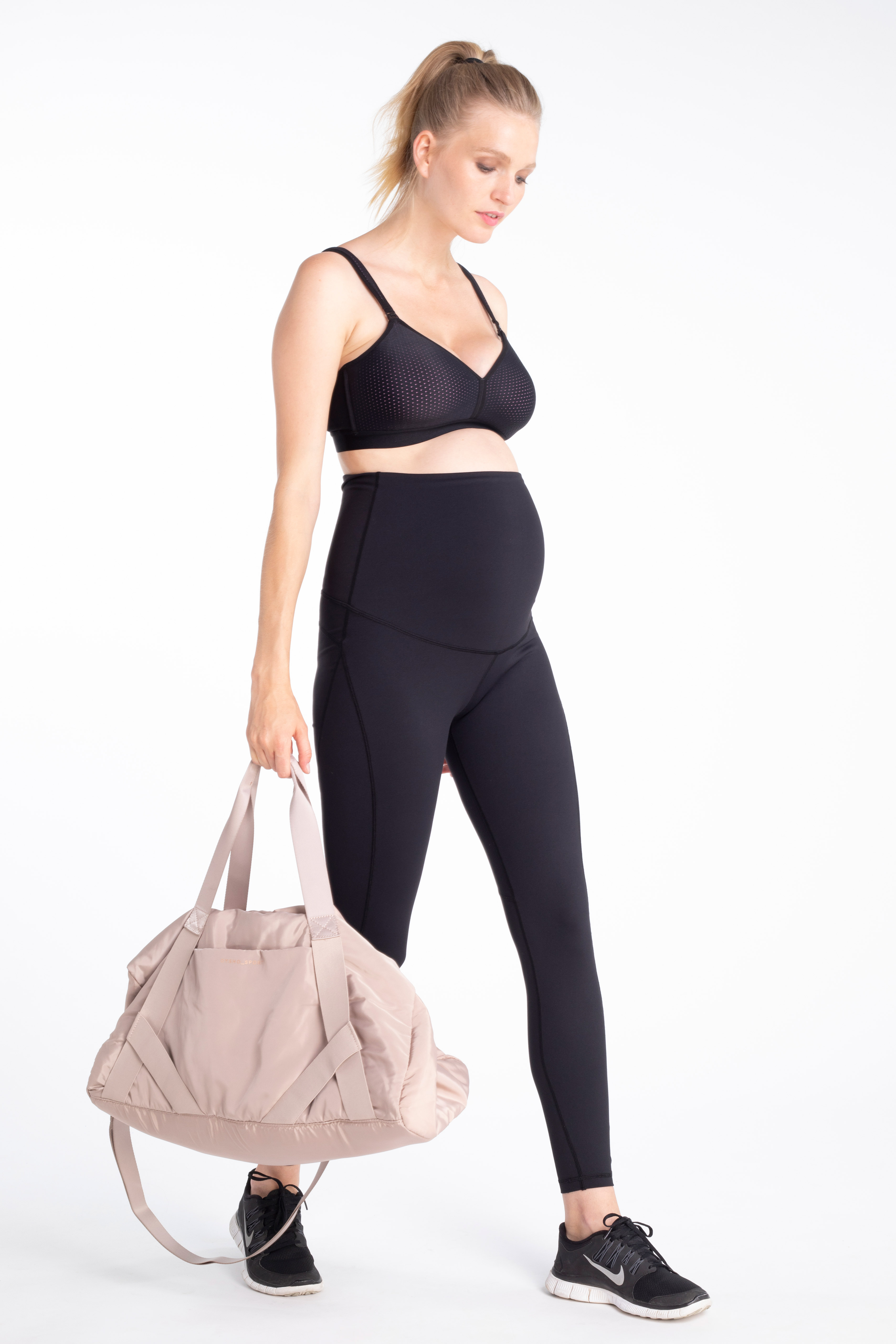 Unser Model Nele ist 179cm groß und auf den Fotos in der 33. SSW. Sie trägt die Leggings in Gr. S/M und dazu den Sport Mesh Umstands und Still BH >> in Gr. S.