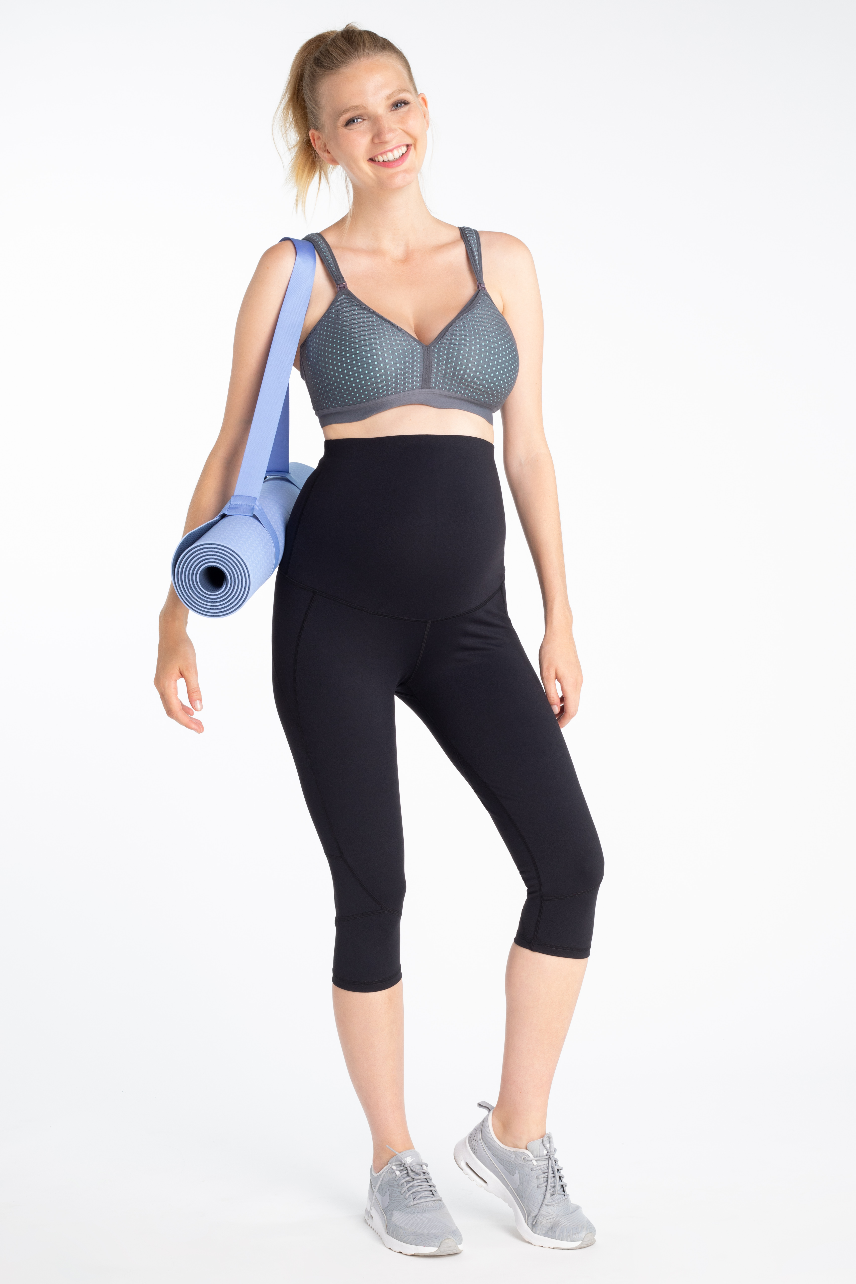 Unser Model Nele ist 179cm groß und auf den Fotos in der 33. SSW. Sie trägt die Leggings in Gr. S/M und dazu den Sport Mesh Umstands und Still BH >> in Gr. S.