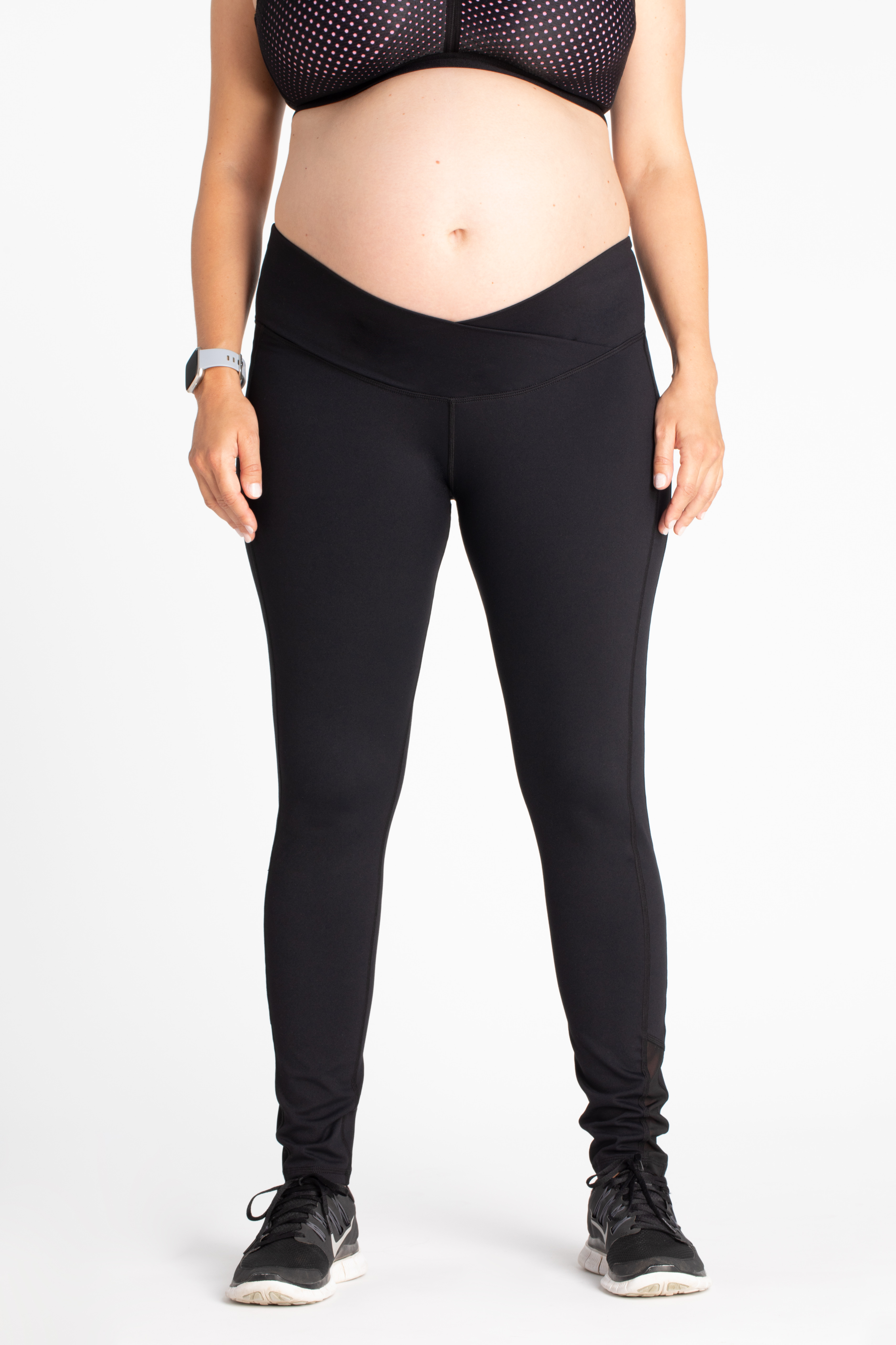 Active Umstandsleggings mit stylischen Mesh Einsätzen an den Beinenden und komfortablem Unterbauchbund, der deinen Bauch bei all deinen sportlichen Aktivitäten angenehm stützt. Das elastische Material der Leggings und das gekreuzte Design des Bundes lassen deinem Bauch in allen Phasen der Schwangerschaft genug Platz zum Wachsen und garantieren dir stets maximale Bewegungsfreiheit. Auch nach der Geburt kannst du die Leggings bequem weitertragen. Farbe: schwarz