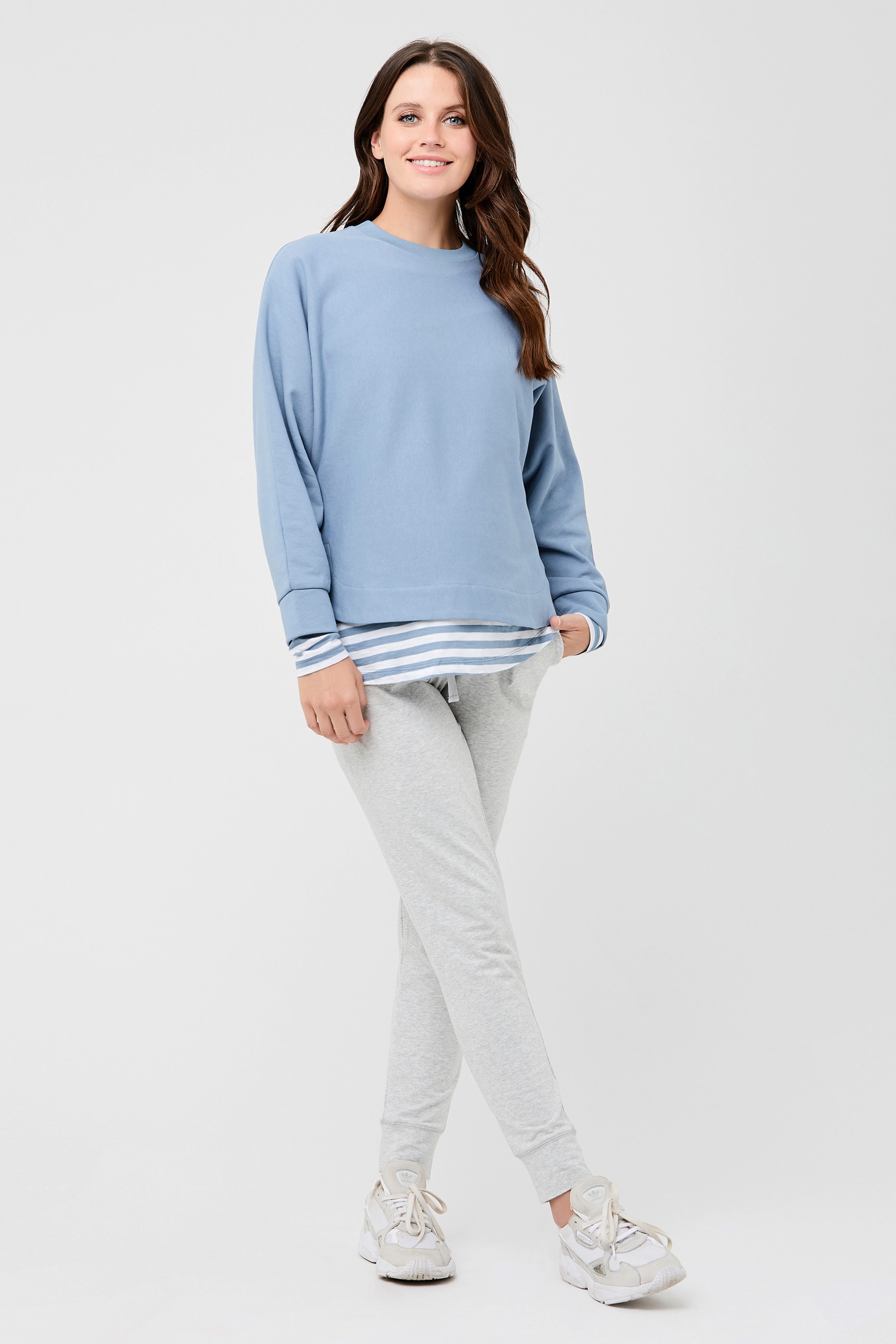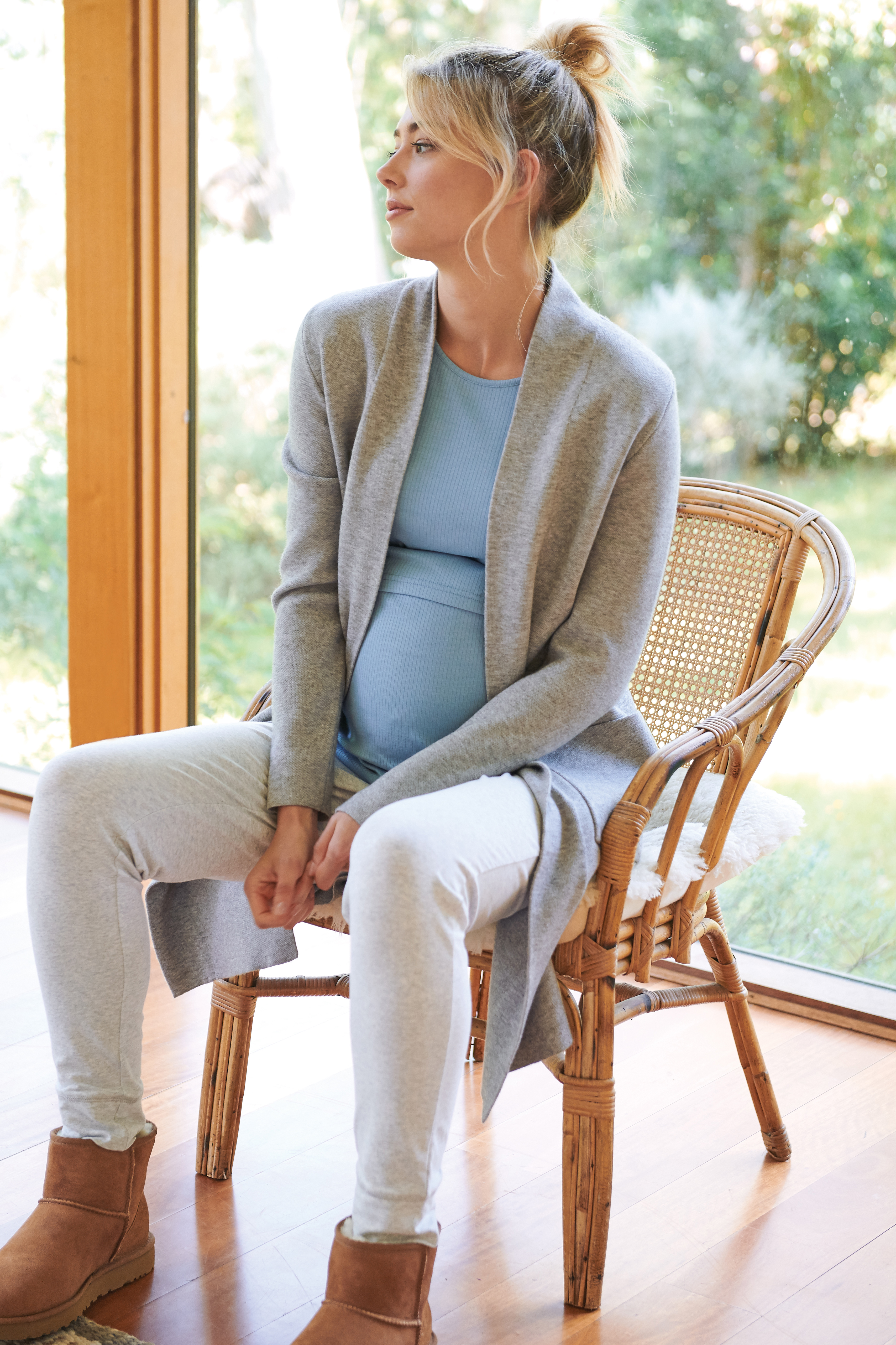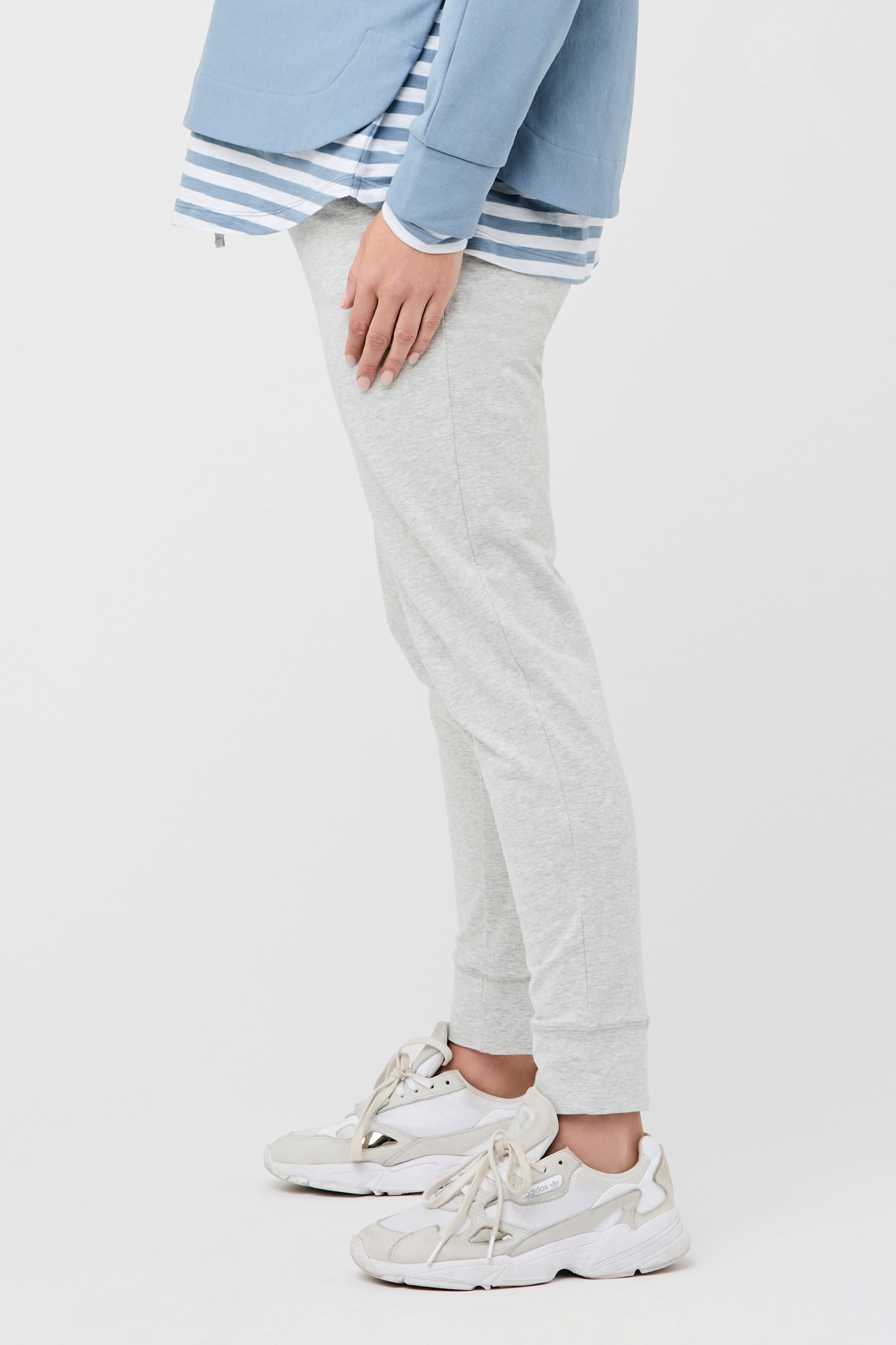 Organic Pyjama- und Loungehose für Schwangere mit engem Bein und elastischem Unterbauchbund mit Tunnelzug. Die bequeme Hose aus Stretch-Jersey hat einen hohen Bio-Baumwoll-Anteil und ist das perfekte Piece für gemütliche Stunden zuhause. Farbe: hellgrau