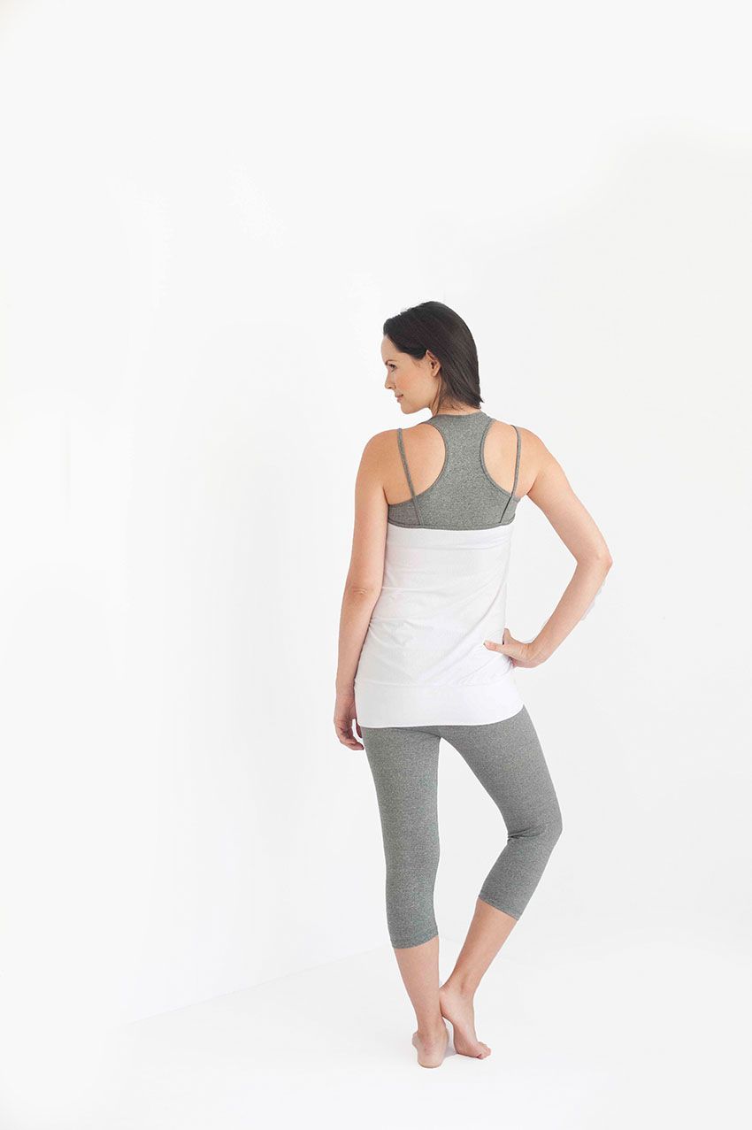 Das Sporttop im Lagen-Look ist besonders komfortabel geschnitten und verbirgt einen praktischen Stillzugang. Farbe: weiß/grau