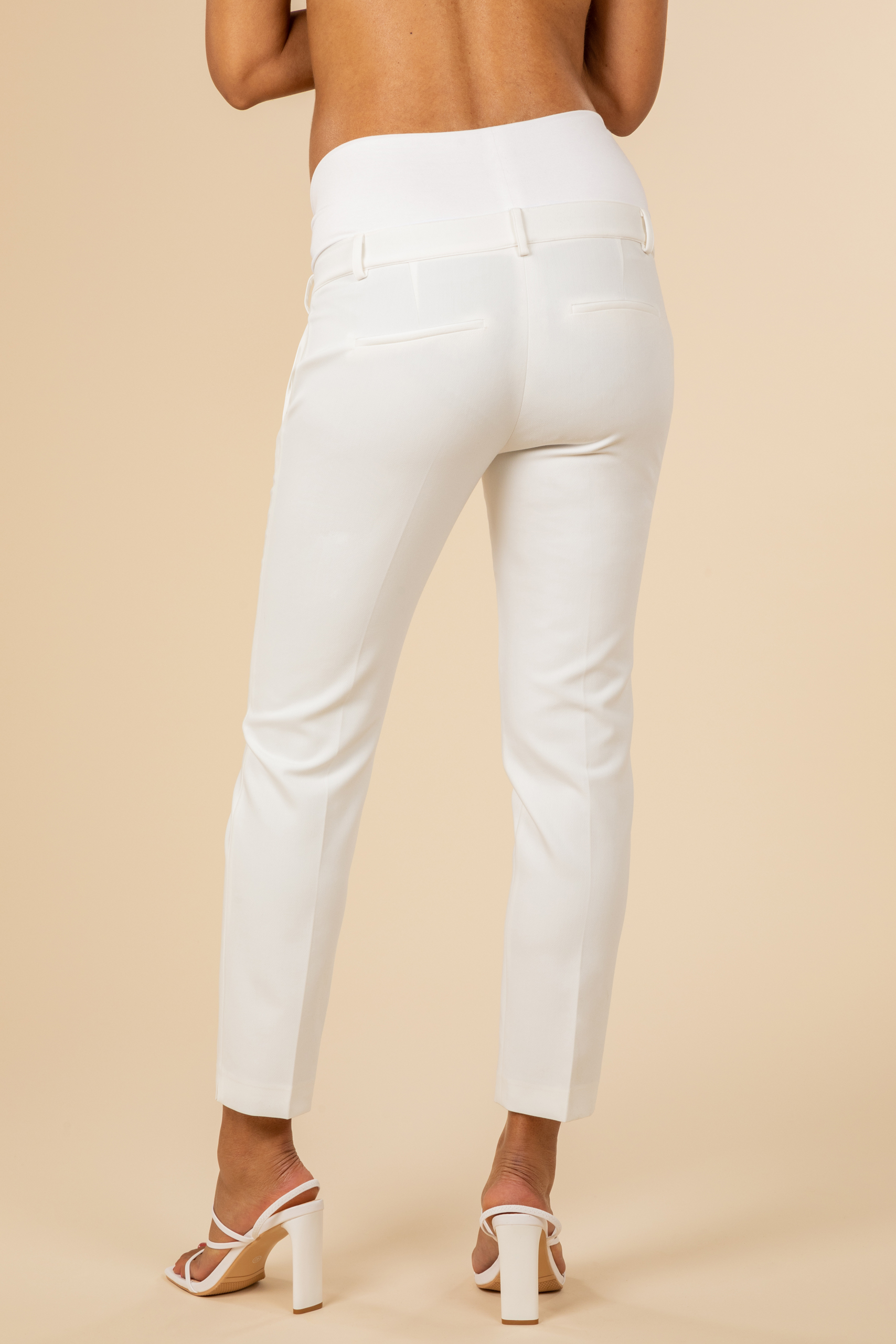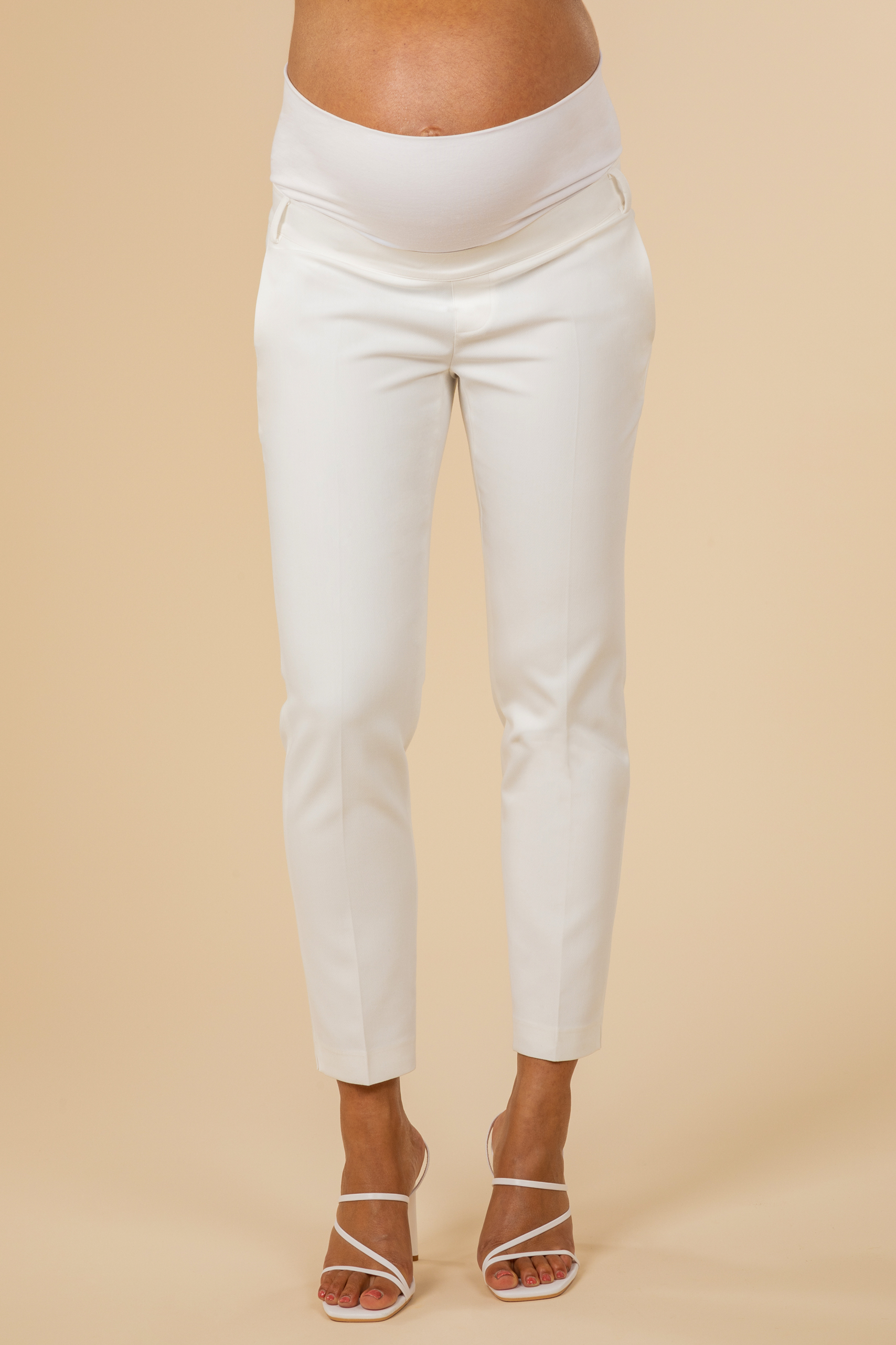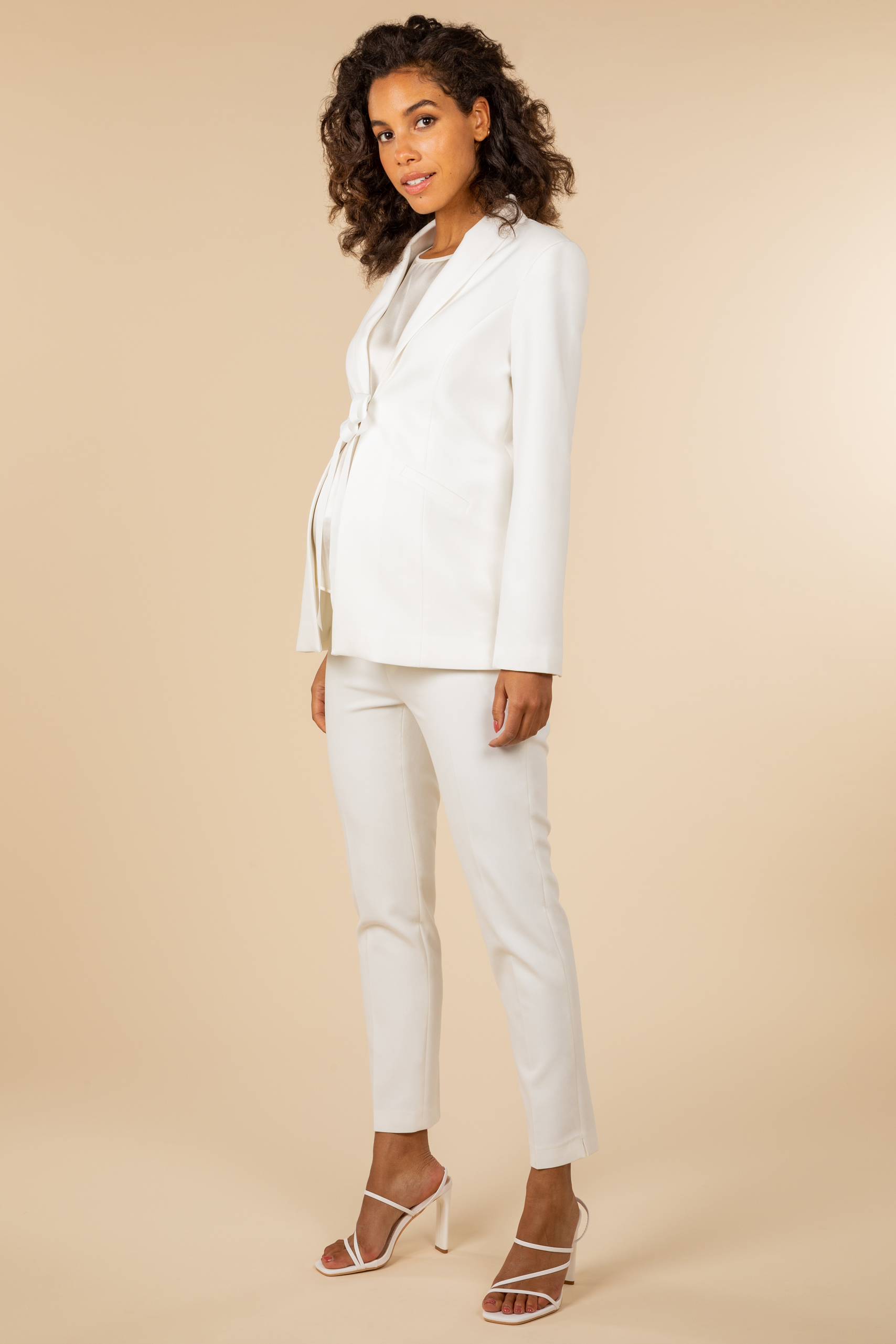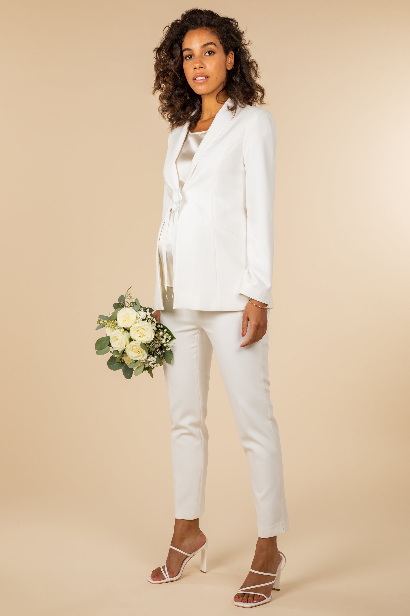 Umstandshose mit Bügelfalte für besondere Anlässe wie deine Hochzeit im Standesamt. Die schicke Umstandshose sitzt perfekt mit einem schlanken Bein, was durch die Bügelfalte betont wird und endet ganz modern auf Knöchelhöhe. Der weiche Überbauchbund schmiegt sich sanft an deinen Babybauch an und stützt ihn zugleich. Wenn dir einfach nicht nach einem Kleid ist, bei einem besonderen Anlass, haben wir mit dieser super schicken Umstandshose die ideale Lösung für dich in deiner Schwangerschaft gefunden. Farbe: elfenbein