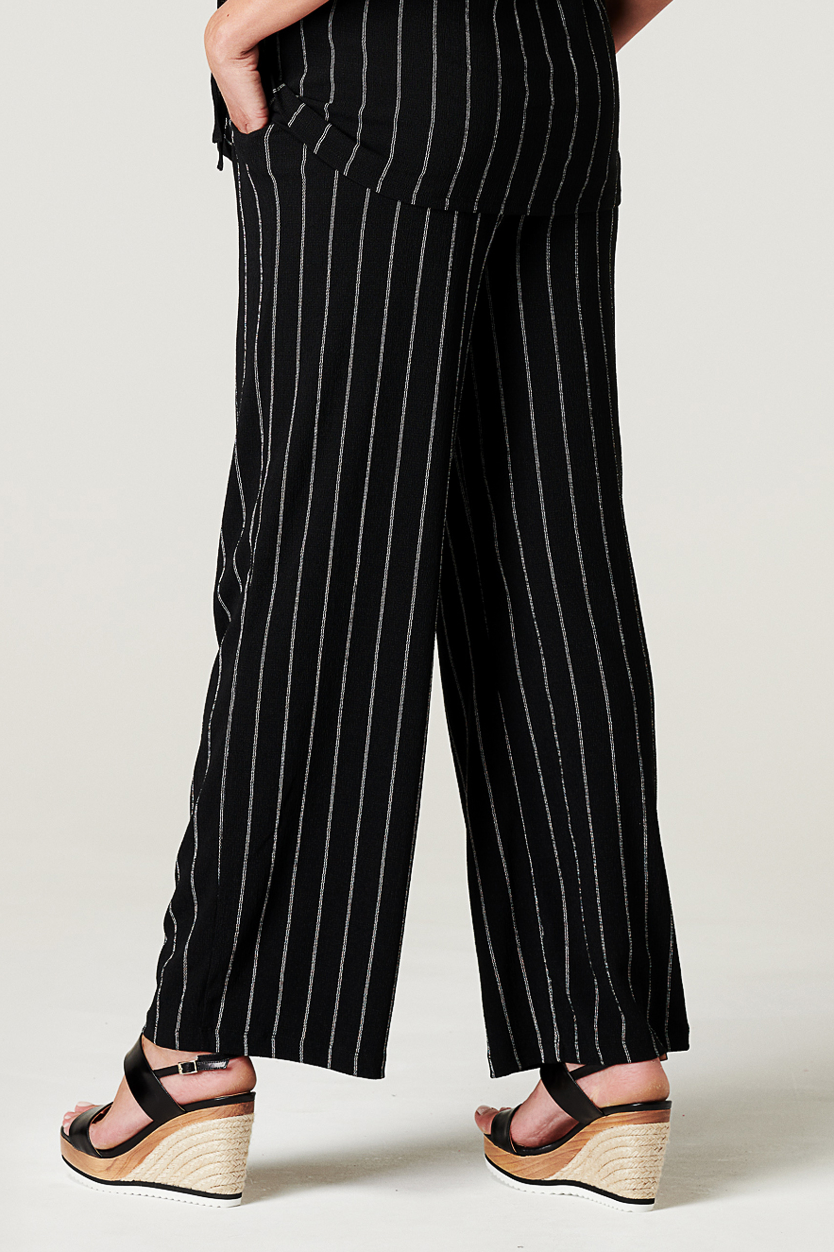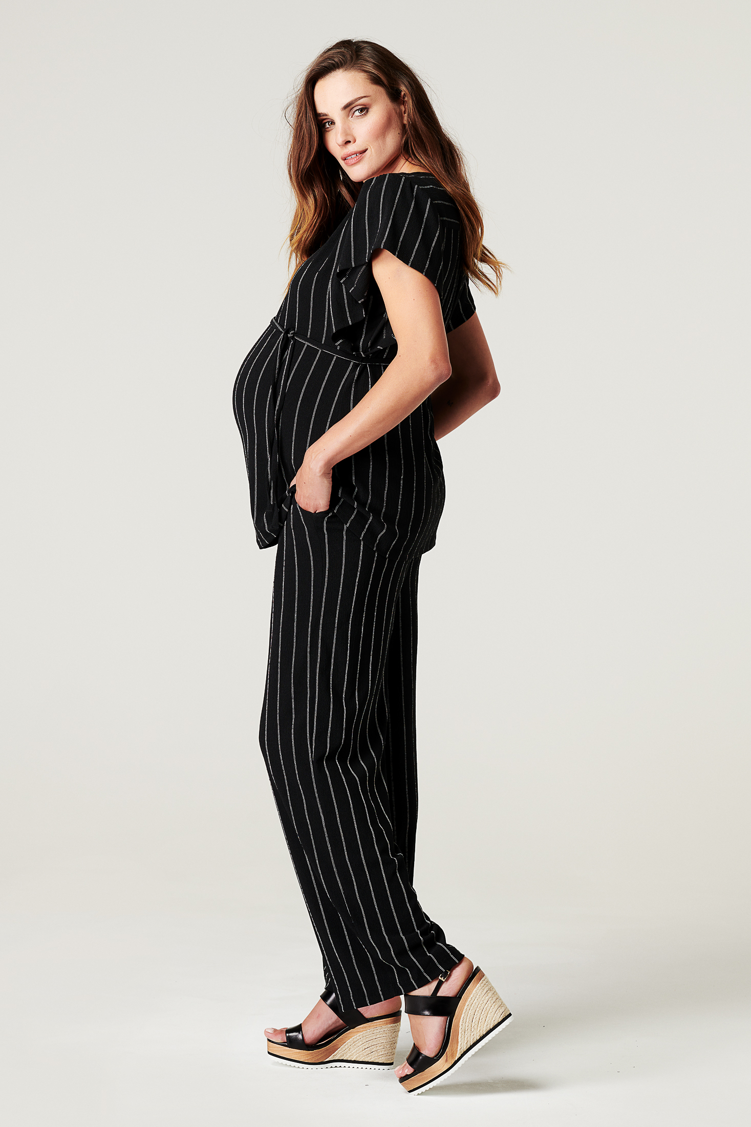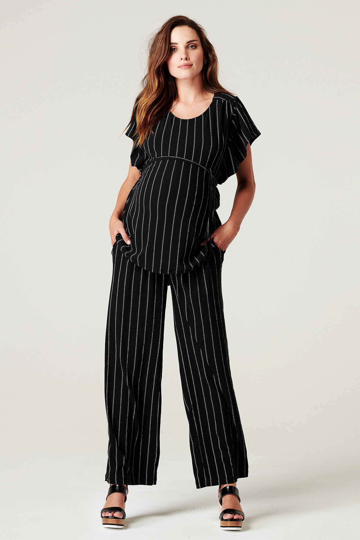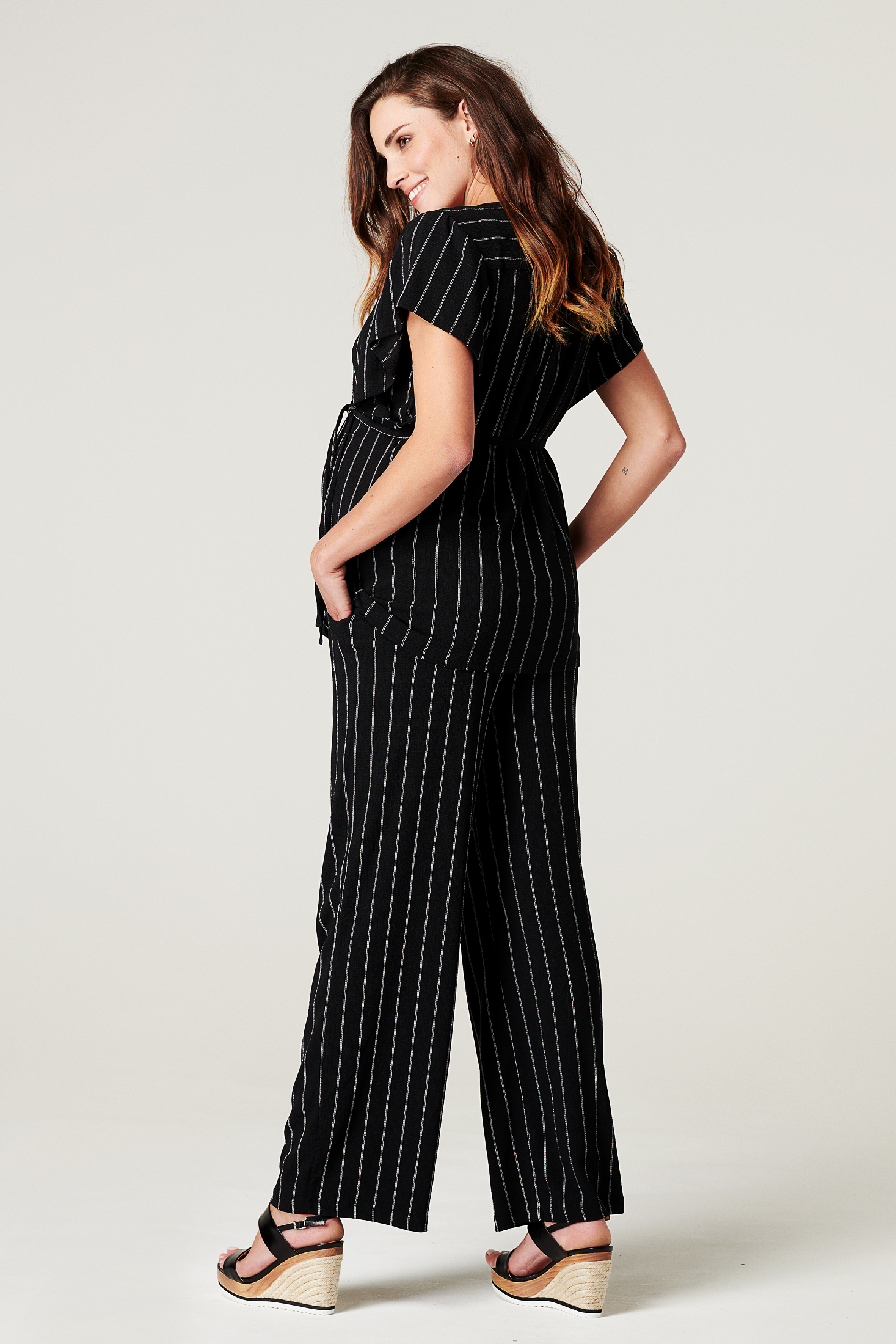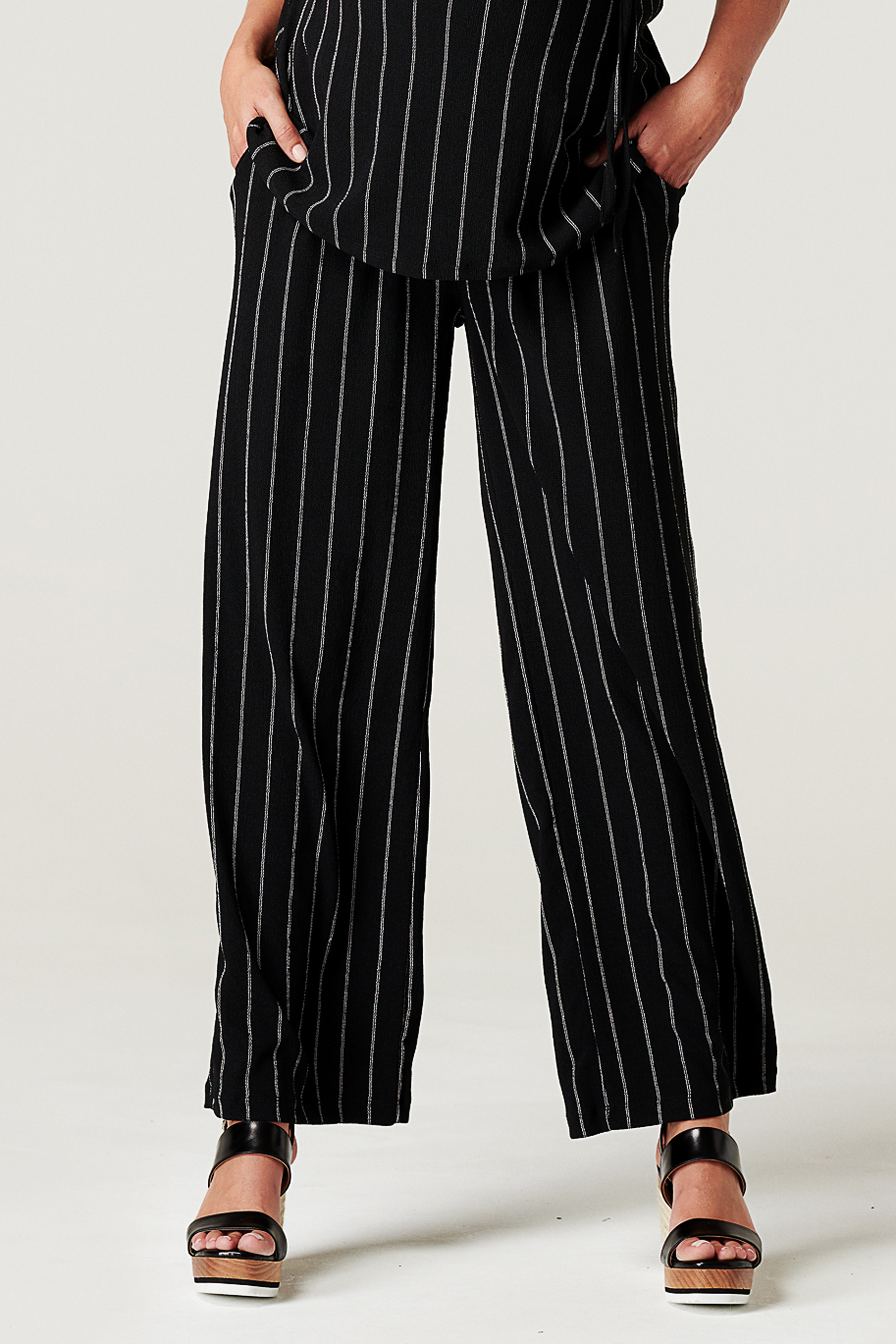 Gerade geschnittene Umstandshose mit Unterbauchbund, der mit einem Bindegürtel individuell angepasst werden kann. Dein Babybauch hat so in allen Schwangerschaftstrimestern genügend Spielraum. Auch nach der Geburt kannst du die Hose bequem weitertragen. Mit ihrem Streifendesign lässt sie sich prima zu eleganten Outfits kombinieren. Farbe: schwarz/weiß