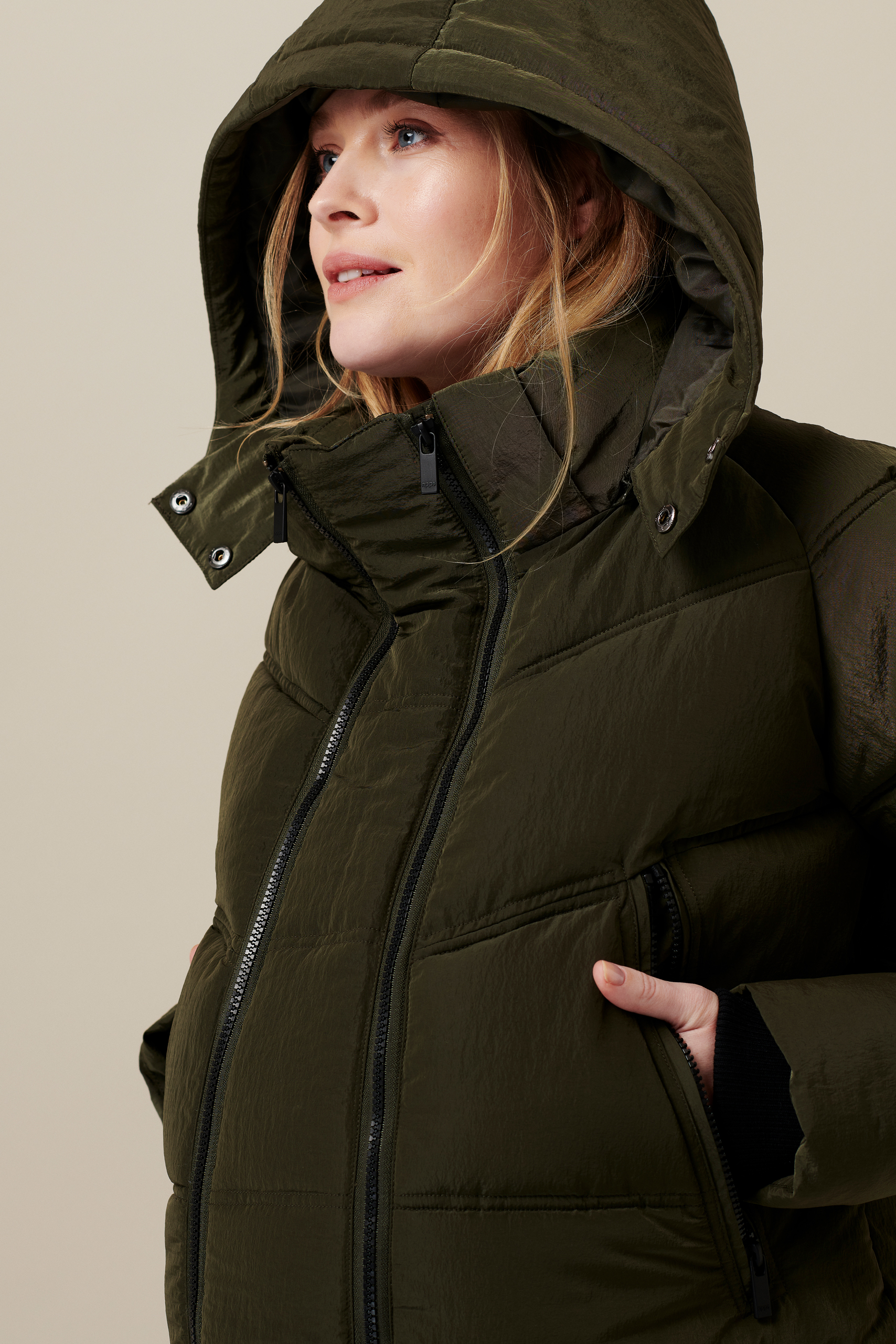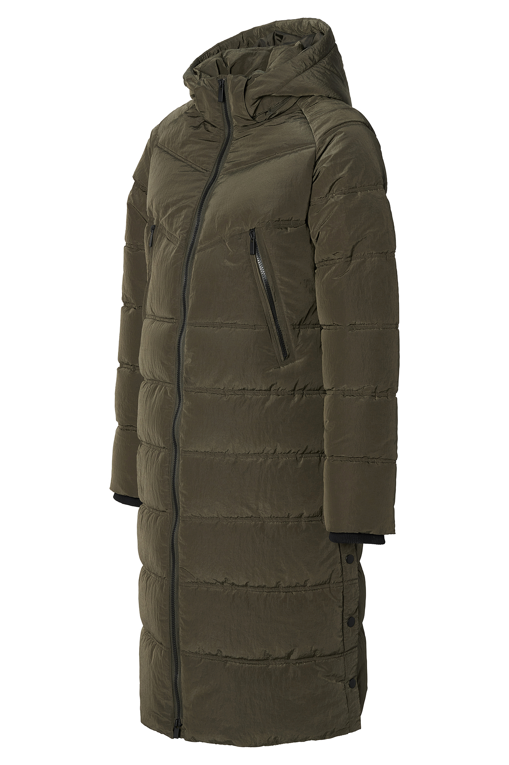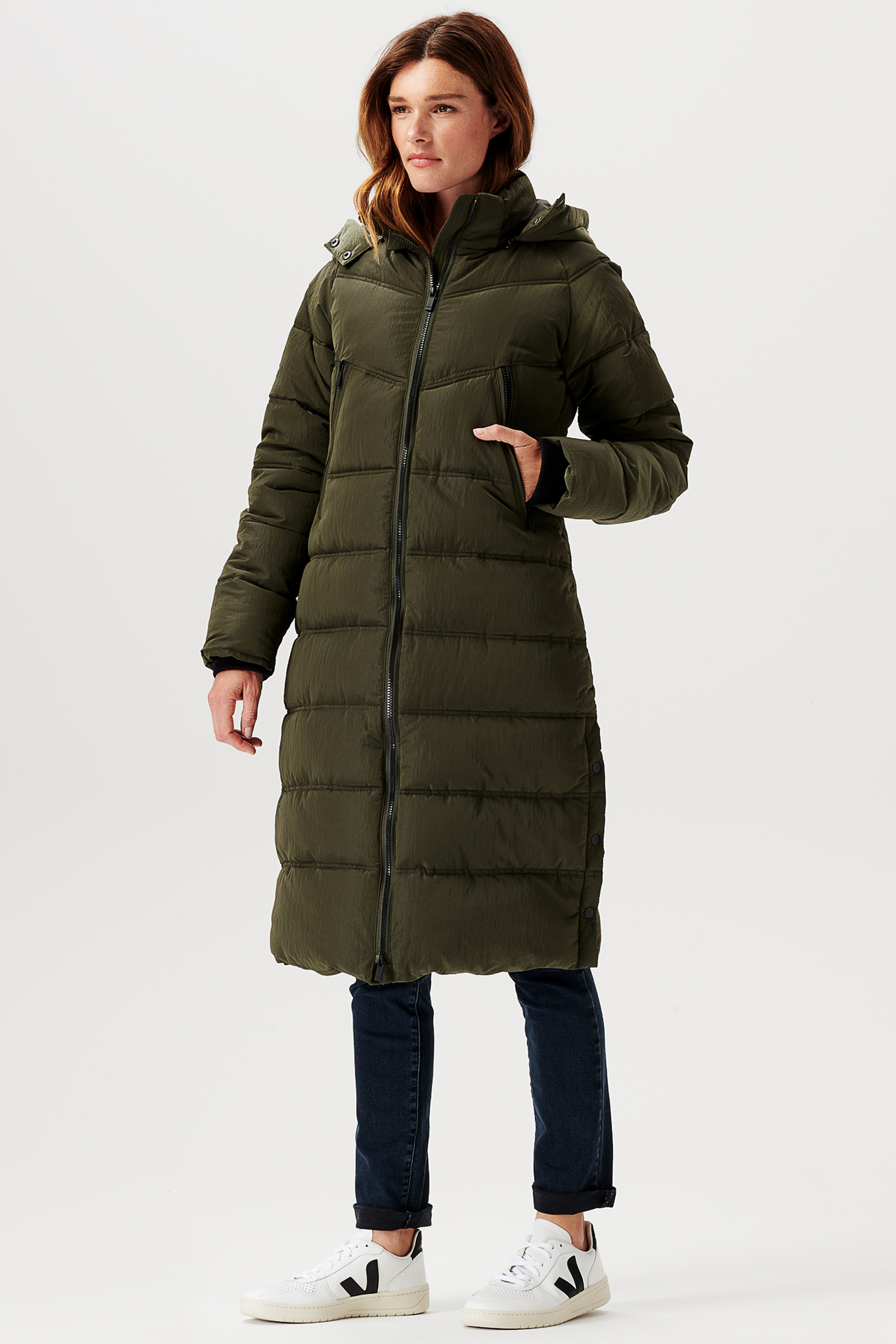 Wattierter Mantel mit Schwangerschaftseinsatz aus wasserabweisendem Material. Die Jacke hat eine tolle Länge über die Knie, eine abnehmbare gefütterte Kapuze und praktische Taschen mit Reißverschlüssen. Dank integriertem Reißverschlusssystem kannst du während der Schwangerschaft mit einem zusätzlichen ein- und auszippbaren Einsatz ganz unkompliziert mehr Spielraum für deinen wachsenden Babybauch schaffen. Die Jacke kann mit oder ohne Schwangerschaftseinsatz getragen werden und bleibt dadurch auch nach der Geburt ein toller Allrounder bei Wind und Wetter.