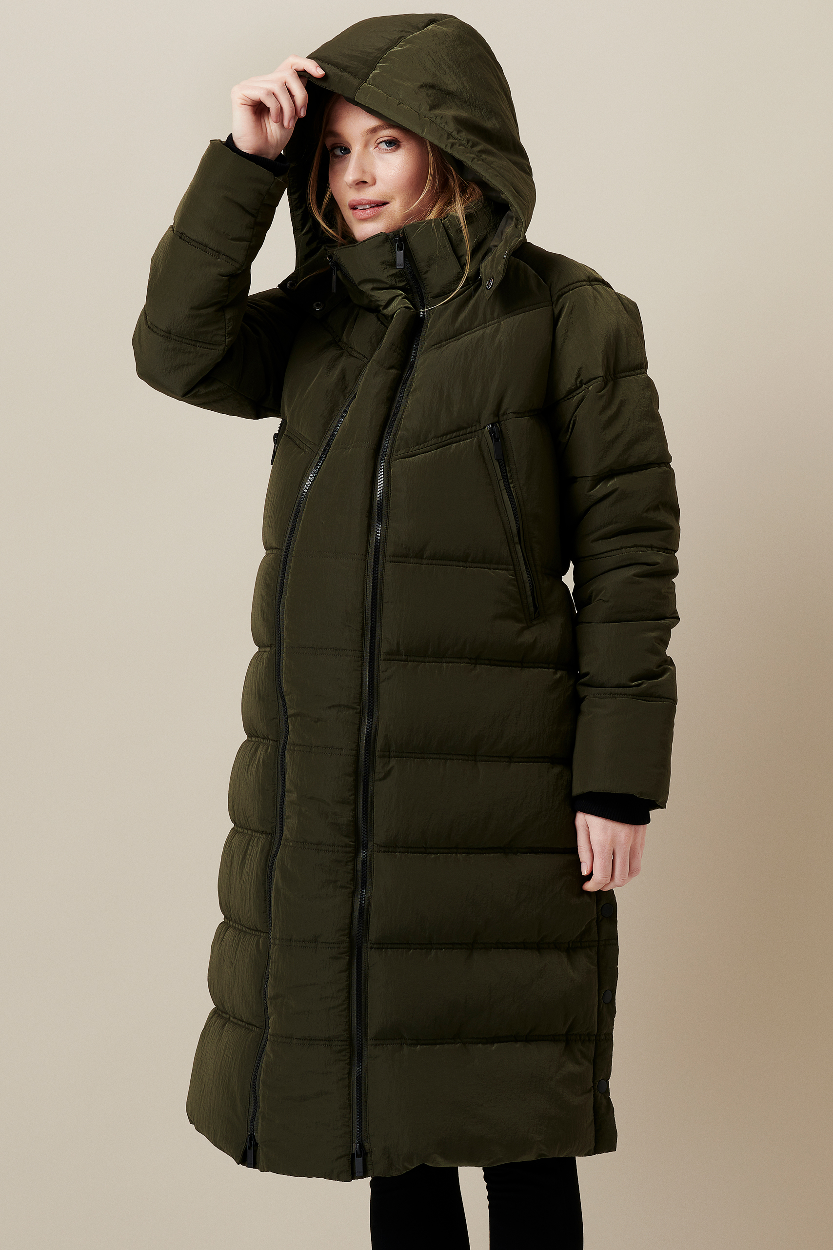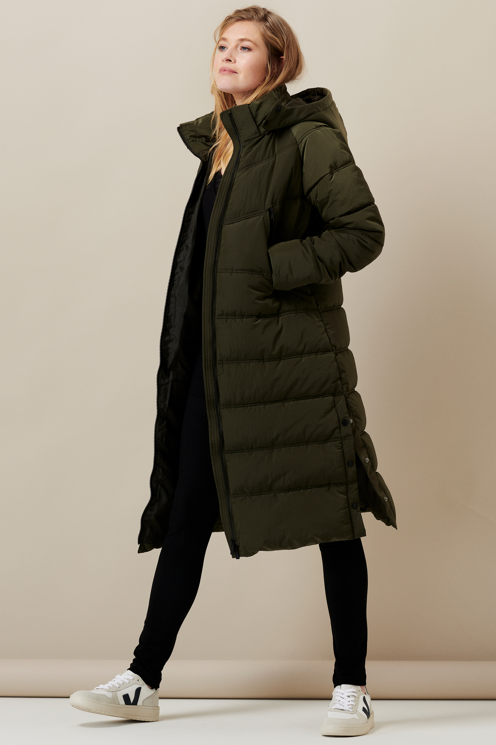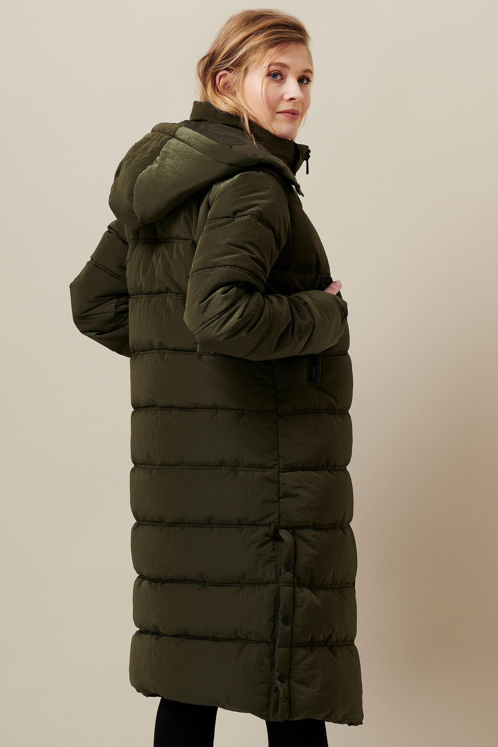 Wattierter Mantel mit Schwangerschaftseinsatz khaki