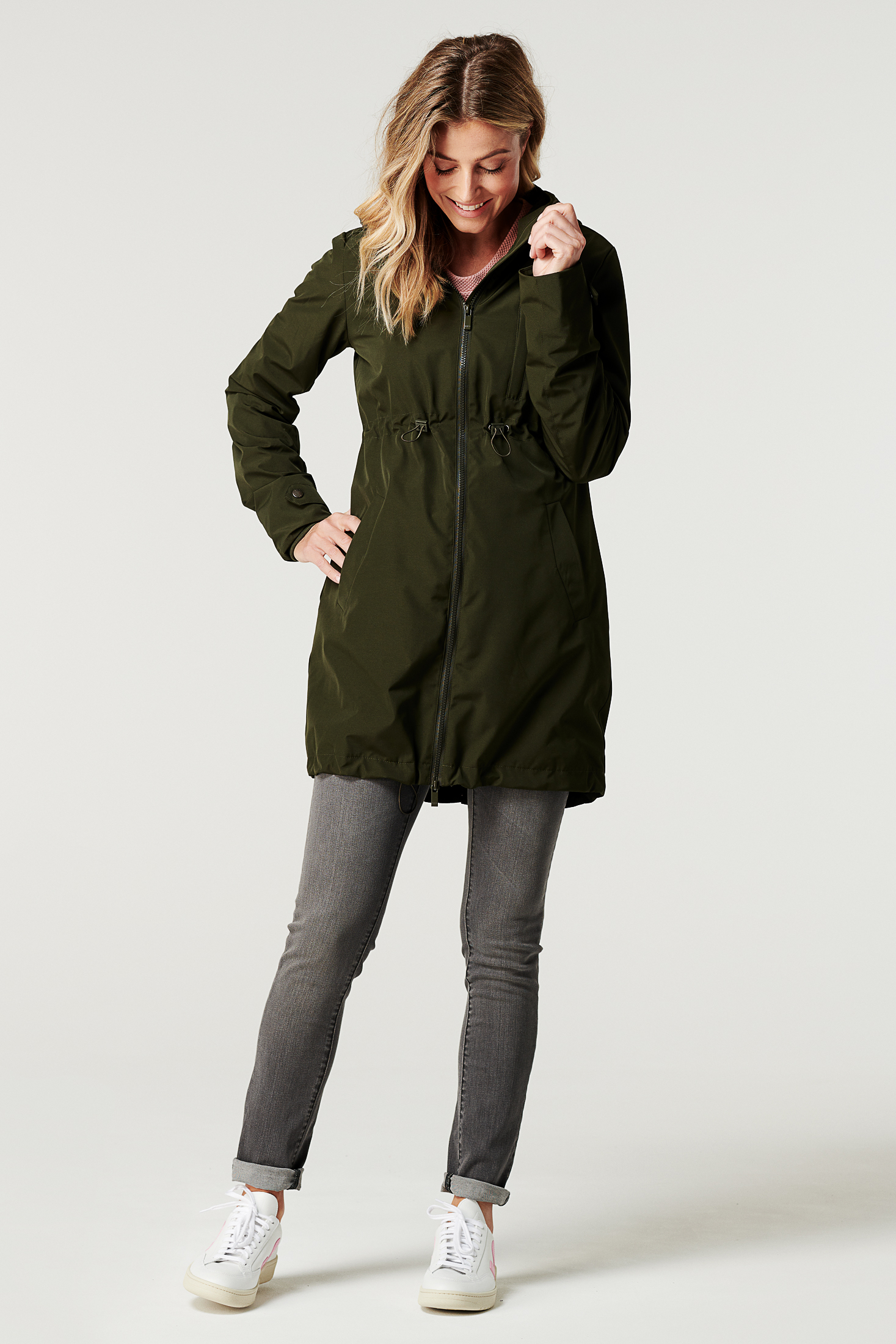 3 in 1 Umstandsparka mit Kapuze, perfekt geeignet für das Übergangswetter. Ein einzippbarer Einsatz sorgt dafür, dass dein Bauch bis zur Geburt Platz zum Wachsen hat. Später, wenn dein Baby auf der Welt ist, kannst du den Einsatz einfach drehen und schon hast du eine Tragejacke. Kordelzüge unter der Brust und am Jackensaum ermöglichen es dir, die Passform zu regulieren. Farbe: khaki