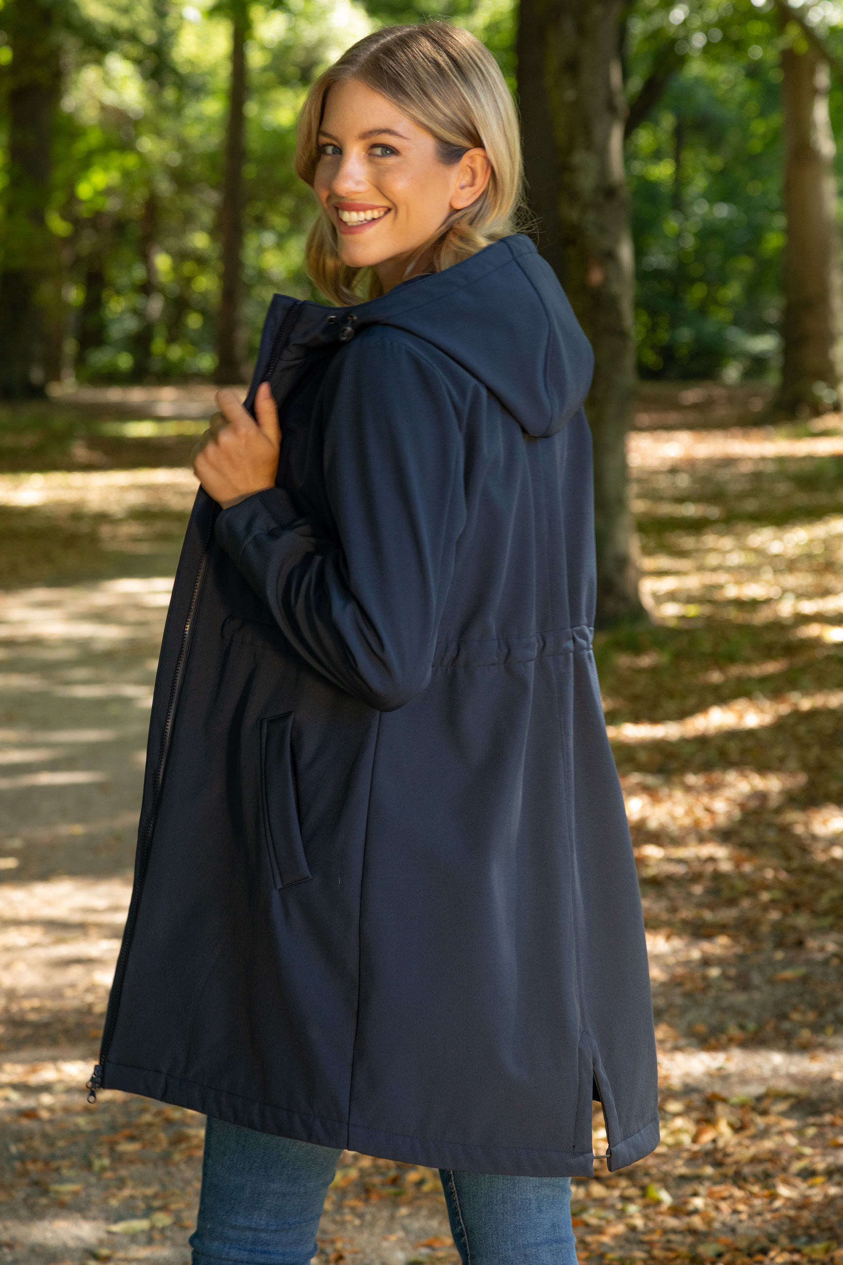 3 in 1 Umstands- und Tragejacke aus wasserabweisendem Material mit warmen Innenfutter, Kapuze und seitlichen Taschen. Über einen Tunnelzug kannst du die Jacke optimal an deine sich verändernde Figur anpassen. Sobald dein Babybauch mehr Platz benötigt, ermöglicht dir das praktische Reißverschlusssystem den beiliegenden Schwangerschaftseinsatz einzuzippen. Später ersetzt du den Schwangerschaftseinsatz ganz unkompliziert gegen den Babytrageeinsatz mit Kapuze, um dein Baby nah und kuschelig bei dir zu haben. Farbe: navy
