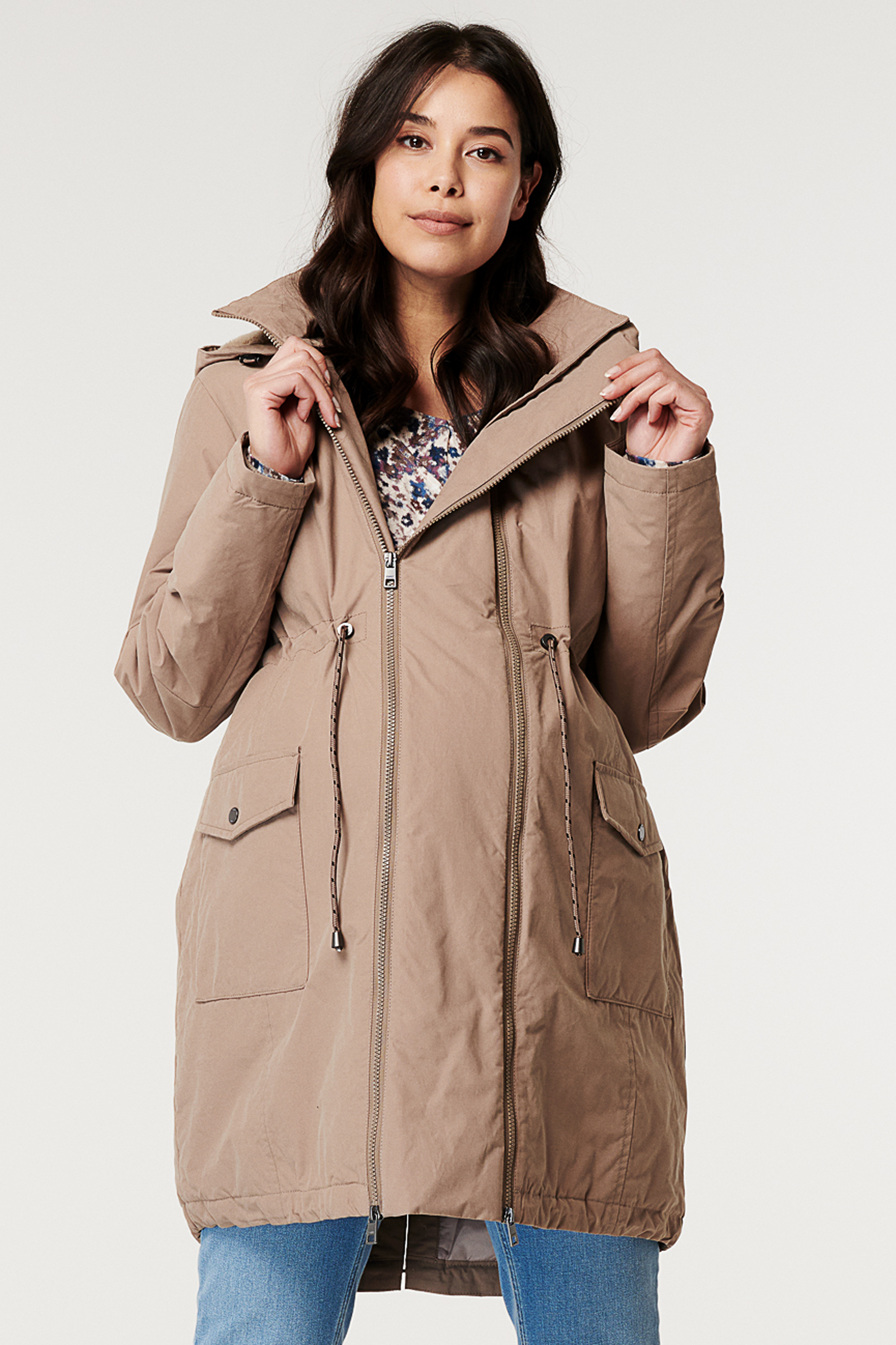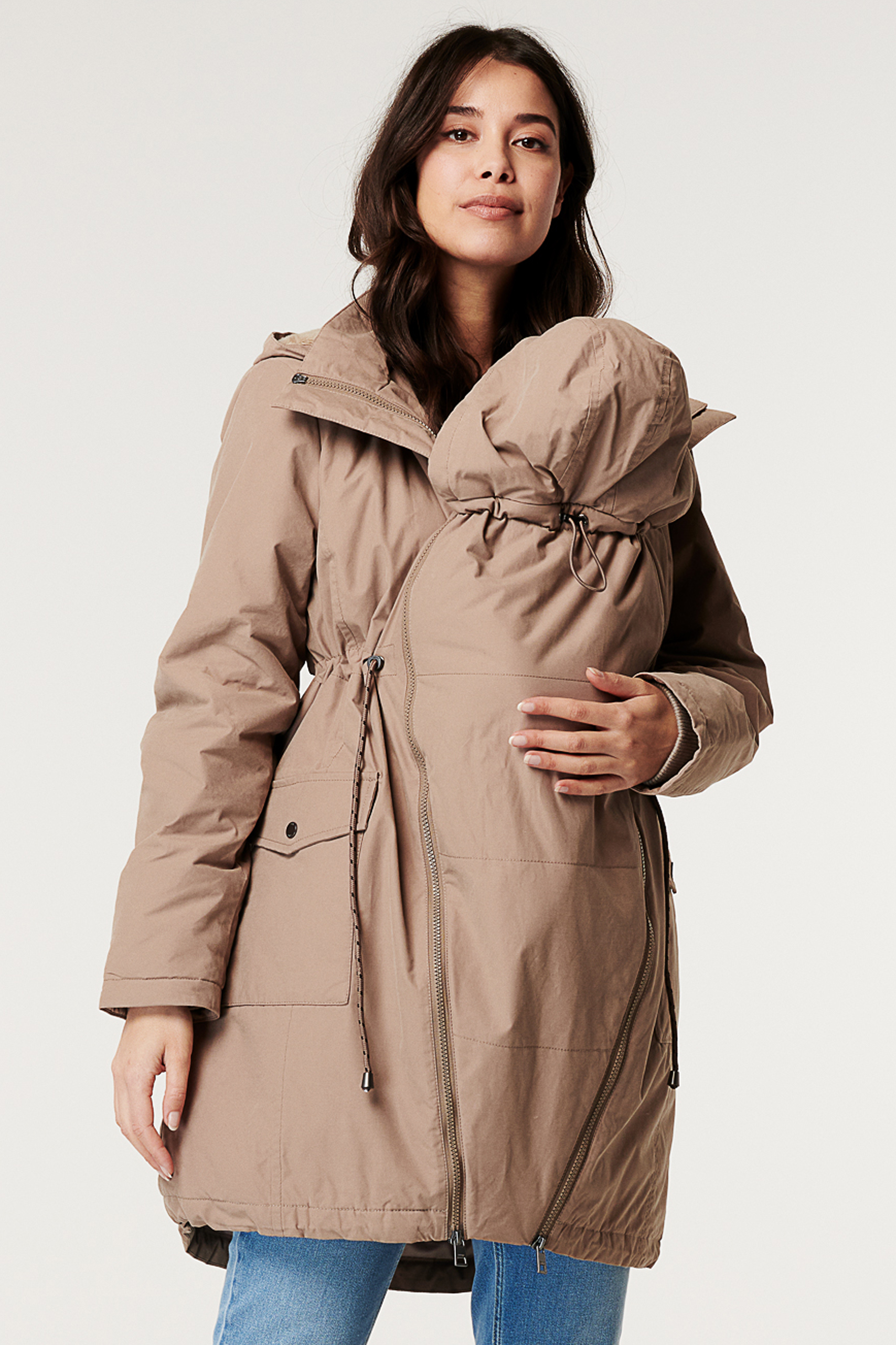 3 in 1 Umstandsjacke und Tragejacke für während der Schwangerschaft, nach der Geburt als Tragejacke und danach als normale Jacke ohne Babyeinsatz. Die Jacke, mit Kapuze und aufgesetzten Taschen, ist angenehm gefüttert und aus wasserabweisendem Material. Die Reißverschlüsse haben eine praktische 2-Wege-Funktion. Der Tunnelzug an der Taille ermöglicht es dir, die Jacke individuell an deine sich verändernde Figur während der gesamten Schwangerschaft anzupassen. Nach der Geburt kannst du den Babyeinsatz ganz einfach via Reißverschluss in die Jacke zippen und diese dann als Tragejacke nutzen. Farbe: khaki