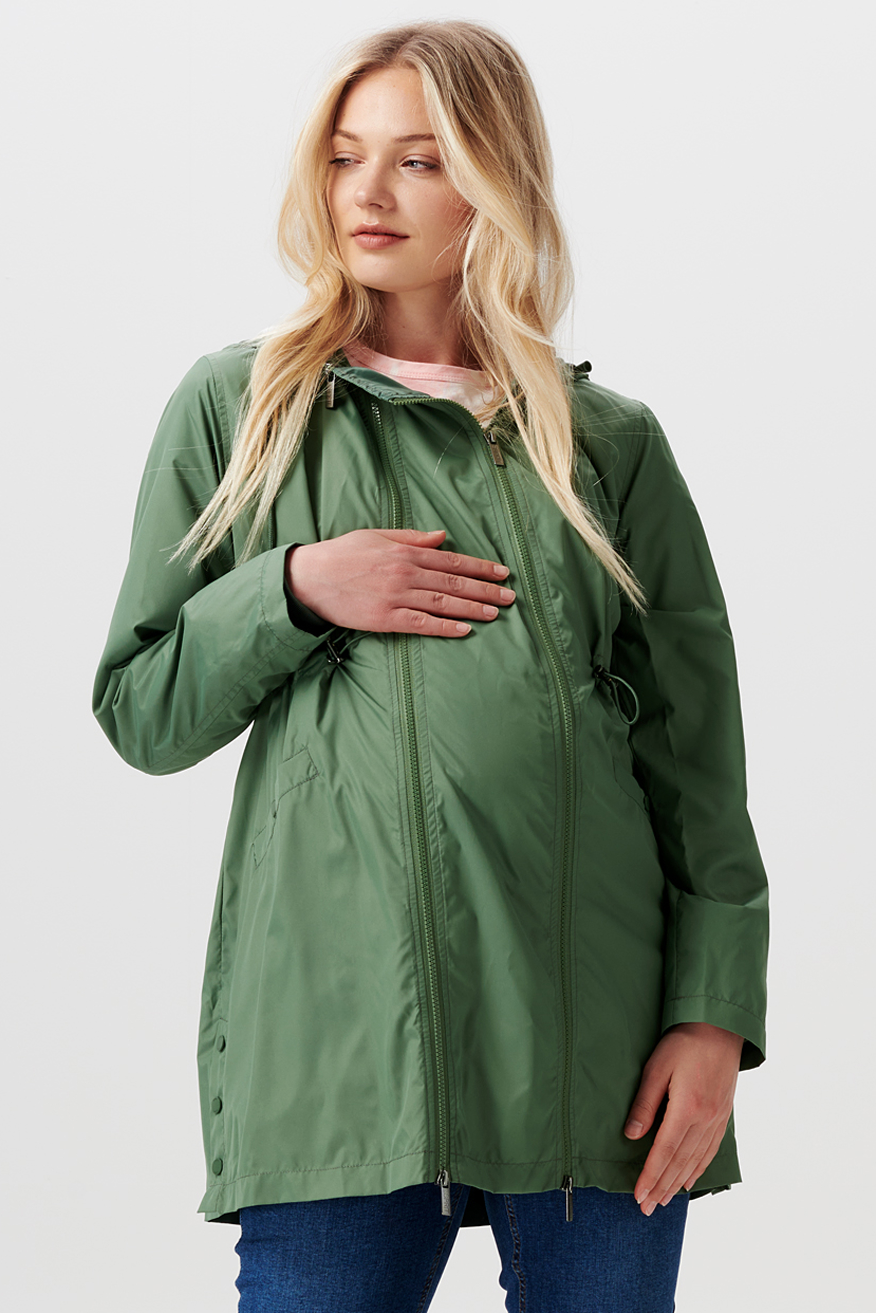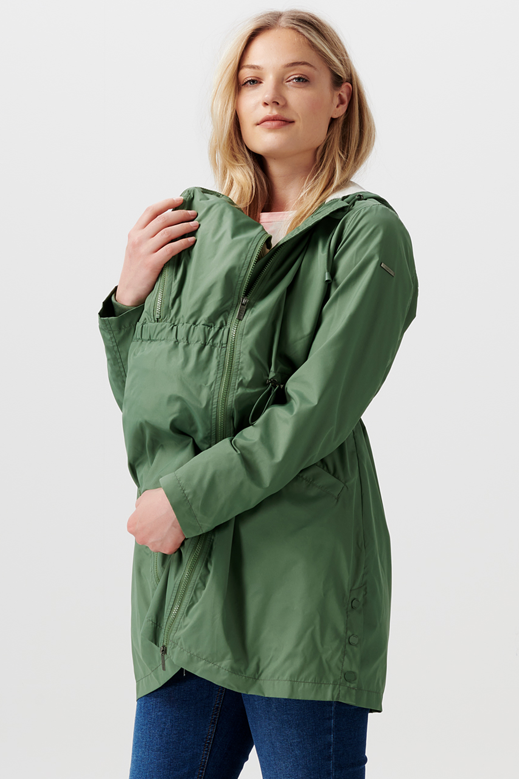 3 in 1 Umstandsjacke mit Schwangerschafts- und Babytrageeinsatz aus recyceltem Polyester. Die Jacke, mit Kapuze und aufgesetzten Taschen ist angenehm gefüttert und aus wasserabweisendem Material. Die Reißverschlüsse haben eine praktische 2-Wege-Funktion. Der Tunnelzug an der Taille ermöglicht es dir, die Jacke individuell an deine sich verändernde Figur während der gesamten Schwangerschaft anzupassen. Nach der Geburt kannst du den Babyeinsatz ganz einfach via Reißverschluss in die Jacke zippen und diese dann als Tragejacke nutzen.Ebenso kannst du die Jacke ohne einen der beiden Einsätze tragen, was sie zu einem langfristigen und nachhaltigen Begleiter in deiner Gaderobe macht. Farbe: khaki
