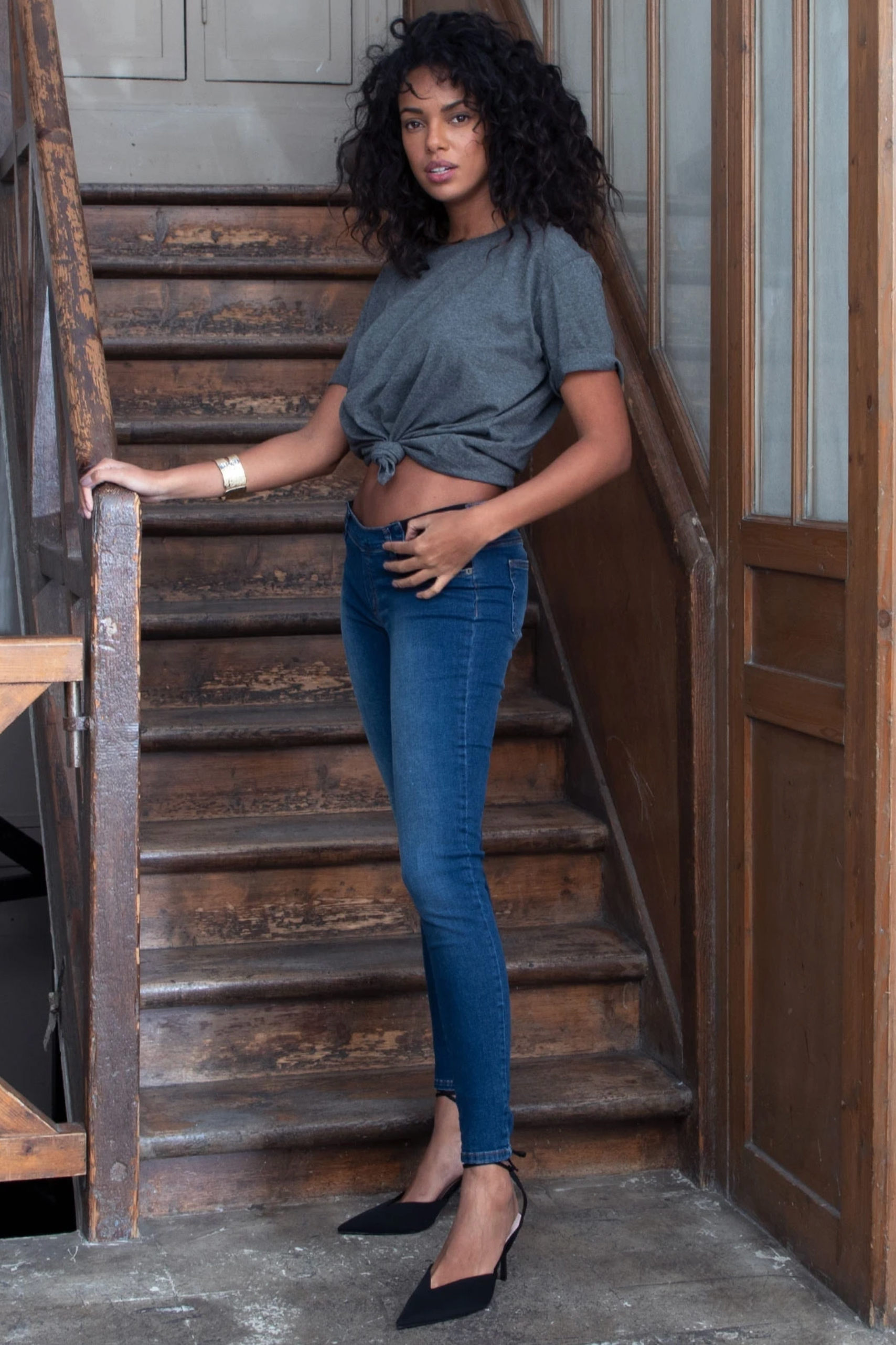 Slim Fit Unterbauch Umstandsjeans mit Stretch Einsätzen medium wash
