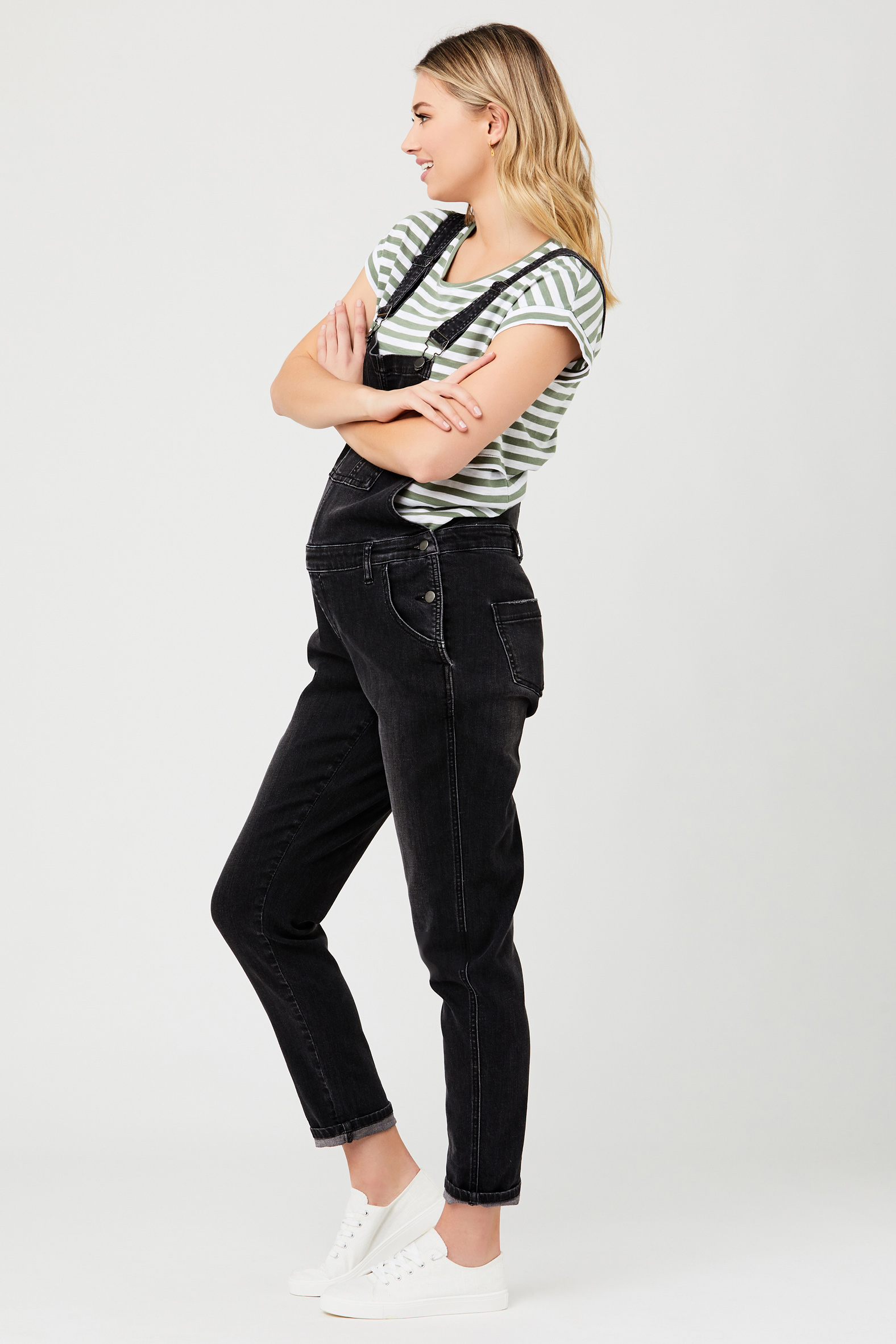 Umstandslatzhose in lässigem Tapered Fit aus stretchigem Material, der deinem Babybauch ausreichend Platz zum Wachsen lässt. Aufgesetzte Taschen, Metallösen und verstellbare Träger machen die Latzhose zusätzlich zu einem coolen It Piece in deiner Schwangerschaftsgarderobe! Innenbeinlänge: 67cm. Farbe: schwarz