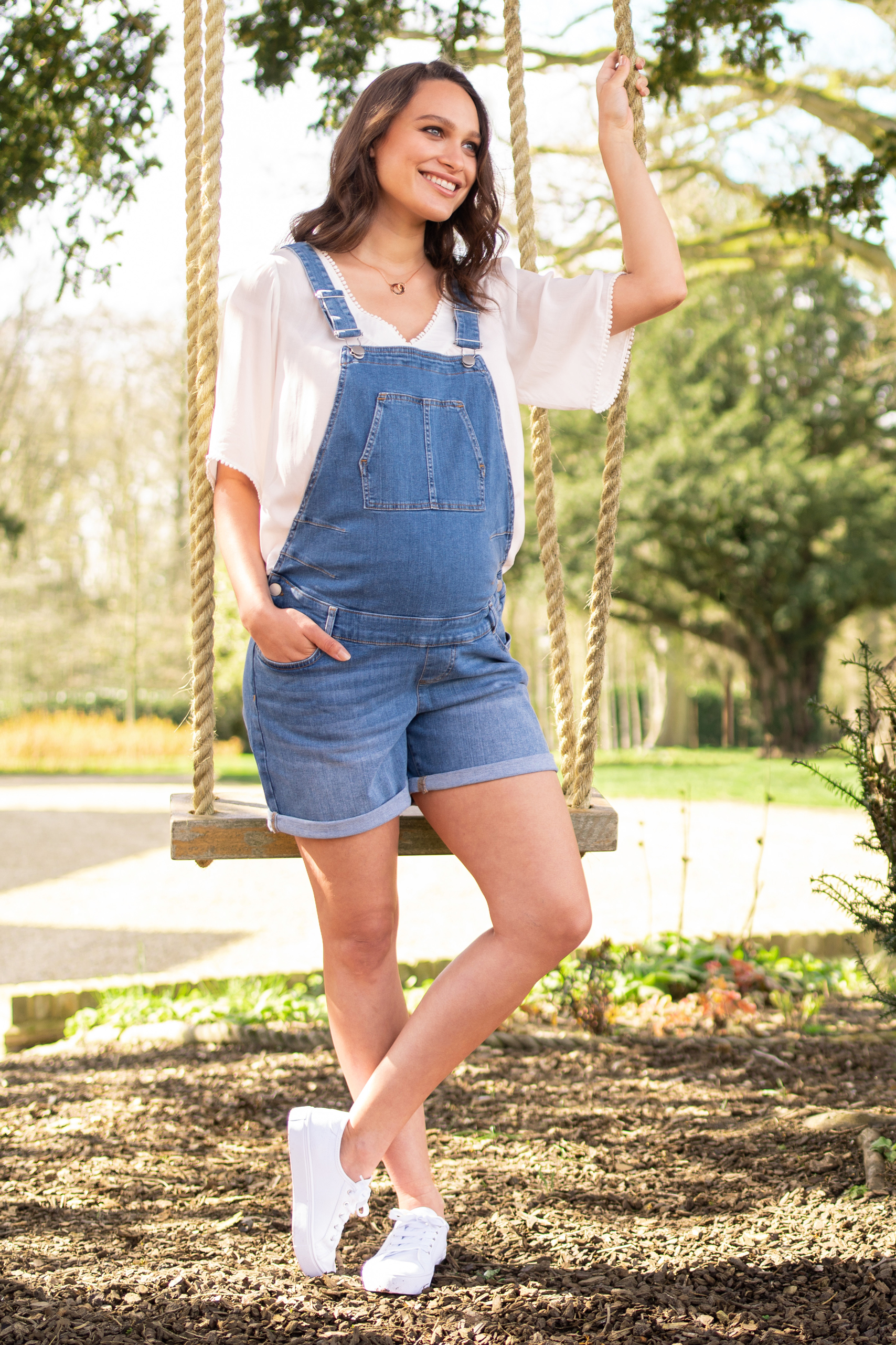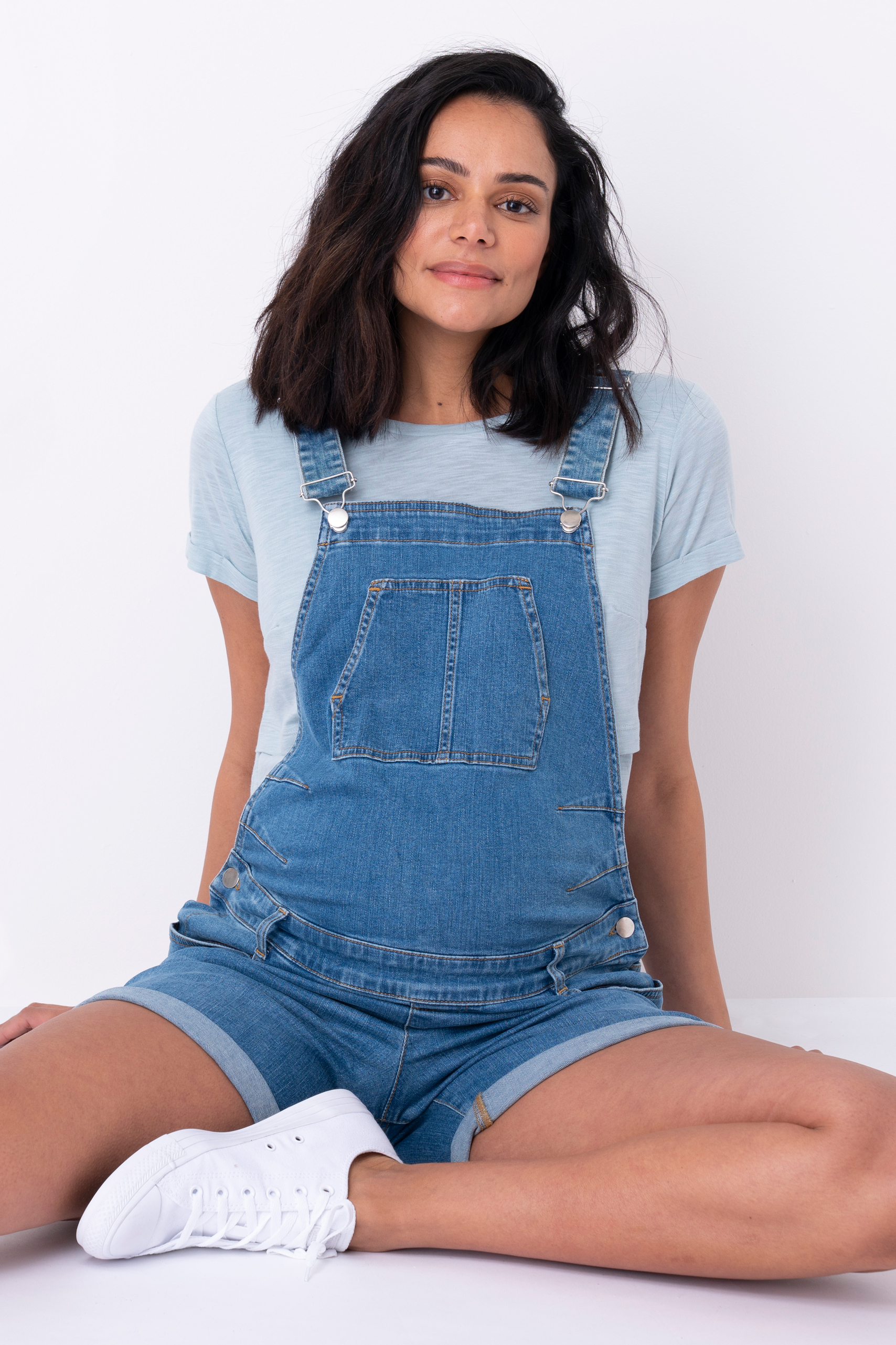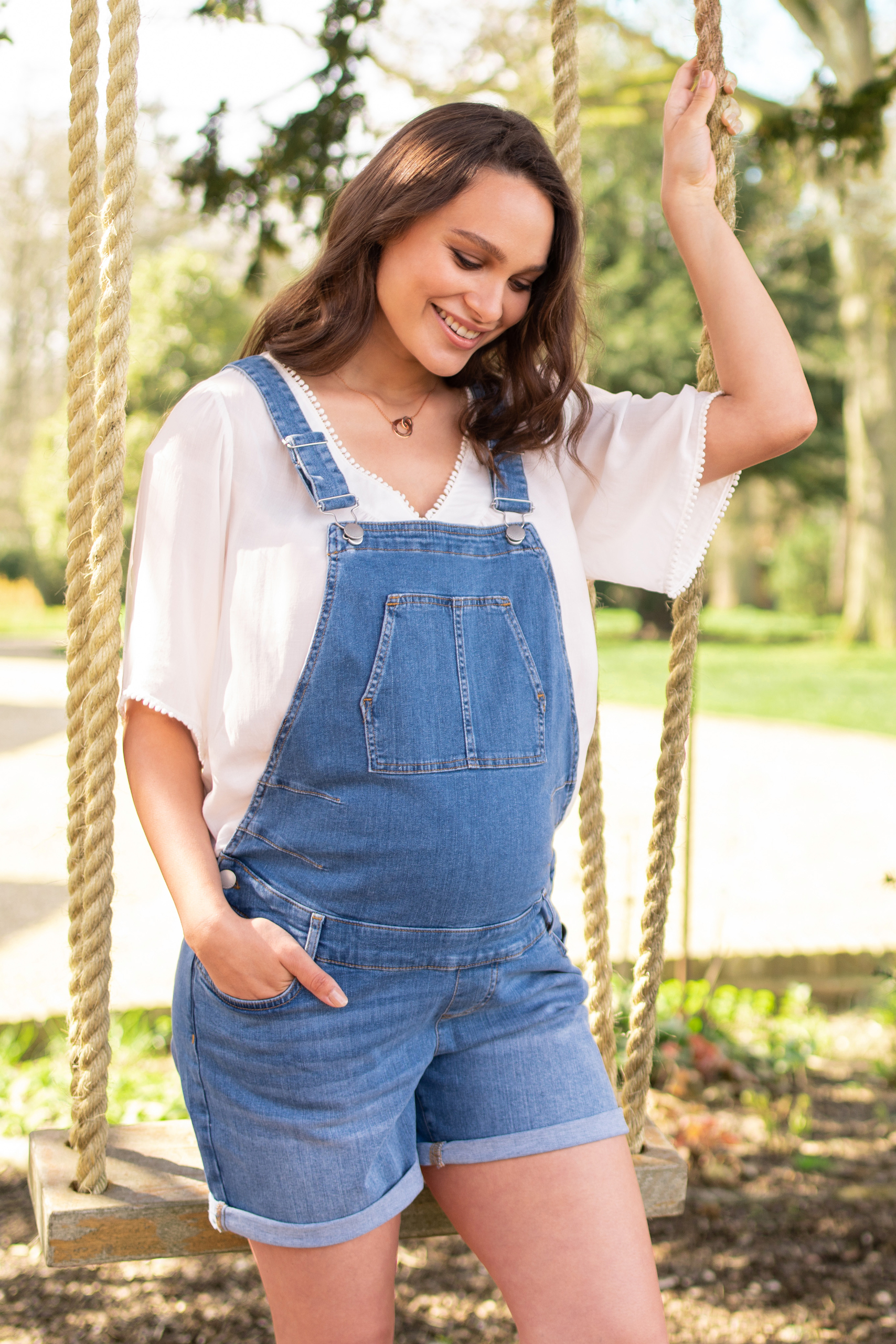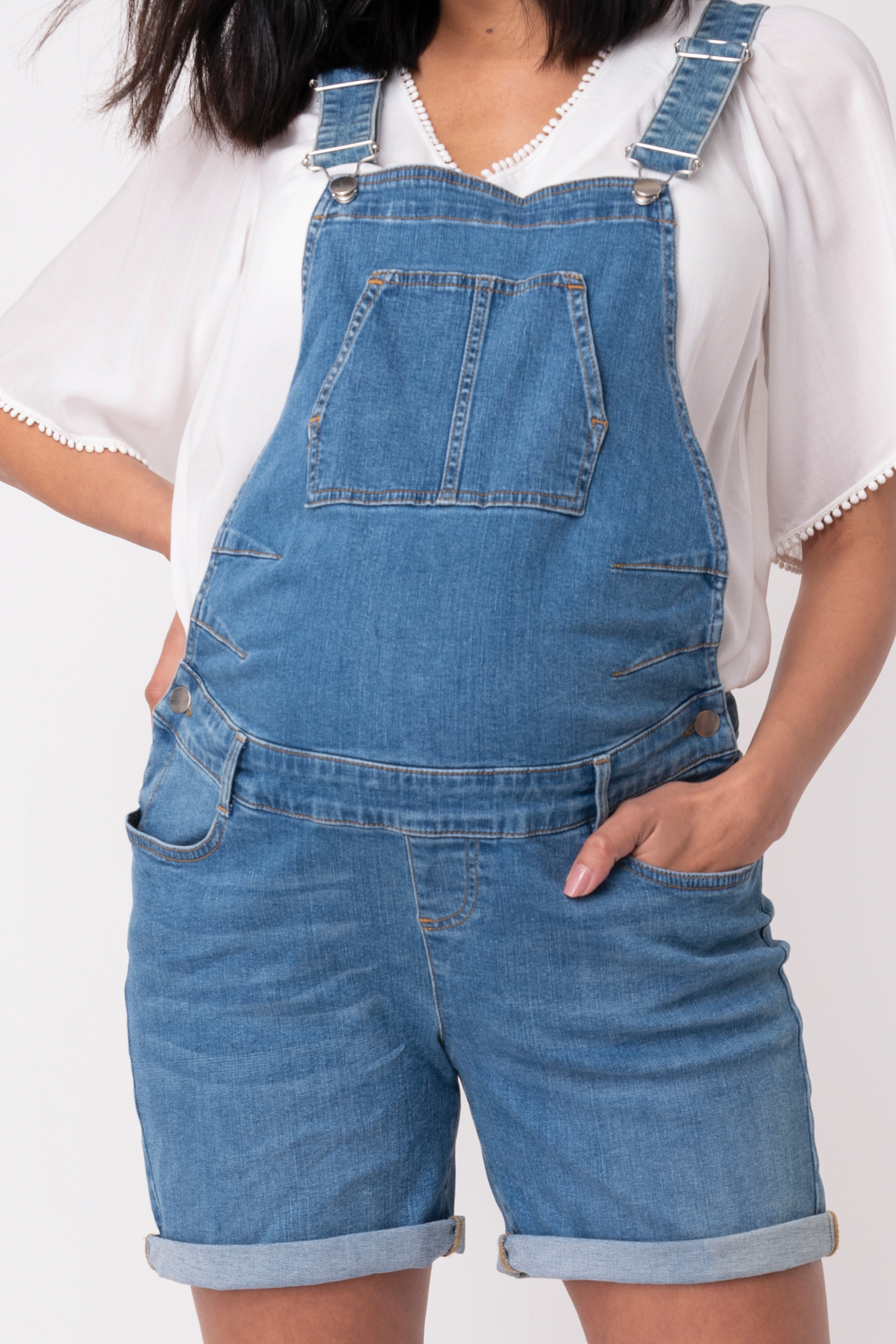Kurze Umstandslatzhose aus softem Stretch-Denim mit verstellbaren Einsätzen, sodass sie deinem Babybauch bis zur Geburt genügend Platz zum Wachsen lässt. Metallverschlüsse an den Trägern, Metallknöpfe und eine Brusttasche machen den lässigen Latzhosen-Look perfekt. Super easy und leger zu stylen mit Sneakers und Shirts, ist sie unser Must Have in diesem Sommer während und nach der Schwangerschaft. Farbe: denim