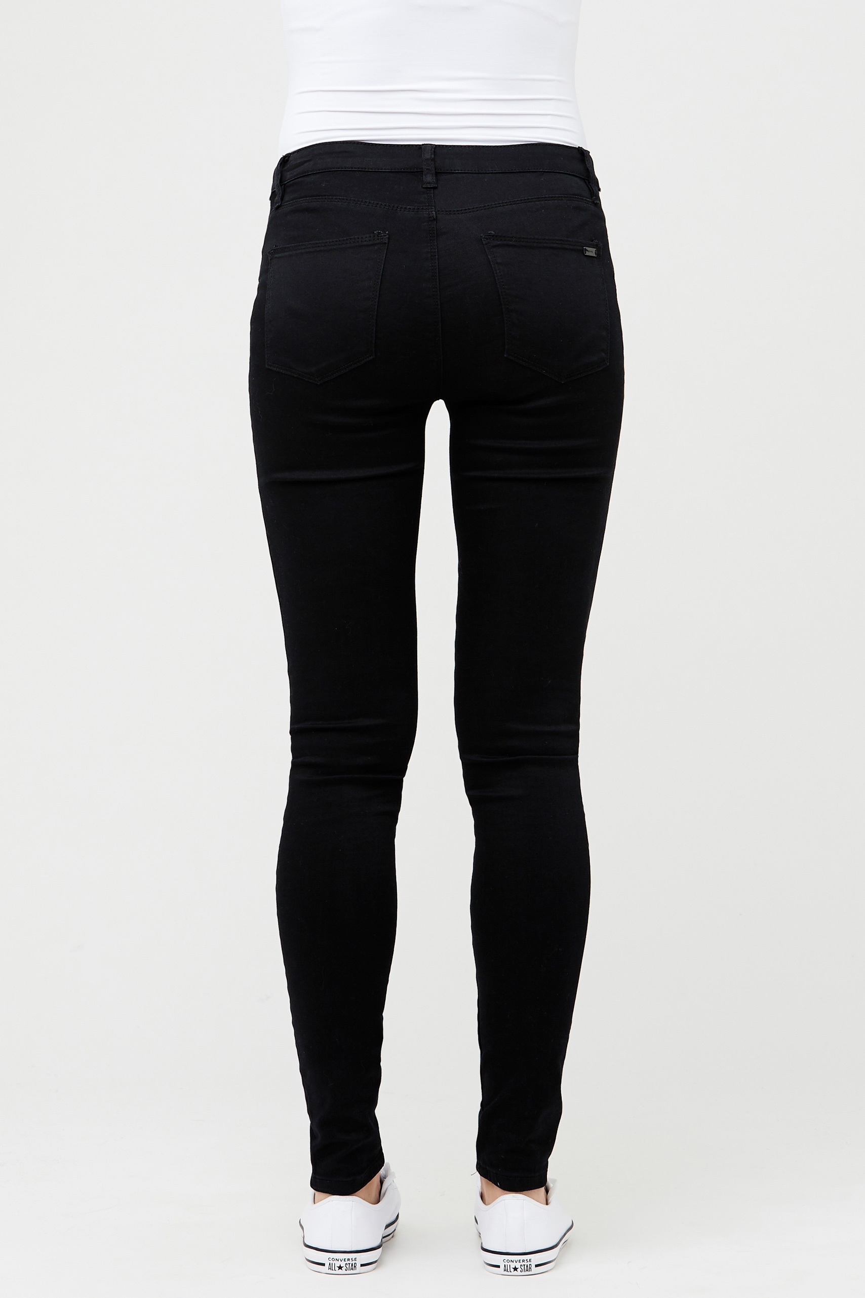 Skinny Umstandsjeggings, die Dank stretchigem Material sitzt wie eine zweite Haut. Elastische Einsätze am Unterbauchbund stellen sicher, dass er deinem Babybauch in der gesamten Schwangerschaft ausreichend Spielraum gibt, ohne ihn einzuengen. Die Jeggings kannst du vielseitig kombinieren für deine Everyday Outfits, fürs Büro oder für festliche Anlässe. Farbe: schwarz