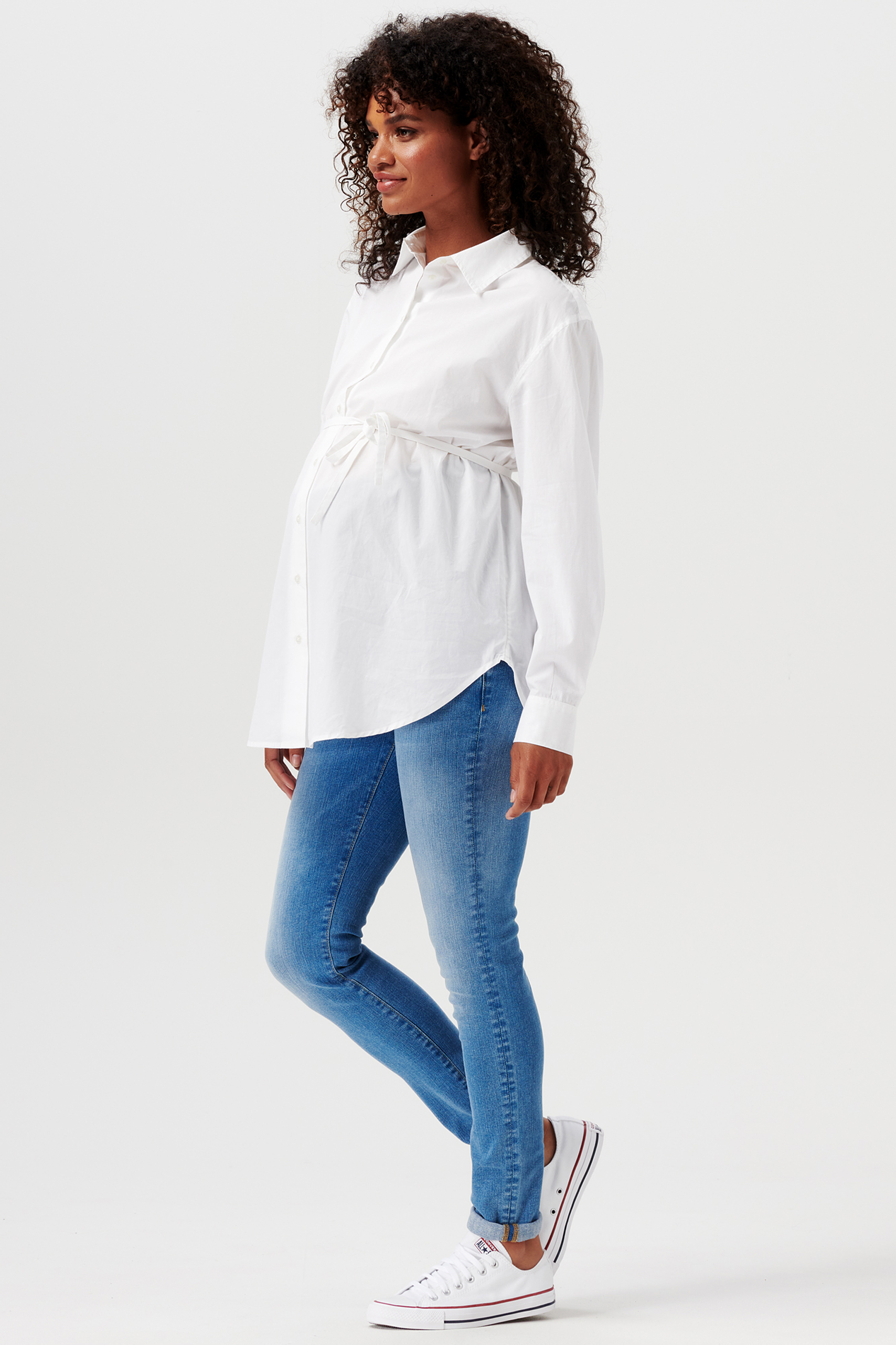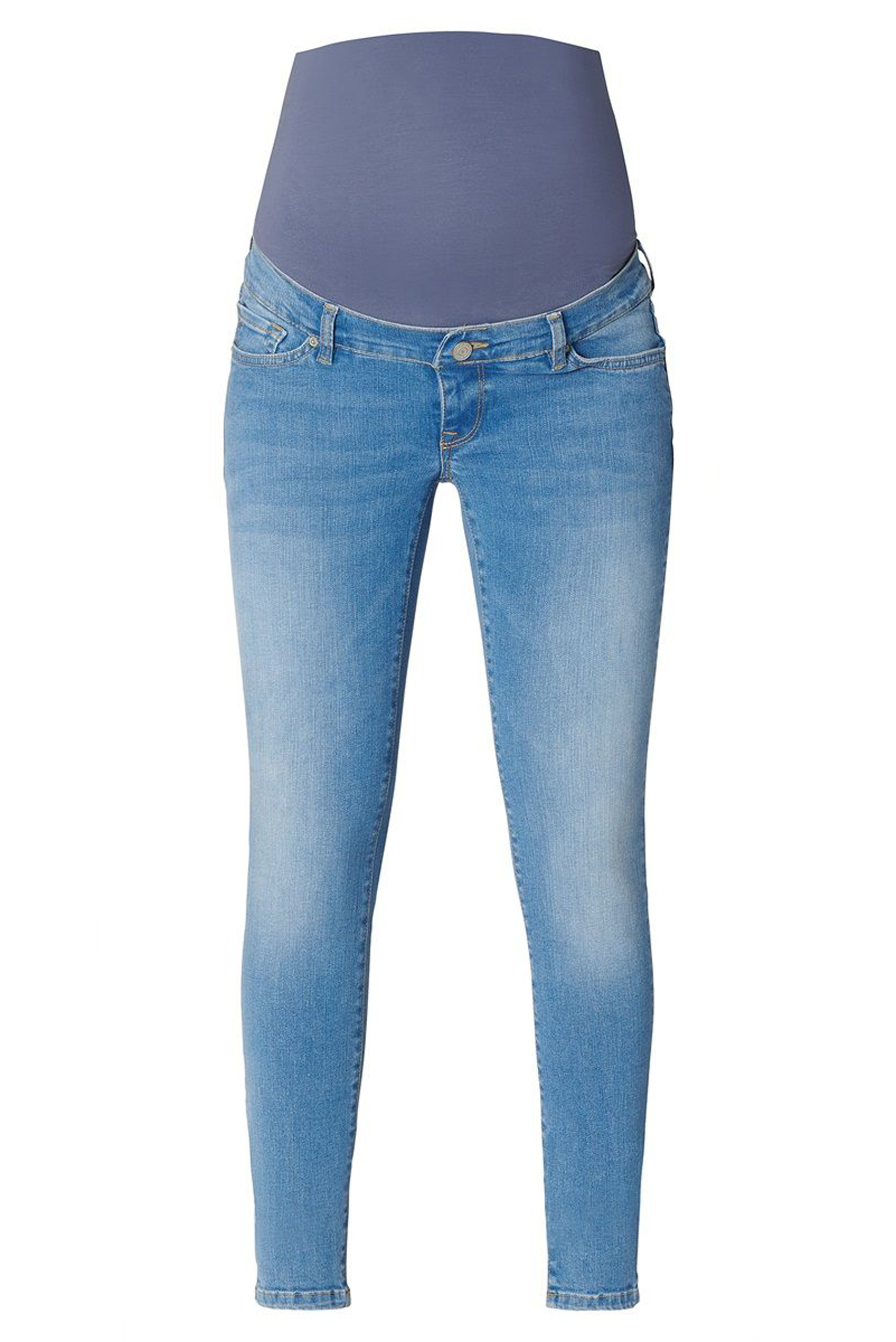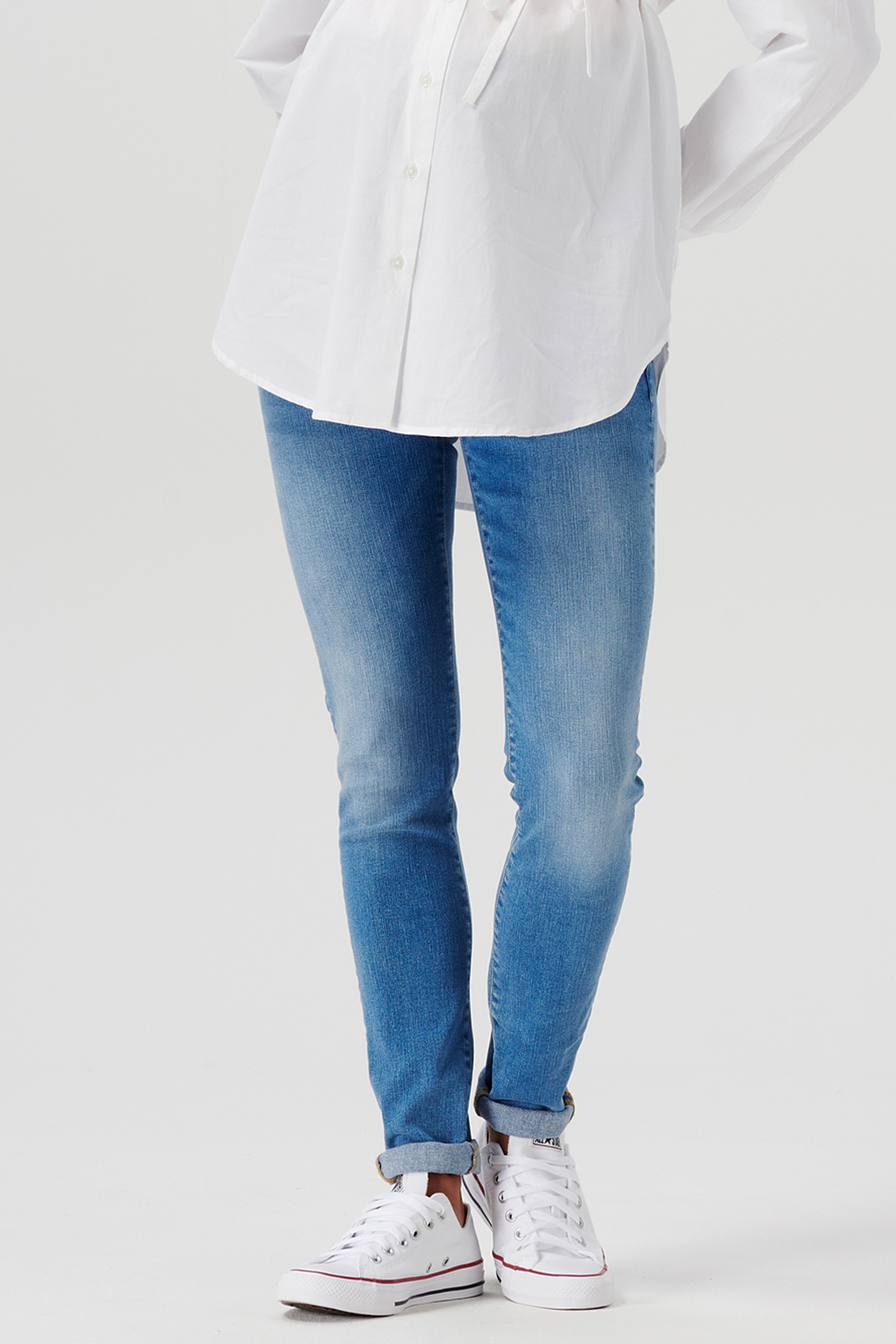 Skinny Umstandsjeans mit umgeschlagenen Jeansbein. Dank des verwaschenen Stoffes erhält die Jeans einen lässigen Look, welchen du gut mit Sneakern stylen kannst. Farbe: denim