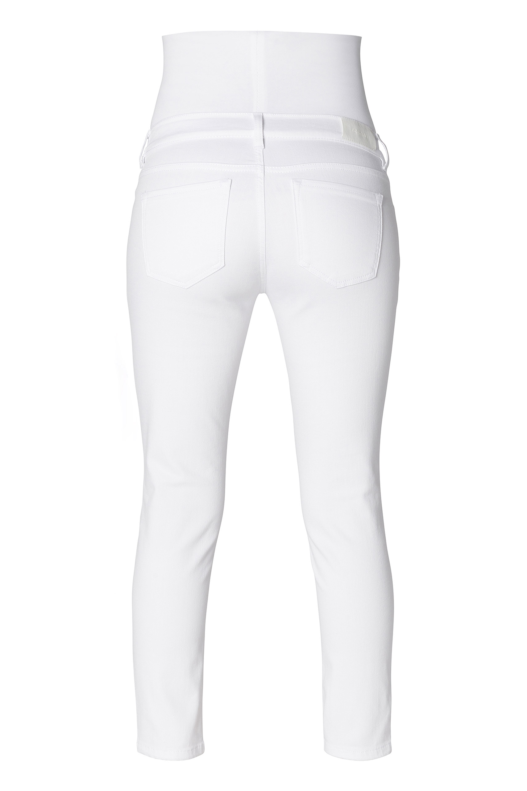 Cropped Umstandsjeans in 7/8 Länge mit geradem Bein und einstellbarem Überbauchbund. Der Materialmix aus BCI* Baumwolle gibt ein besonders angenehmes Tagegefühl. Farbe: weiß