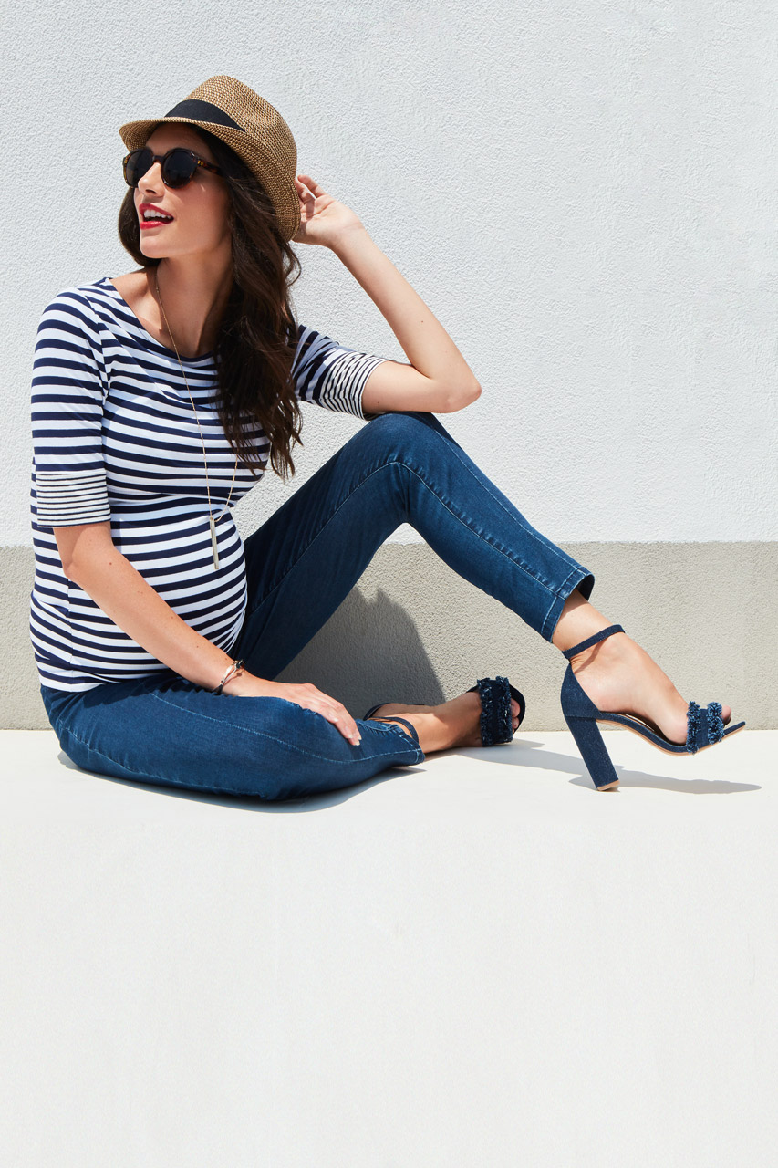 Pintuck Umstandsjeans skinny leg mit zahlreichen Nähten und elastischem Bund. Farbe: denim