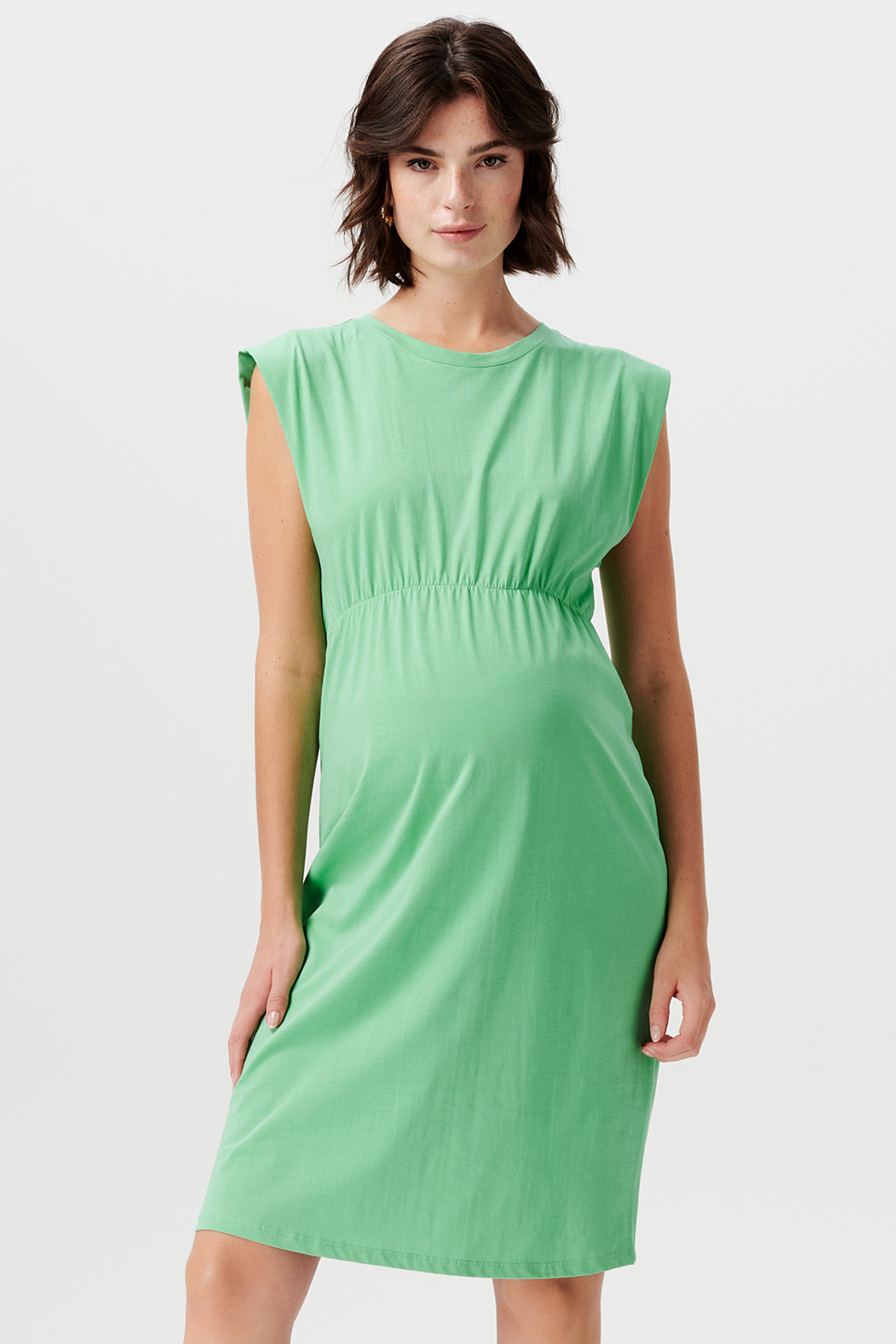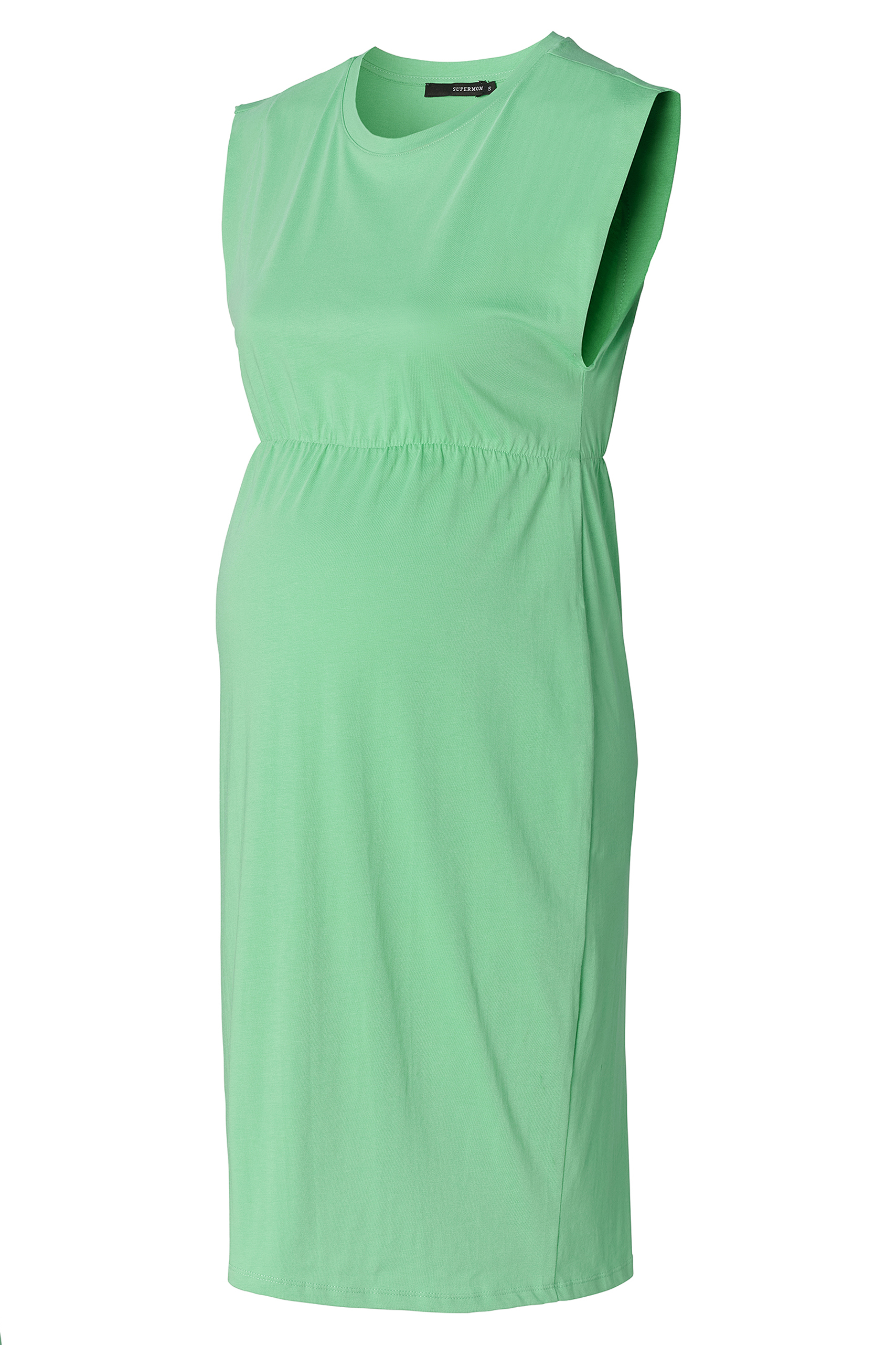 Kurzes Jersey T-Shirt Umstandskleid mit Rundhalsausschnitt und angeschnittenen Ärmeln aus BCI* Baumwolle. Der elastische Bund sorgt für eine schlanke Taille und lässt den Rock locker über deinen Babybauch fallen. Farbe: mint