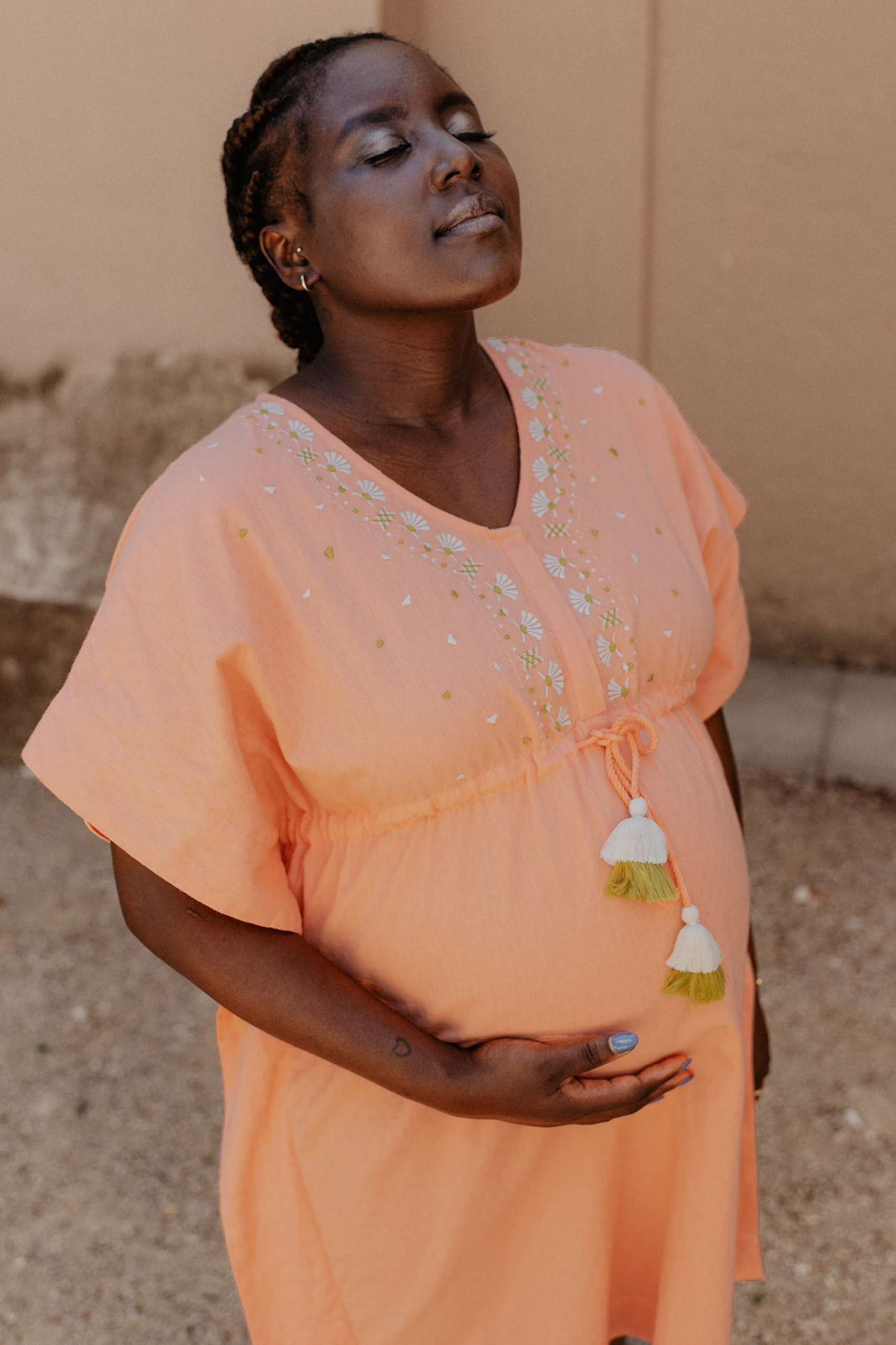 Umstands- und Still-Tunikakleid mit Quastengürtel aus reiner Baumwolle. Dank des verspielten Blumenprint im Brustbereich erhält das Kleid einen sommerlichen Look. Du kannst den Quastengürtel perfekt deiner Silhouette anpassen und gleichzeitig deine Empire Linie betonen. Farbe: apricot