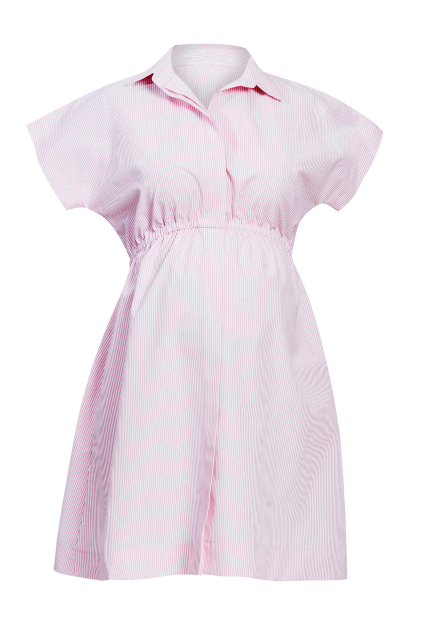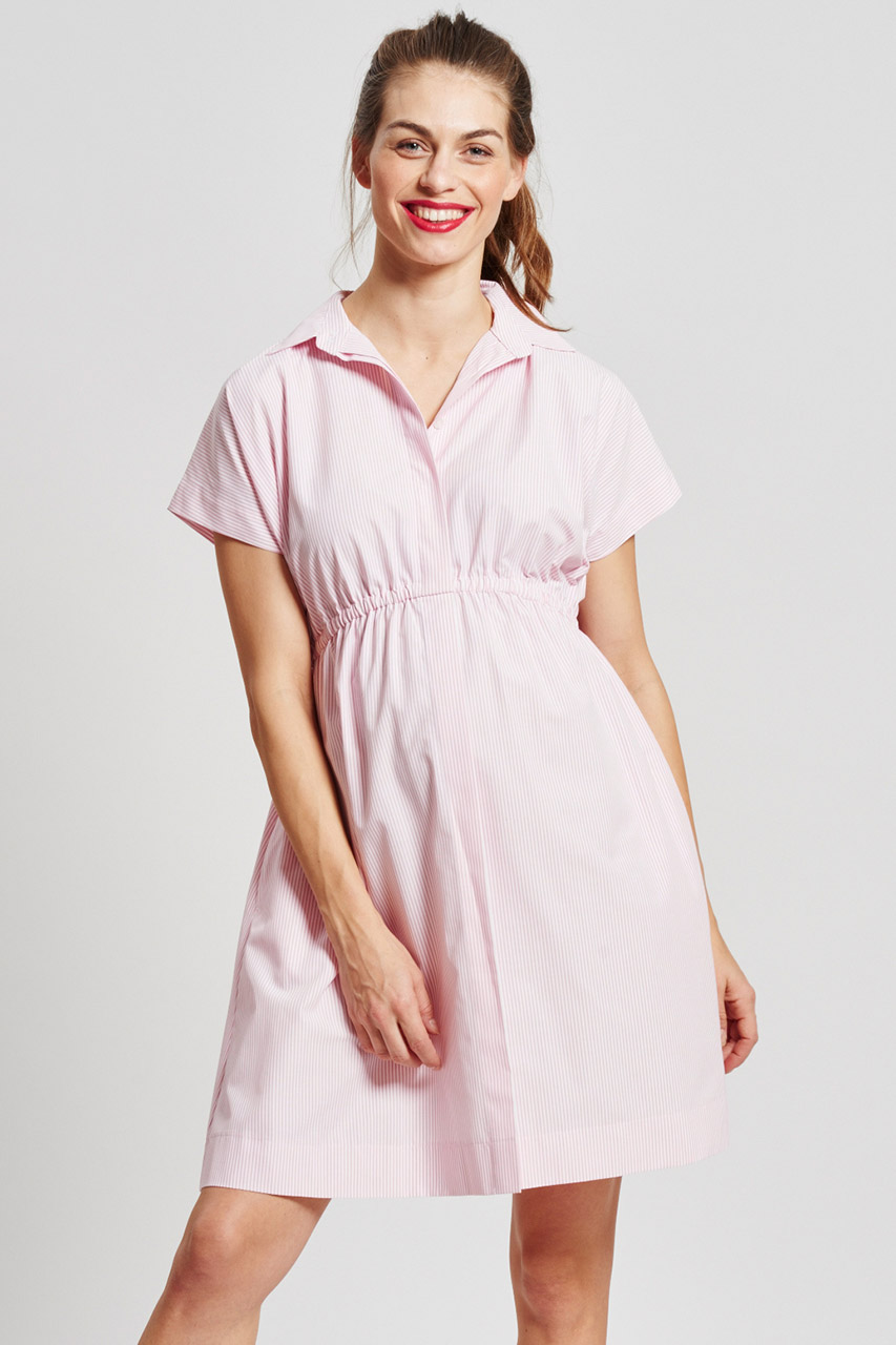 Umstandshemdblusenkleid mit Knopfleiste, kurzen Ärmeln und feinen Streifen. Farbe: rosa/weiß