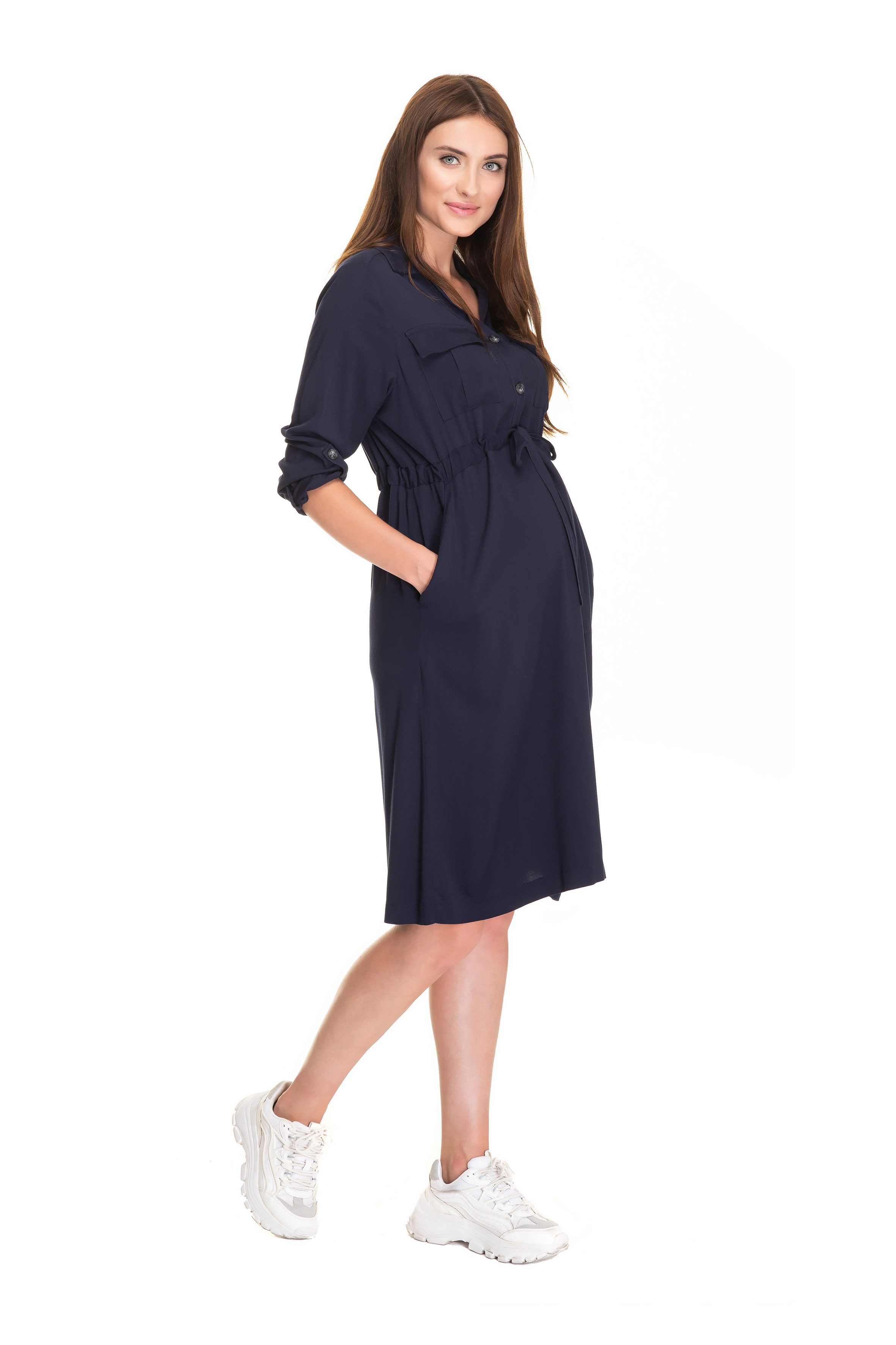 Umstands- und Stillkleid im Hemdblusen-Stil mit Kragen und stylischen Riegeln mit Knopf an den Ärmeln. Der seidig-weiche Viskosestoff und das besondere Design mit verstellbarem Tunnelzug und Schleife in der Taille betonen sehr schön deinen wachsenden Bauch und geben ihm zu jeder Zeit ausreichend Platz. Nach der Geburt erhältst du einen schnellen Stillzugang über die Knopfleiste und kannst es noch lange danach tragen. Ein tolles Kleid, das sich vielseitig stylen lässt- ob ins Büro, für den Urlaub oder die nächste Party! Farbe: navy