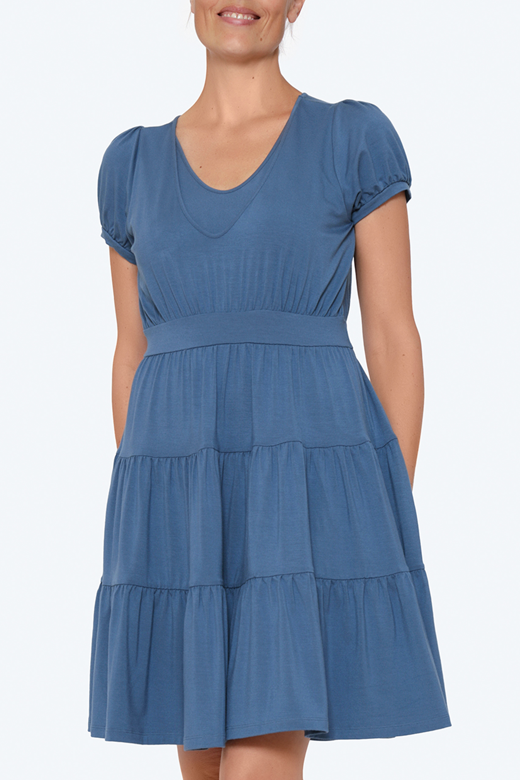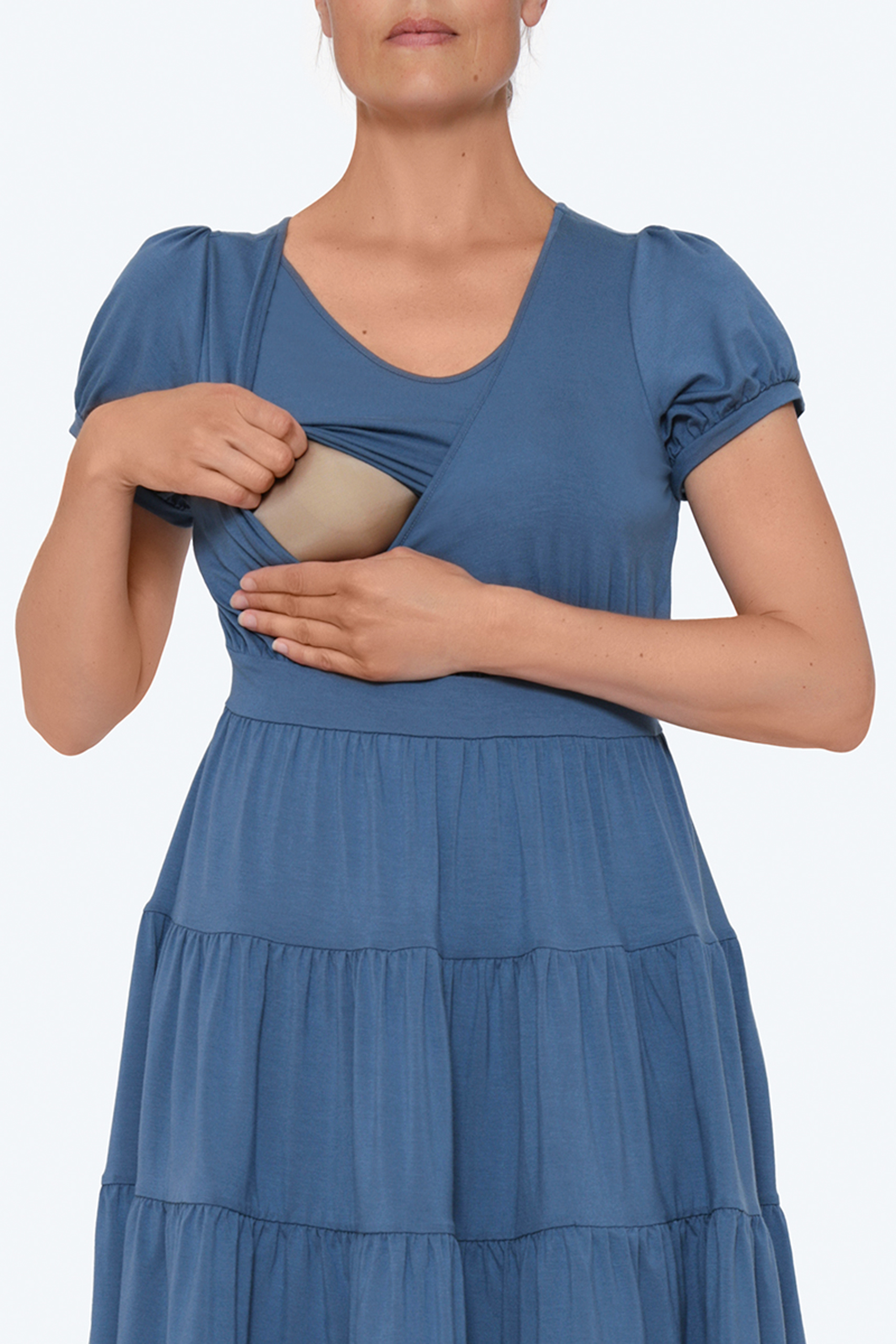 Kurzes Umstands- und Stillkleid aus weicher und nachhaltiger Bambus-Viskose. Das Sommerkleid fällt in allen Phasen der Schwangerschaft wunderbar über deinen Bauch und lässt ihm jederzeit genügend Spielraum. Das doppellagige Oberteil ermöglicht es dir später, dein Baby jederzeit einfach und diskret zu stillen. Da das Kleid auch ohne Babybauch toll aussieht, kannst du es problemlos noch lange nach der Schwangerschaft weitertragen. Farbe: blau