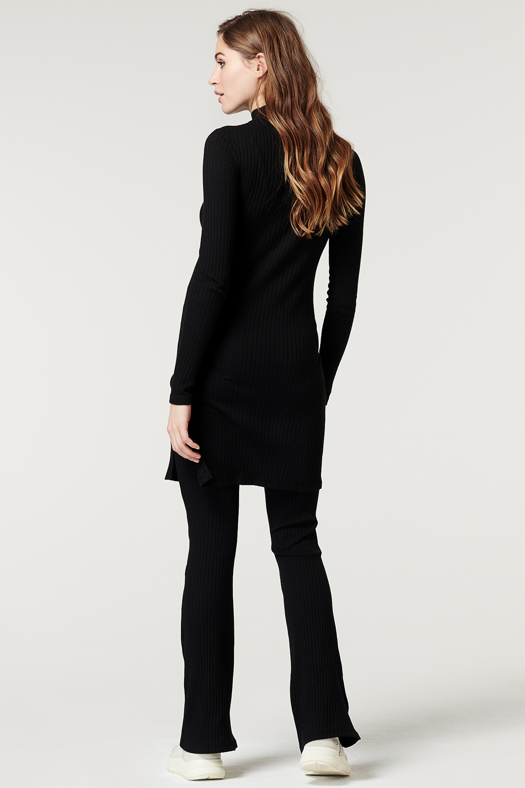 Rippstrick Umstandstunika mit Stehkragen, die sich vielfältig kombinieren lässt. Das dehnbare Material lässt deinem Bauch bis zur Geburt genügend Platz zum Wachsen und betont ihn dabei besonders schön. Farbe: schwarz