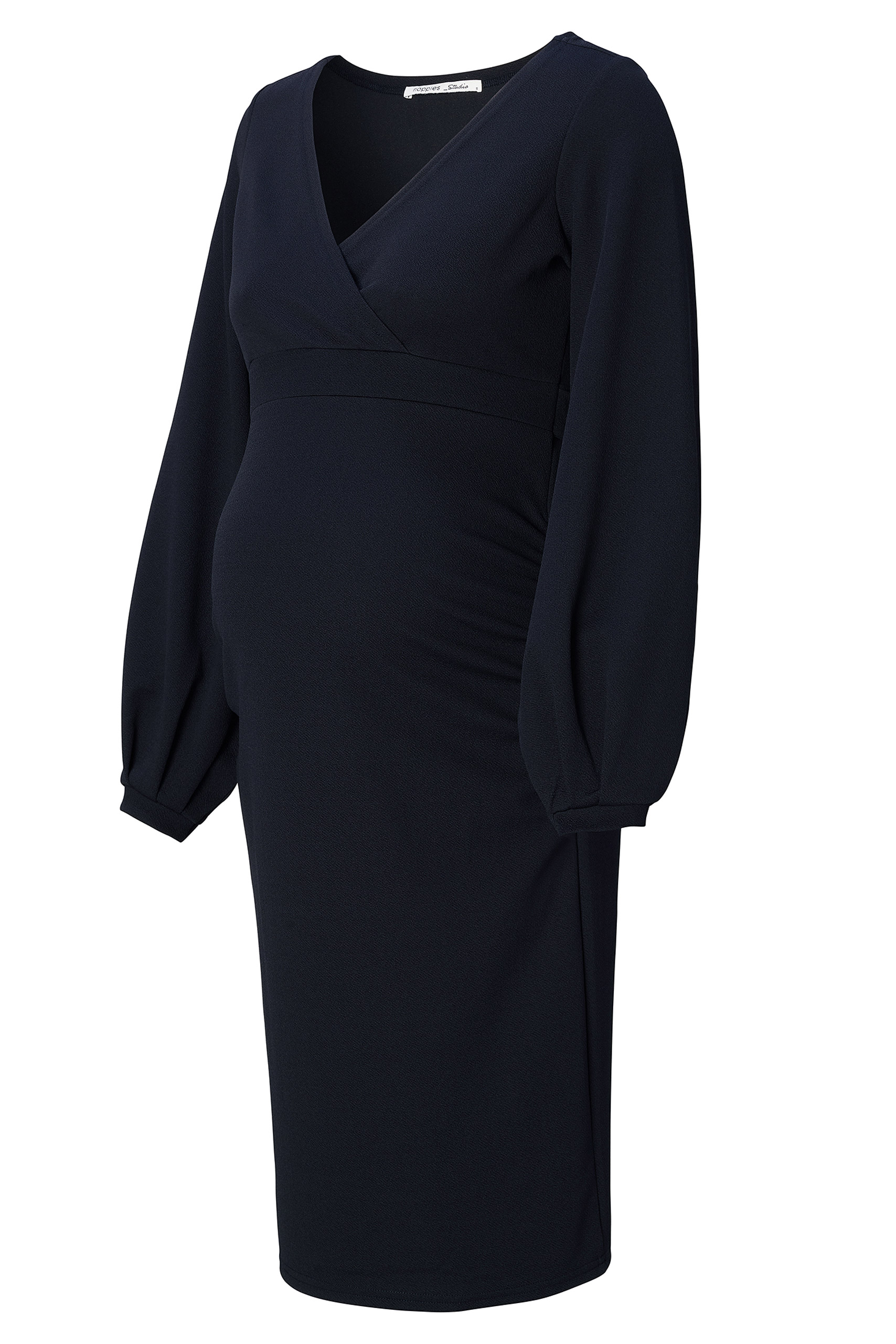 Umstands- und Stillkleid aus recyceltem Material mit Ballonärmeln und Cache-Coeur Ausschnitt, über den du dein Baby später ganz leicht stillen kannst. Raffungen an den Seitennähten geben deinem Babybauch während der gesamten Schwangerschaft viel Platz zum Wachsen. Der enganliegende Schnitt betont ihn dabei besonders schön. Über einen integrierten Bindegürtel kannst du das Kleid optimal an deine Figur anpassen. Farbe: navy