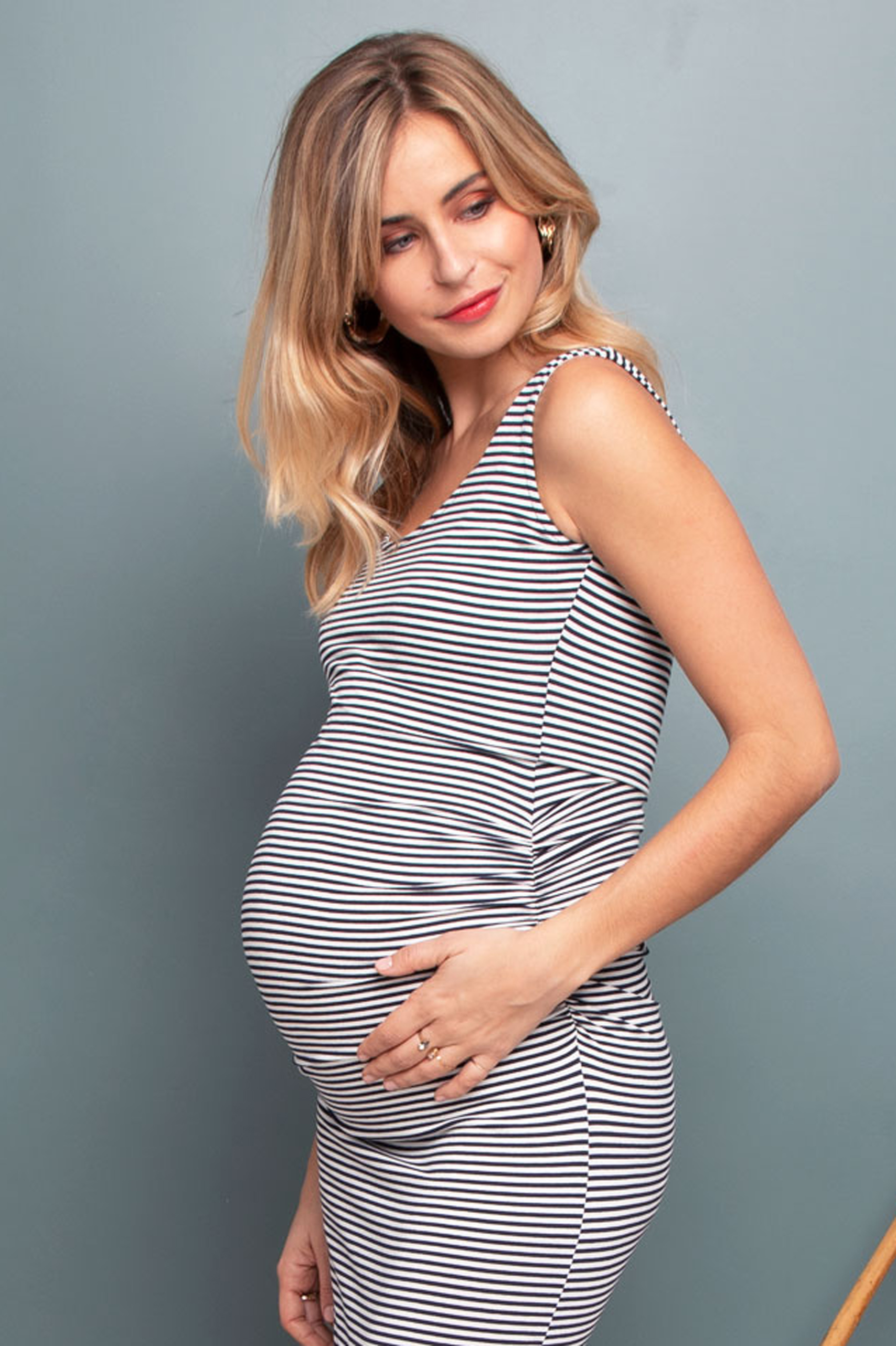 Bodycon Umstands- Trägerkleid gestreift
