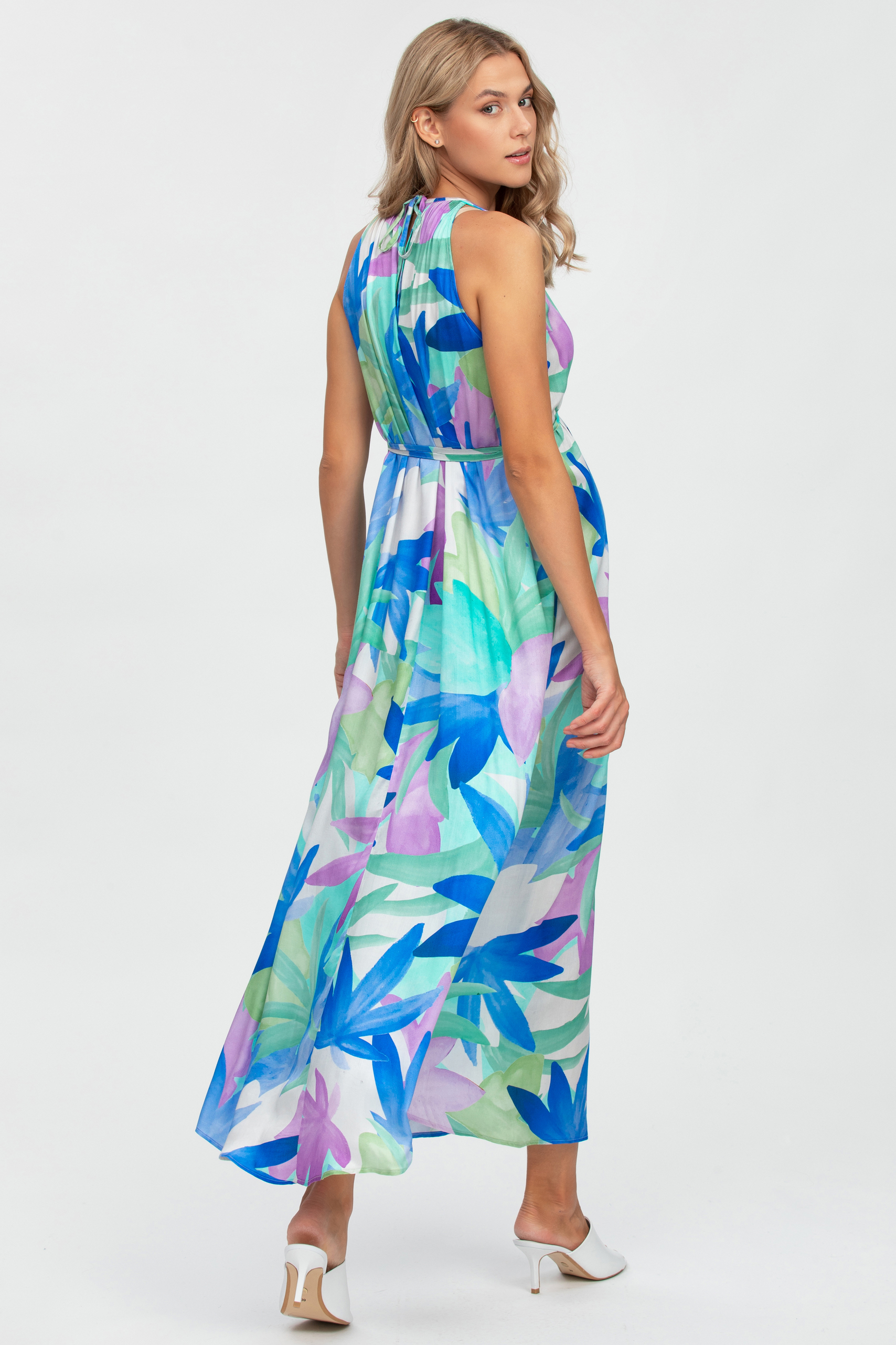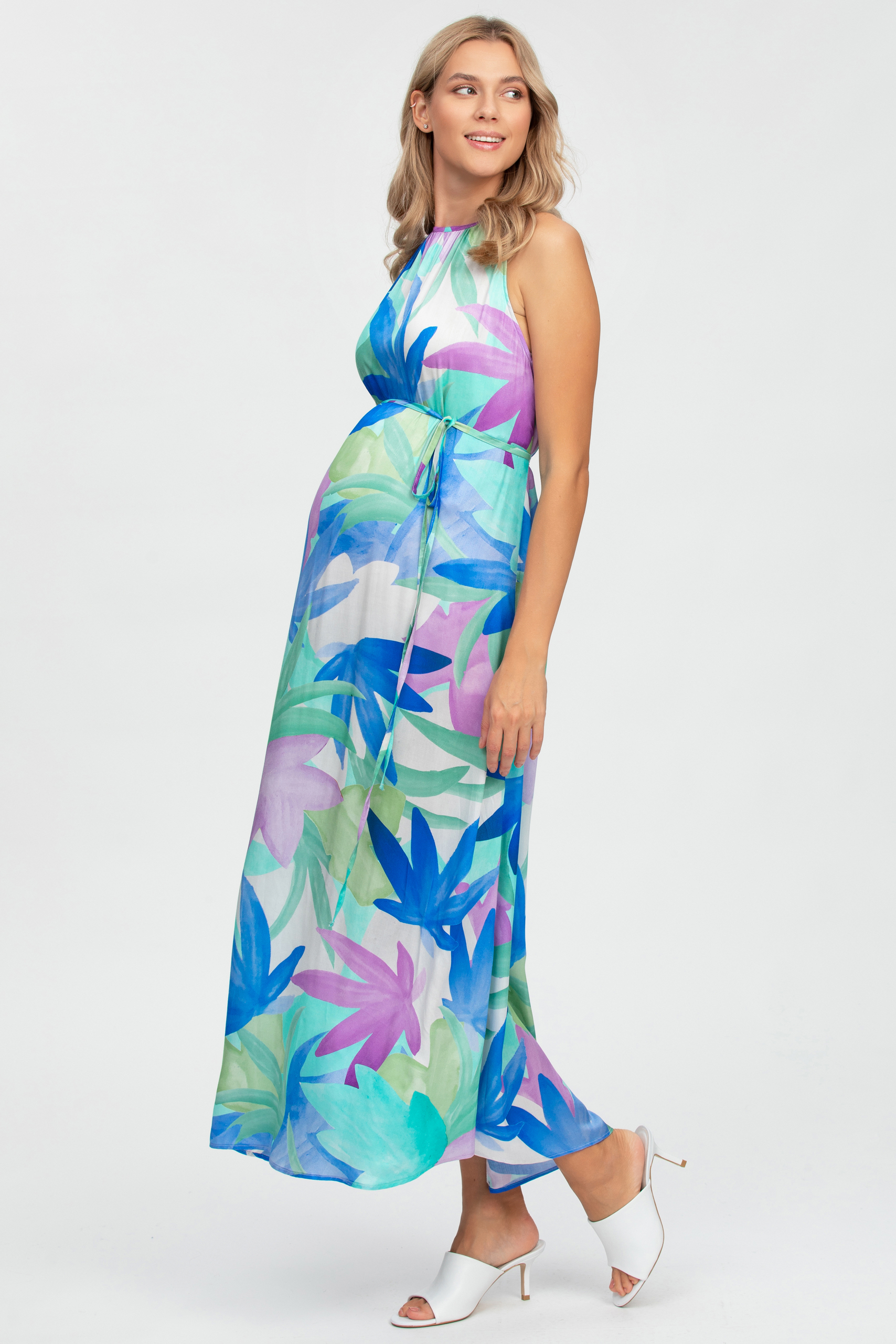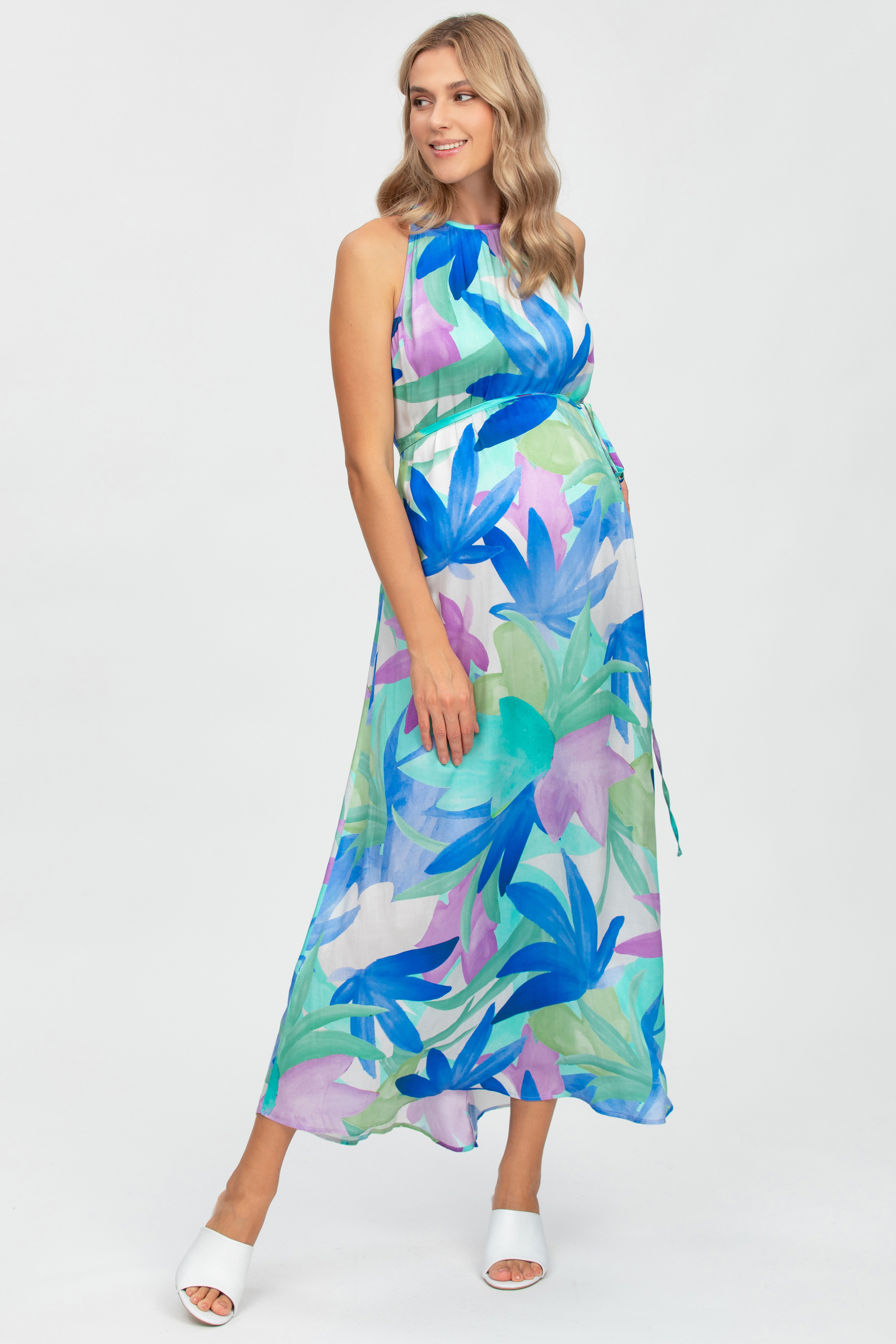 Midi Umstandskleid aus reiner Viskose mit Bindegürtel. Durch das Bindedetail am Rücken und an der Taille kannst du das Kleid perfekt deiner Silhouette anpassen. Der sommerliche Print verleiht dem Kleid einen verspielten Look und bietet sich daher auch perfekt für festliche Anlässe an. Farbe: blau