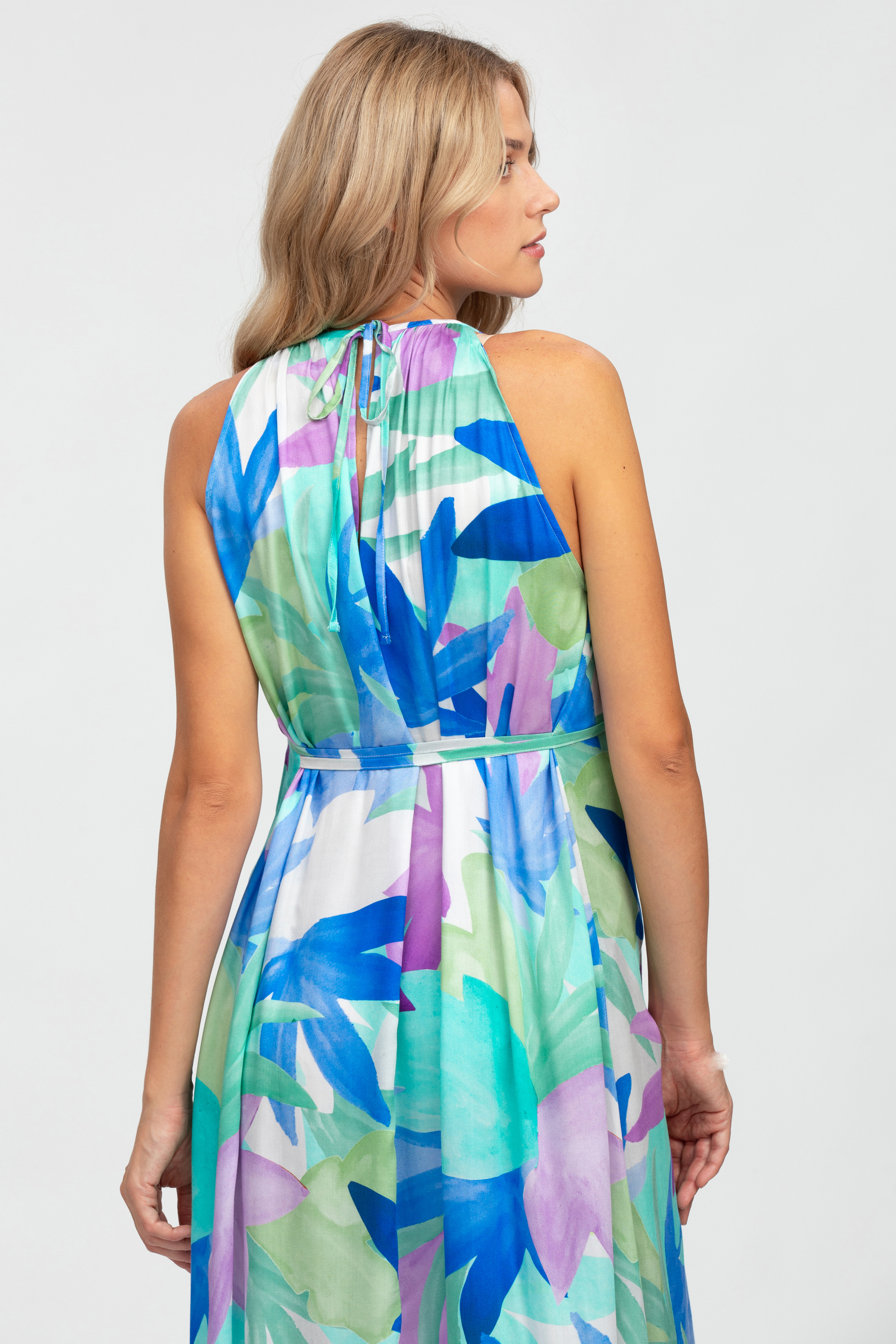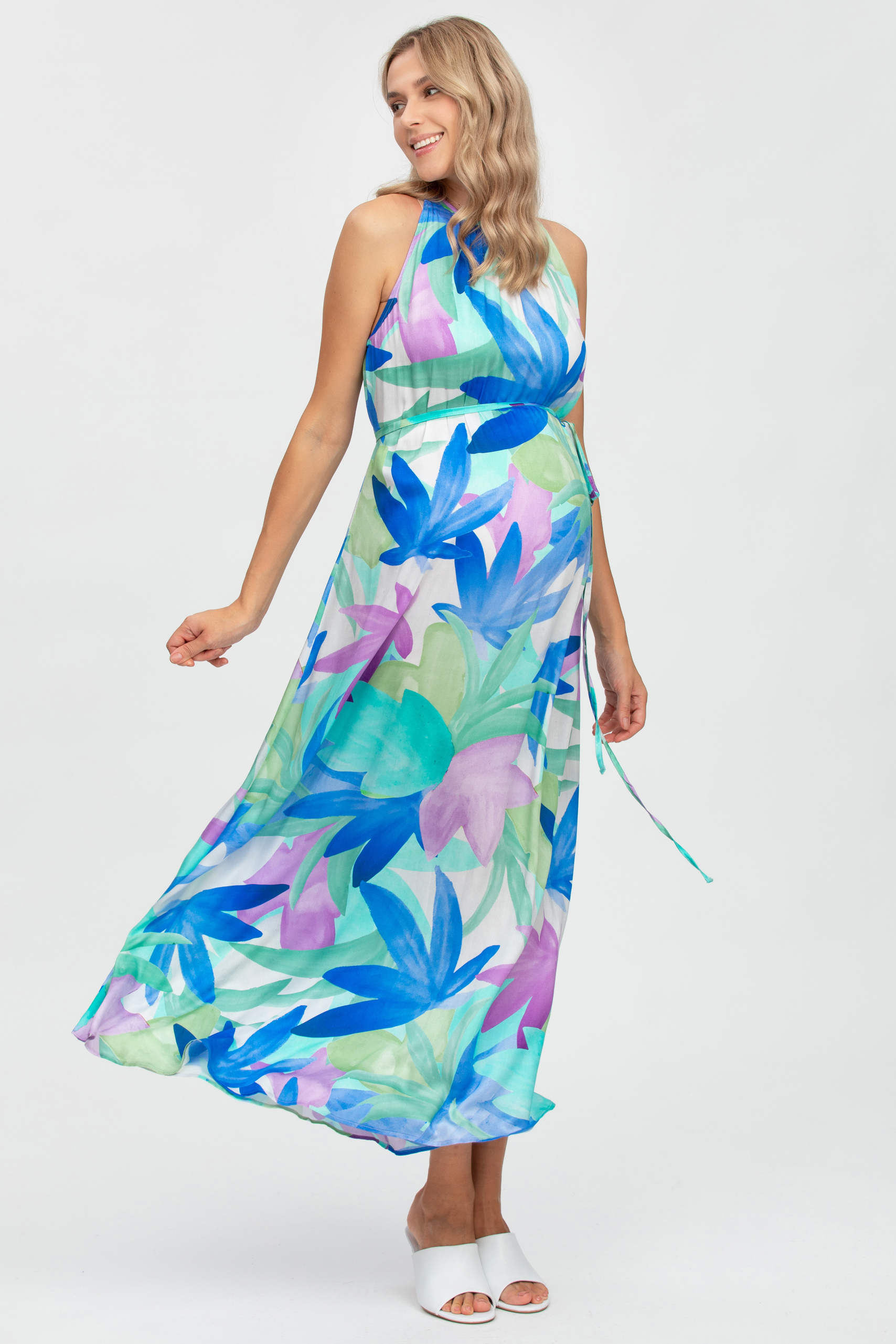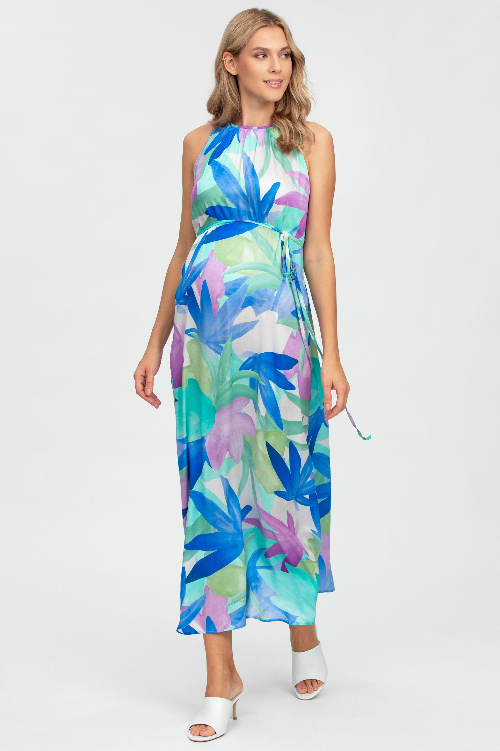 Midi Umstandskleid aus reiner Viskose mit Bindegürtel. Durch das Bindedetail am Rücken und an der Taille kannst du das Kleid perfekt deiner Silhouette anpassen. Der sommerliche Print verleiht dem Kleid einen verspielten Look und bietet sich daher auch perfekt für festliche Anlässe an. Farbe: blau