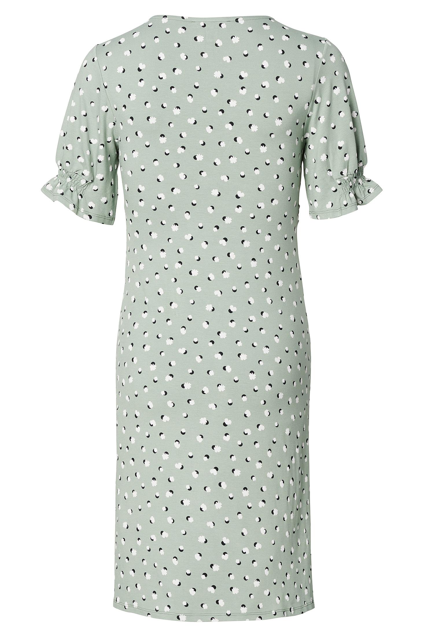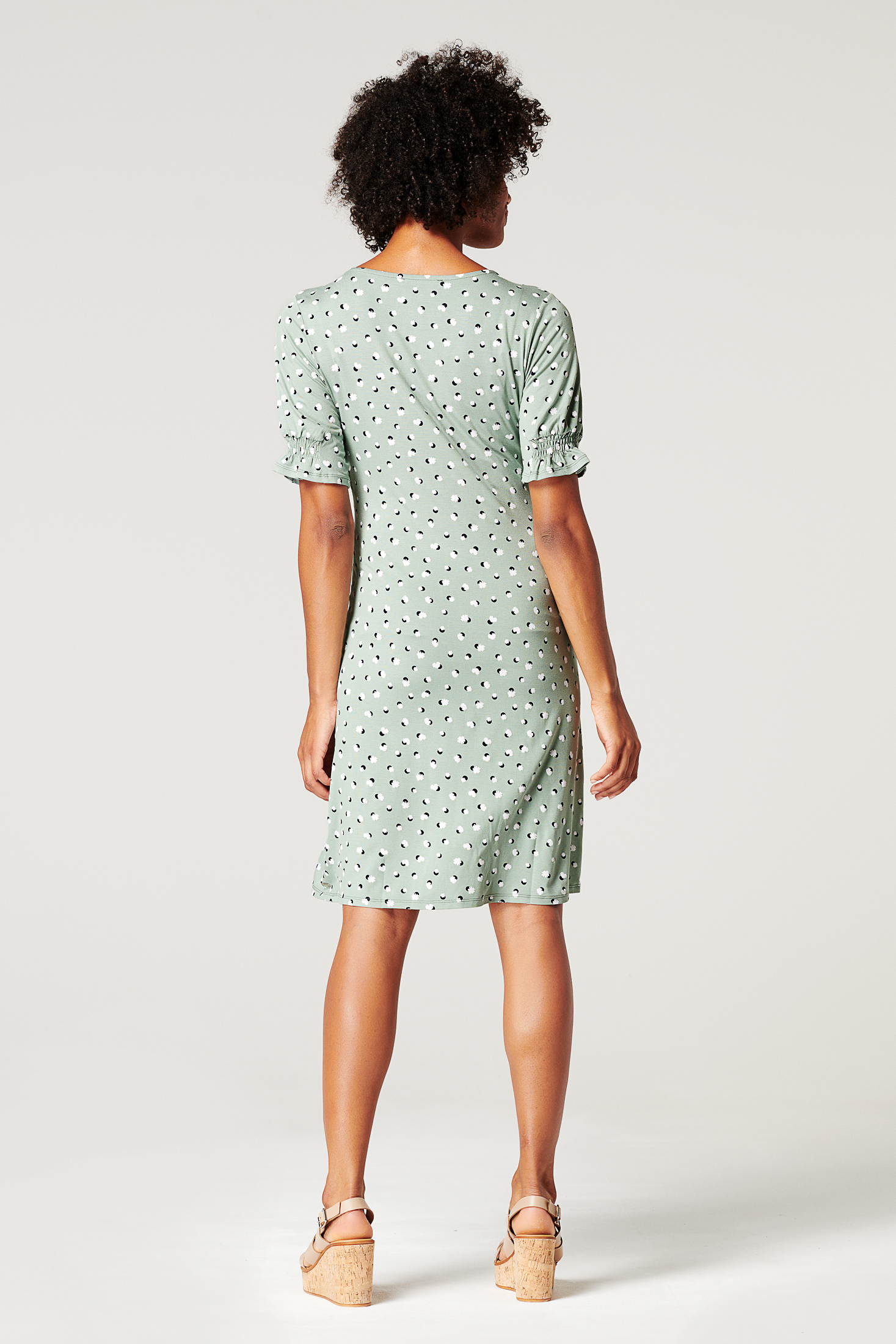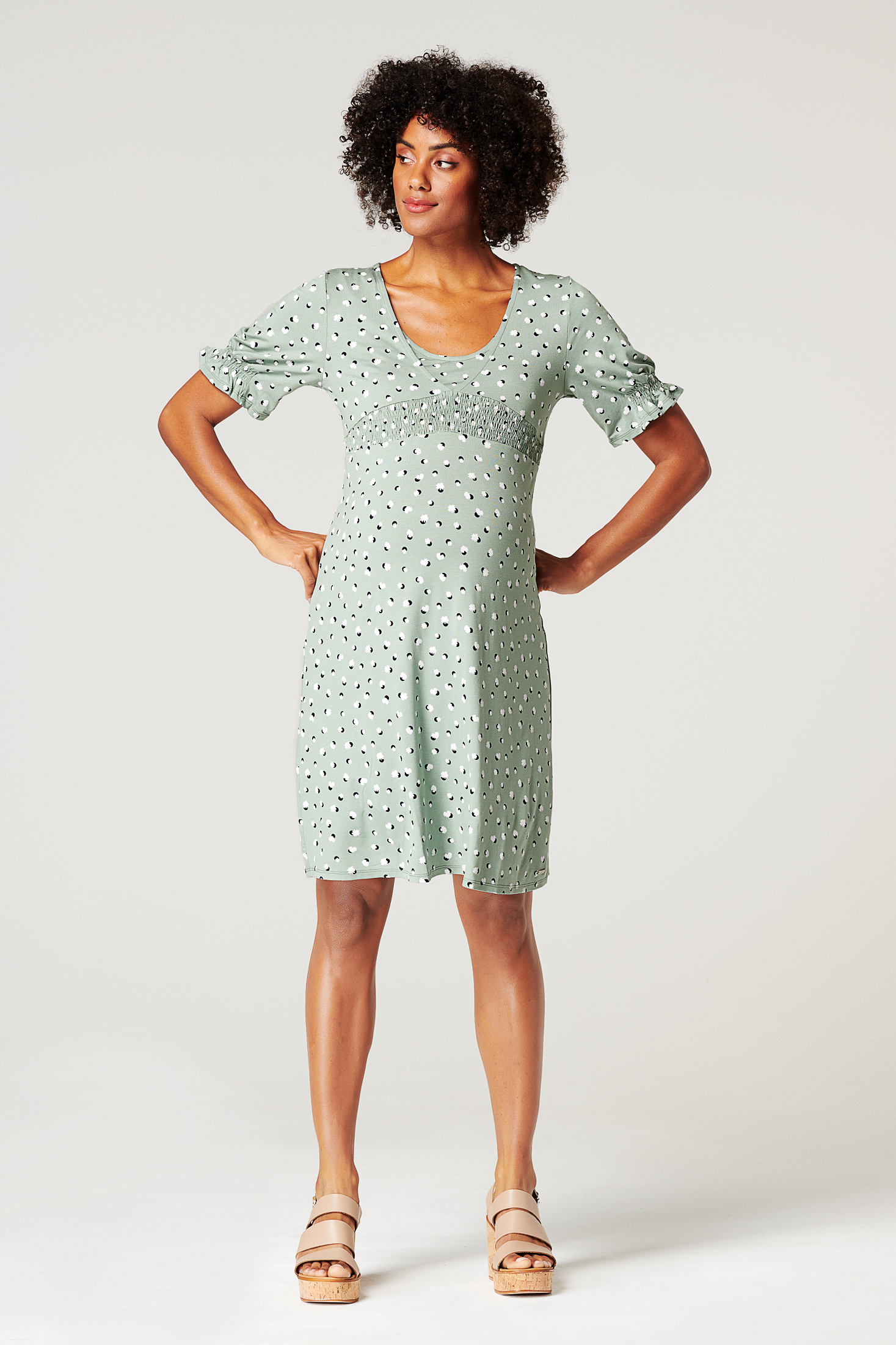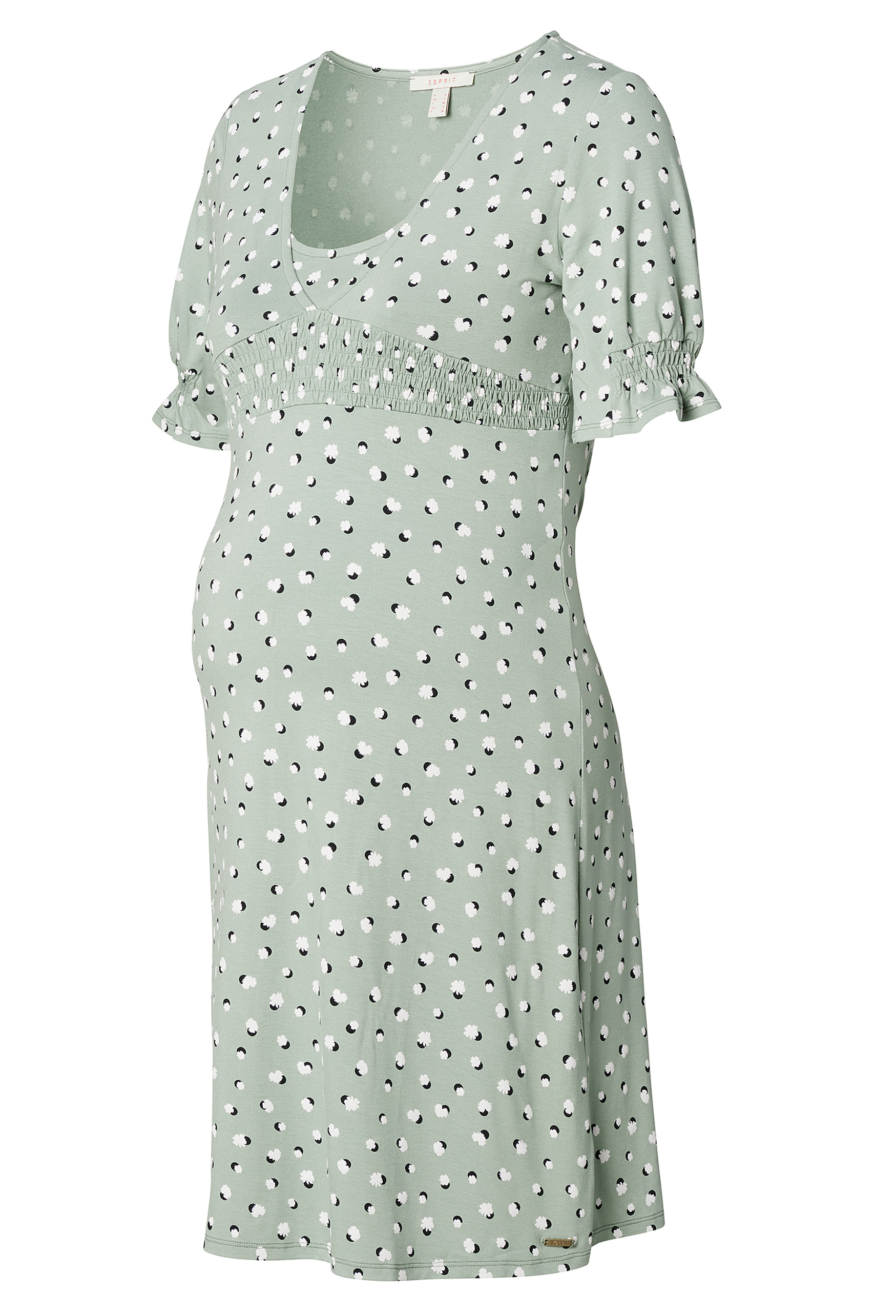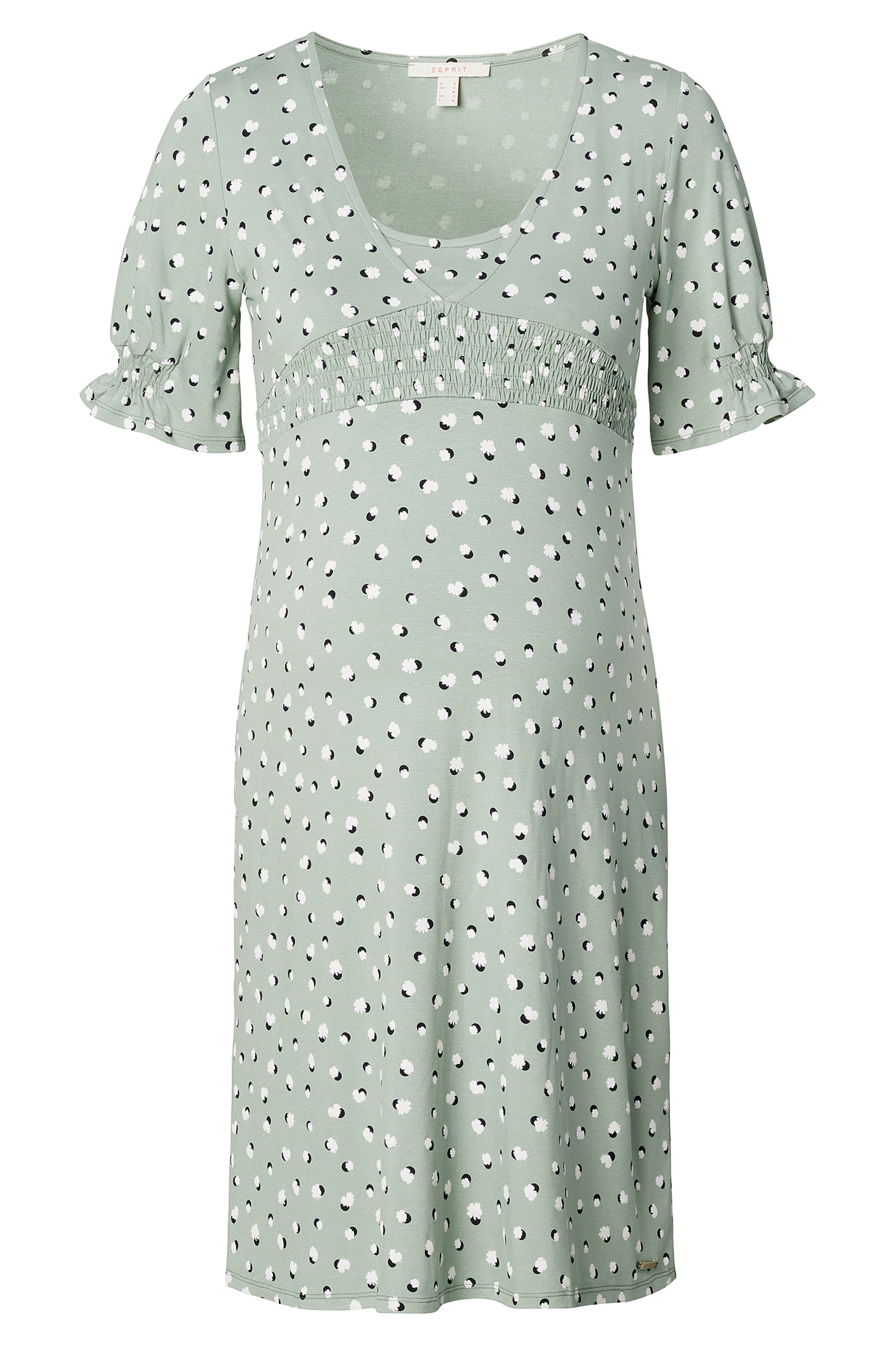 Kurzes Umstands- und Stillkleid aus EcoVero™ Jersey. Ein elastischer Einsatz unter der Brust sorgt dafür, dass dein Babybauch ausreichend Platz zum Wachsen hat und schafft eine schöne Silhouette. Nach der Geburt kannst du dein Baby darin bequem stillen: über den flexiblen Ausschnitt erhältst du einen schnellen Zugang zur Brust. Farbe: mint/print