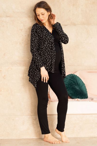 Beim Styling von Umstandsleggings sind dir zwar kaum Grenzen gesetzt, aber beachte eine goldene Regel: Leggings are not pants! Solltest du nicht gerade eine Variante aus veganem Leder oder eine Umstandsjeggins haben, verwende deine blickdichte Umstandsleggings nicht als Ersatz für eine Umstandshose. Das bedeutet: kombiniere dazu am besten immer längere Umstandsoberteile, die über deinen Po reichen. Sehr cool sehen dabei Oversized Schnitte aus, da sie einen optimalen optischen Kontrast bieten. Besonders gut eignen sich aber auch Umstandstuniken, da sie die ideale Länge haben. Je nach Modell kannst du dazu dann lässige Sneaker, hübsche Schwangerschaftsballerinas oder auch coole Boots stylen. Für einen schicken Bürolook kannst du deine Umstandsleggings aus Kunstleder mit einer schlichten Bluse kombinieren. Eine auffällige Leggings mit Muster trägst du ebenfalls am besten zu einem schlichten und unifarbenem Oberteil. Sonst könnte der Look schnell überladen wirken.