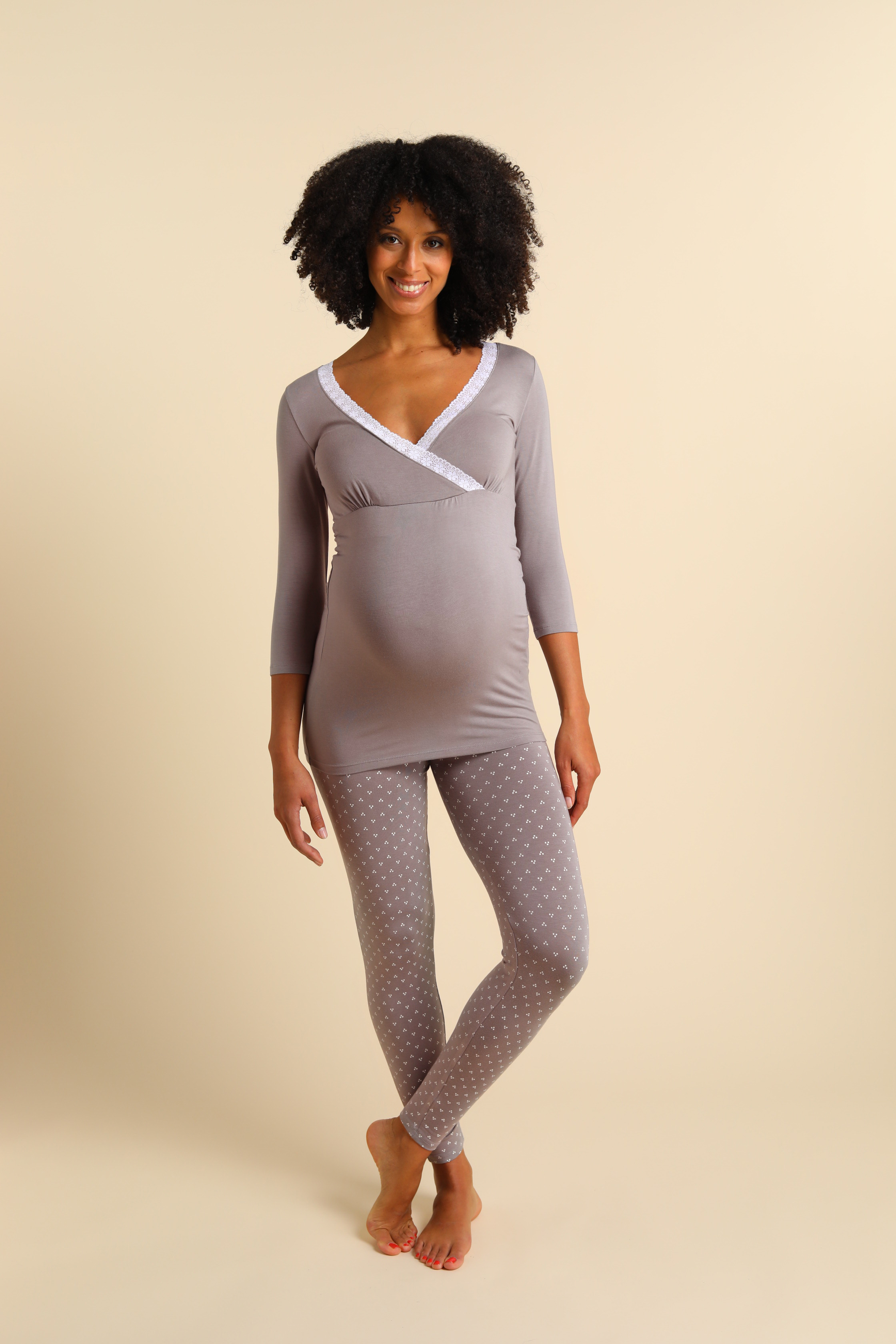 Modal Pyjama Umstands- und Stillshirt taupe
