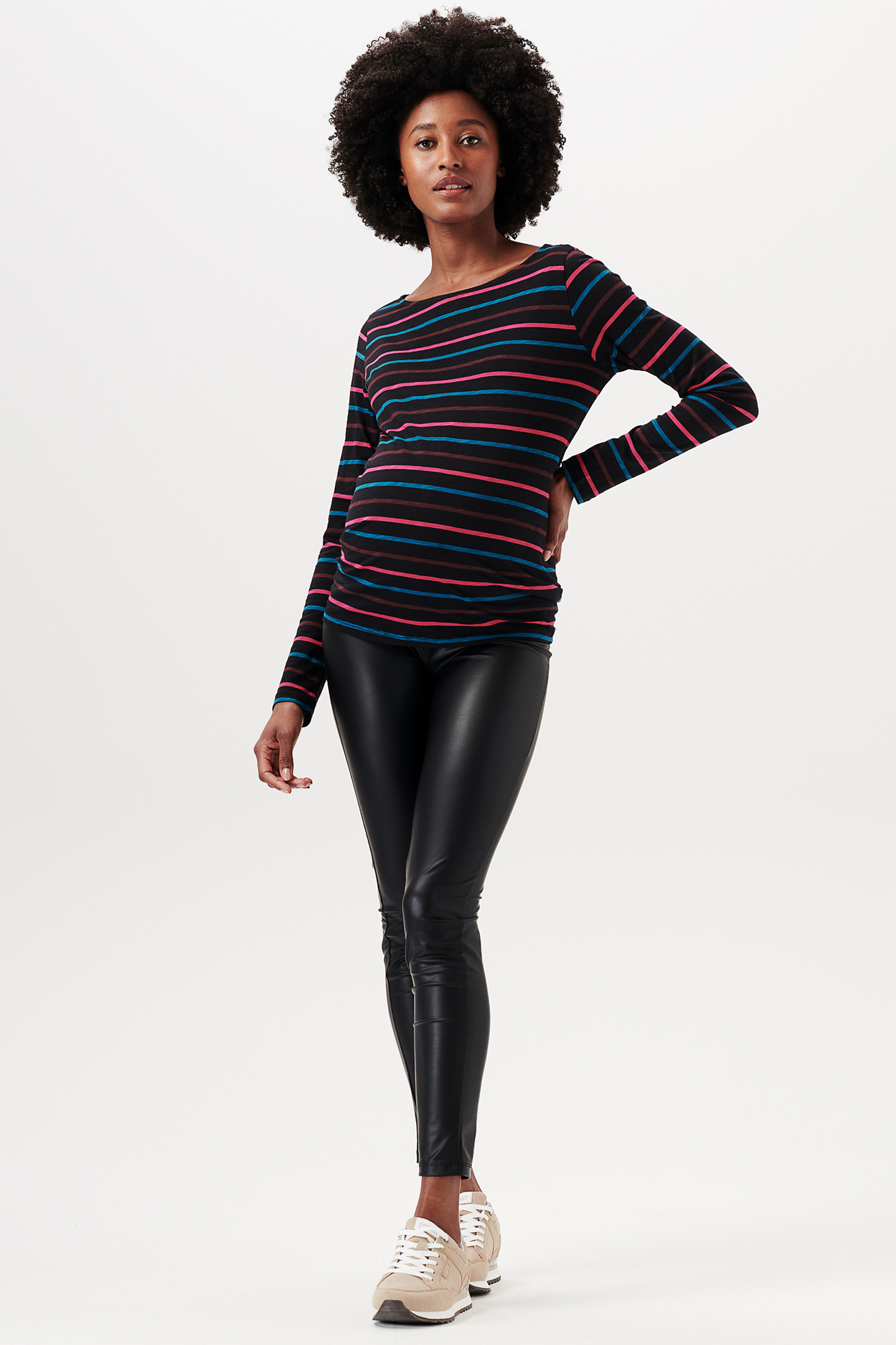 Eco Umstandsleggings aus recyceltem Polyester im stylishen Lederlook. Ein elastischer Überbauchbund bietet deinem Babybauch sanften Halt. Die Hosenbeine der Kunstleder-Leggings sind modisch gecroppt. Kombiniere sie je nach Lust uns Laune mit Boots, Sneakers oder Pumps. Farbe: schwarz