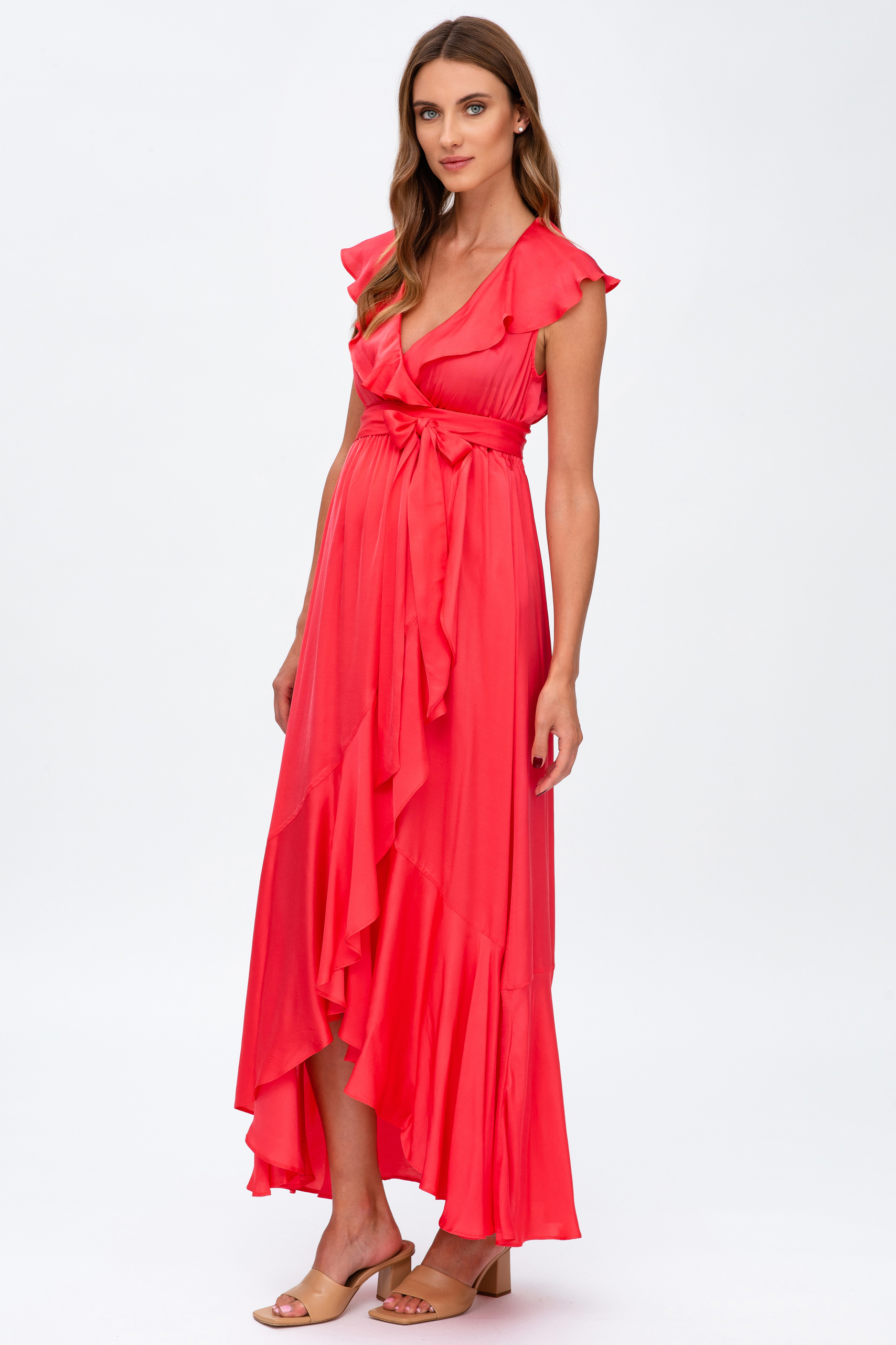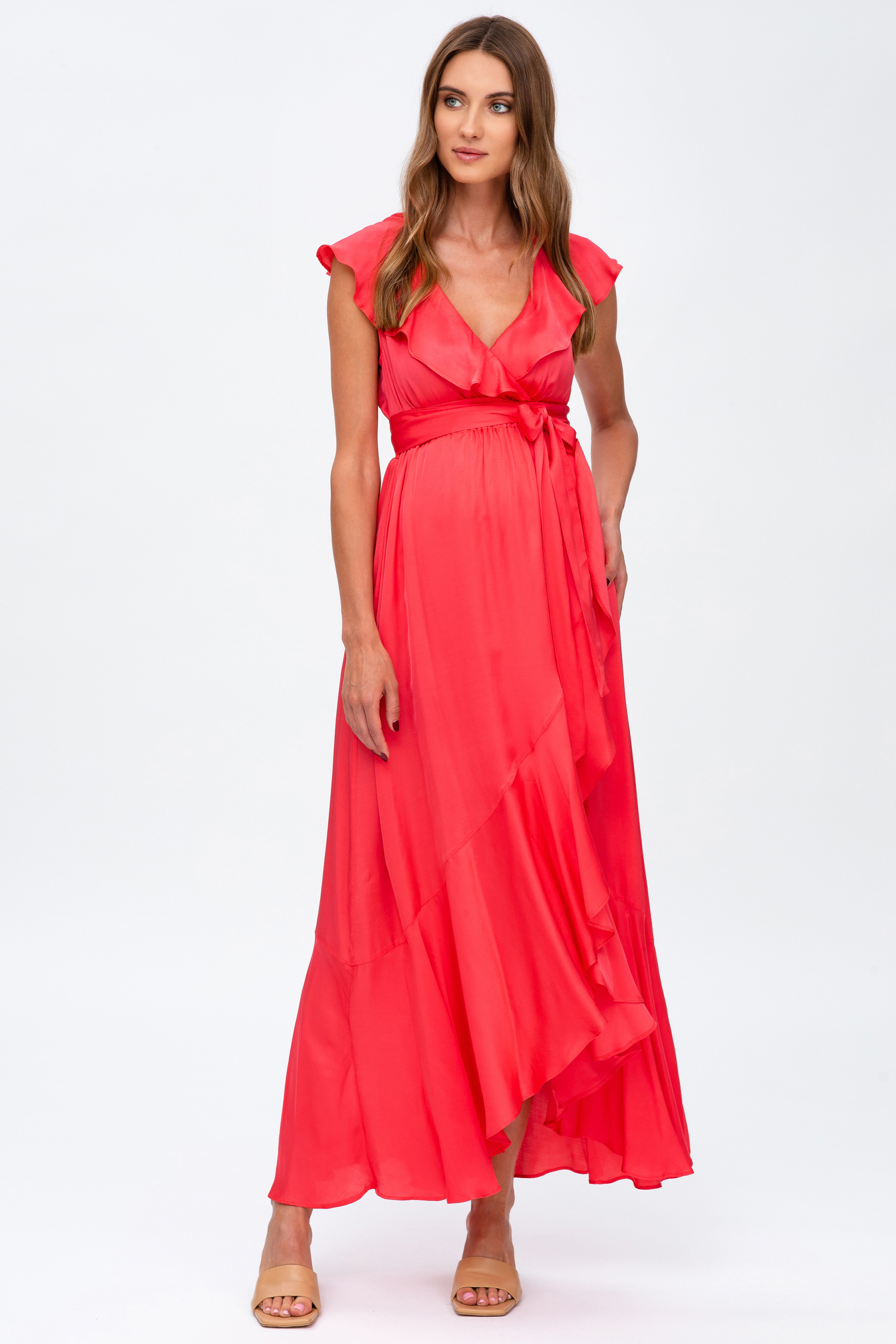 Festliches Umstands- und Stillkleid mit Volants koralle