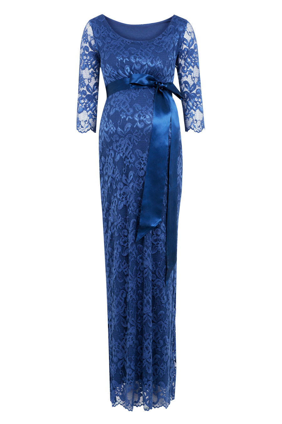 Umstandskleid mit halblangen, transparenten Ärmeln, Rundhalsausschnitt und abnehmbarer Schärpe zur Betonung der Empire Line. Farbe: blau