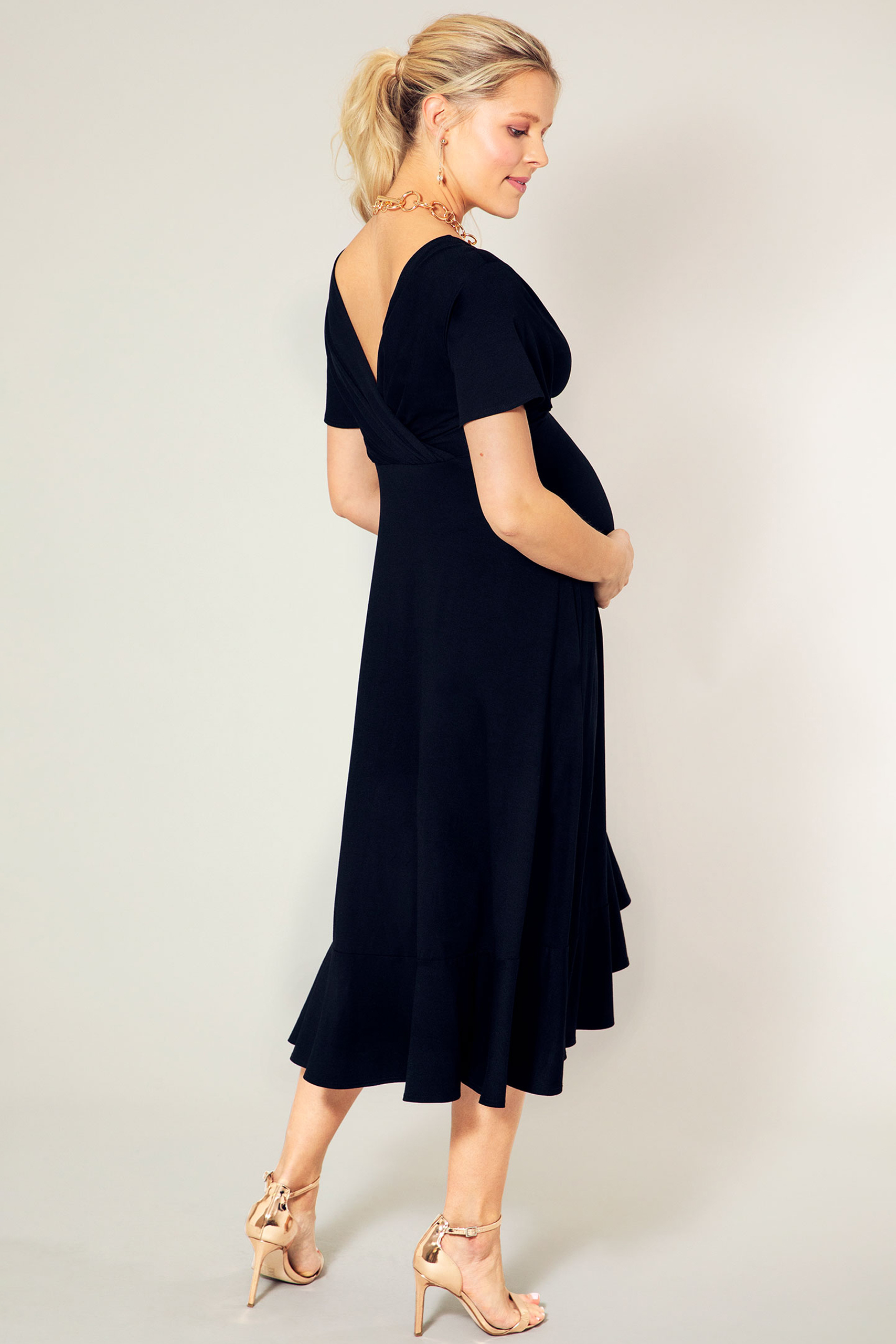 Wasserfall Midi Umstands- und Stillkleid schwarz