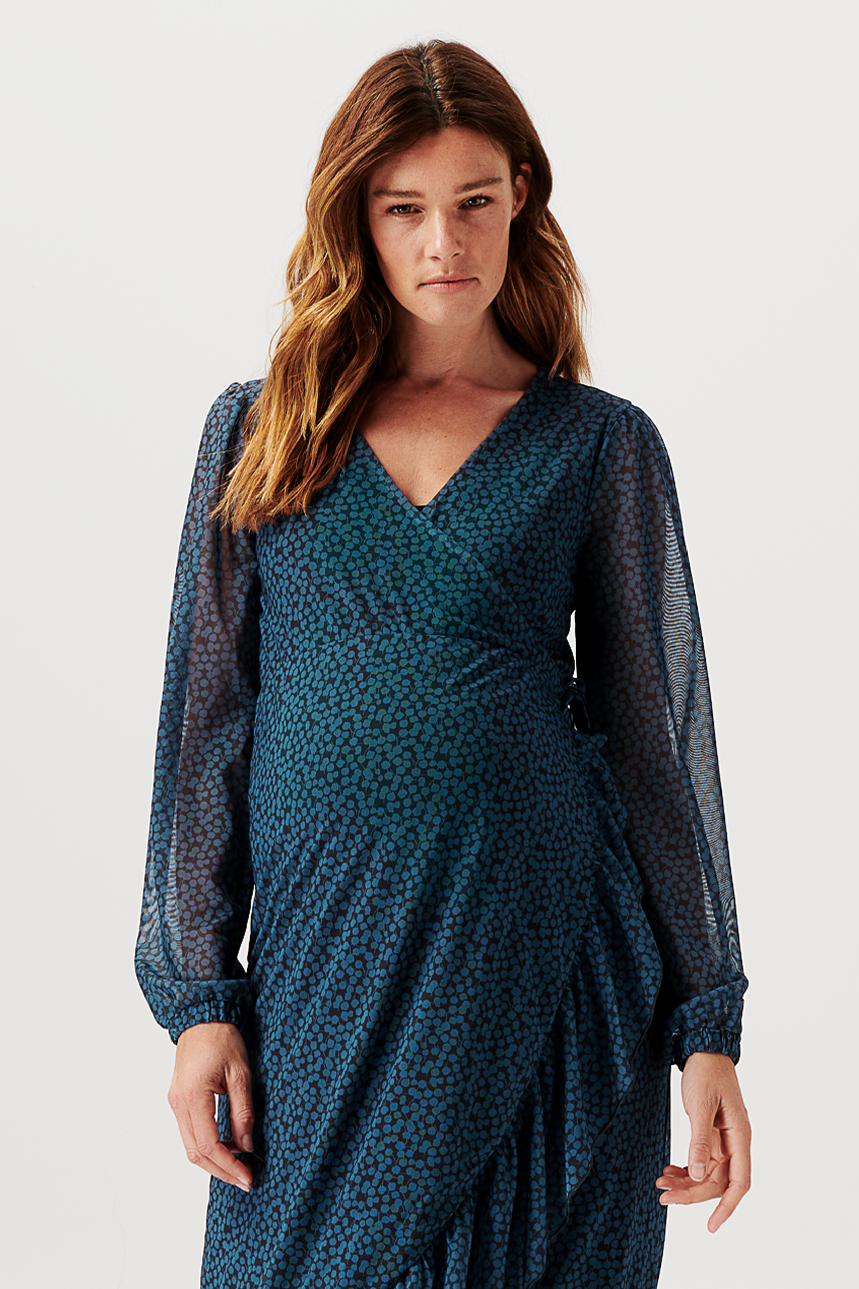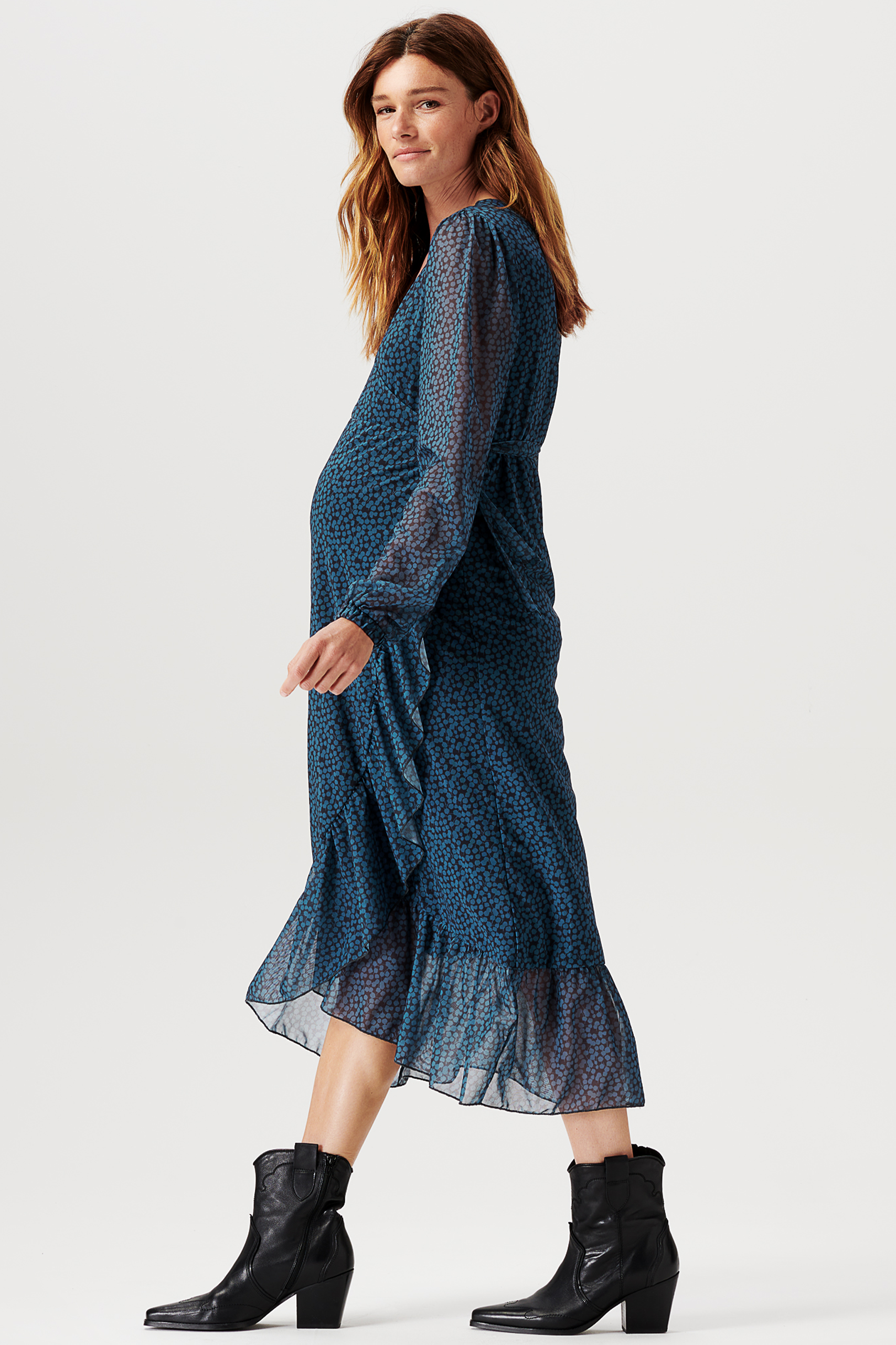 Midi Umstands- und Stillkleid in Wickeloptik petrol