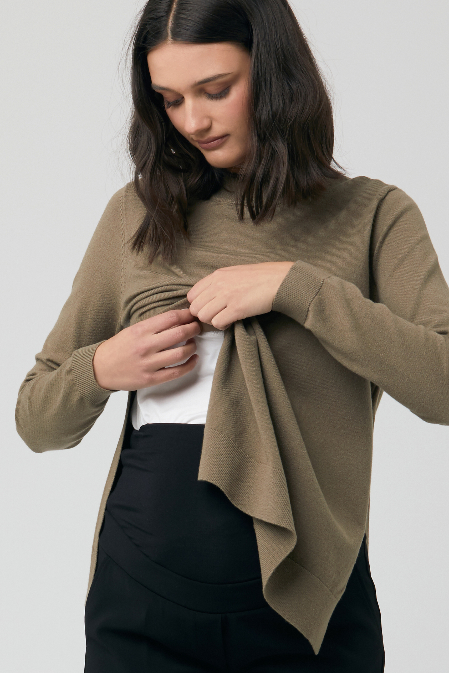 2 in 1 Umstandspullover und Shirt mit Stillöffnung olive