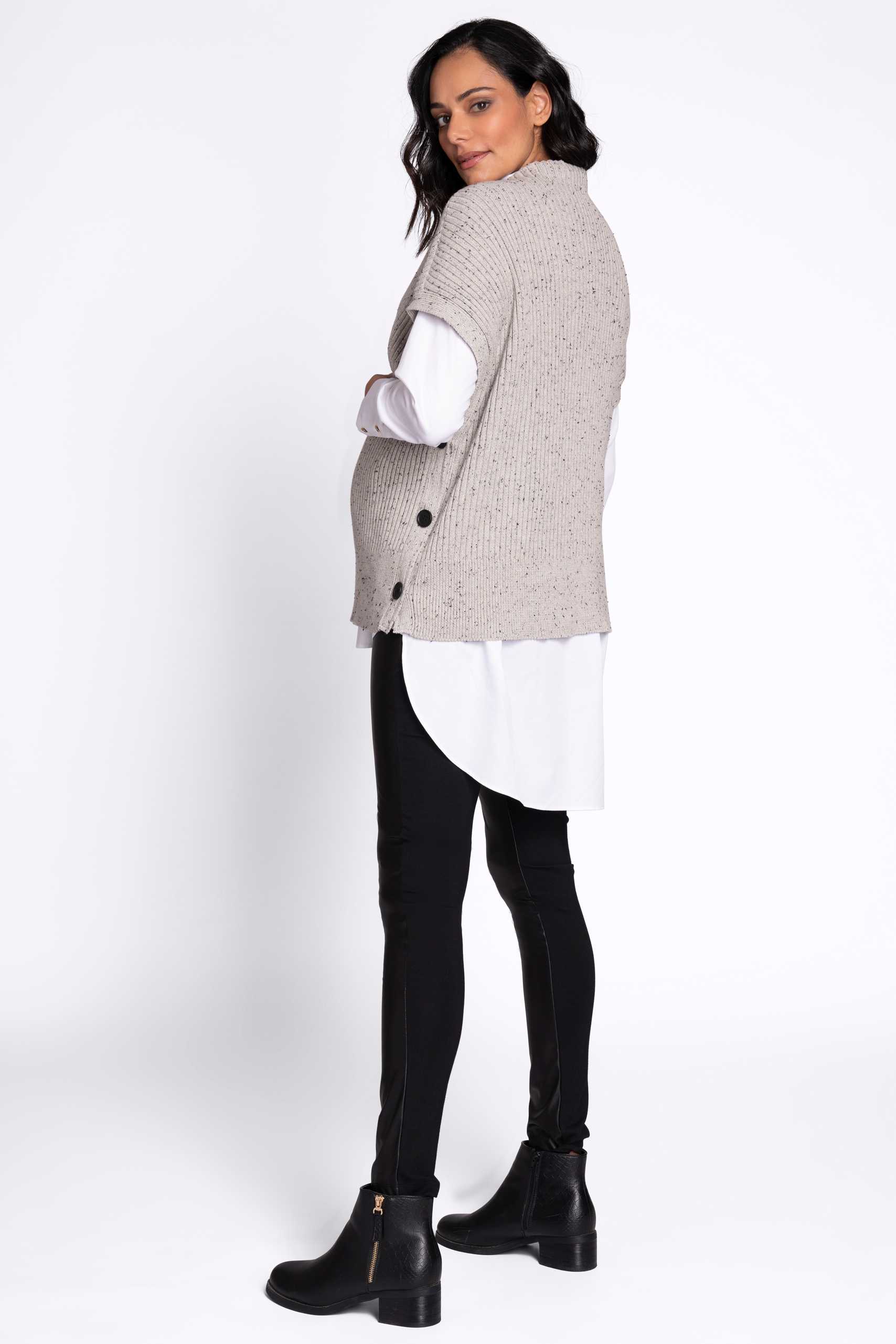 Umstands- und Still-Pullunder aus dehnbarem Rippstrickgewebe. Während der Schwangerschaft kann dein Bauch dank des besonderen Schnitts bequem darin wachsen. Zum späteren Stillen deines Babys kannst du den Pullunder mithilfe der seitlichen Knopfleisten ganz einfach öffnen und schließen. Farbe: grau