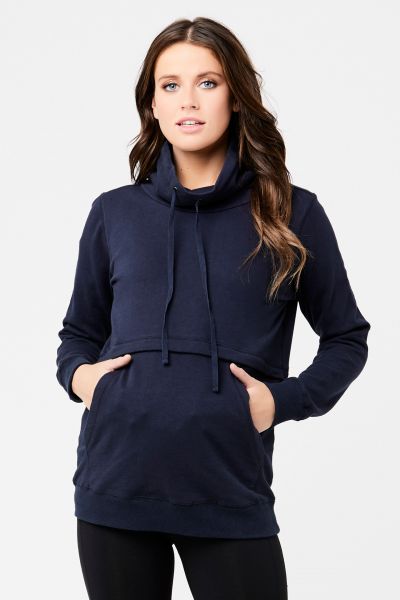 Aufgrund seiner sportlichen Herkunft ist der Sweater gerade zu prädestiniert für stylische Freizeitlooks, bei denen du eigentlich nichts verkehrt machen kannst. Kombiniert man das Sweatshirt mit einer Skinny Umstandsjeans hat man sofort ein modernes Outfit, das cool und komfortabel gleichermaßen ist. An kalten Tagen kannst du dank des lockeren Schnitts problemlos ein Umstandstop- oder Shirt darunterziehen. So bleiben du und dein Baby schön warm!