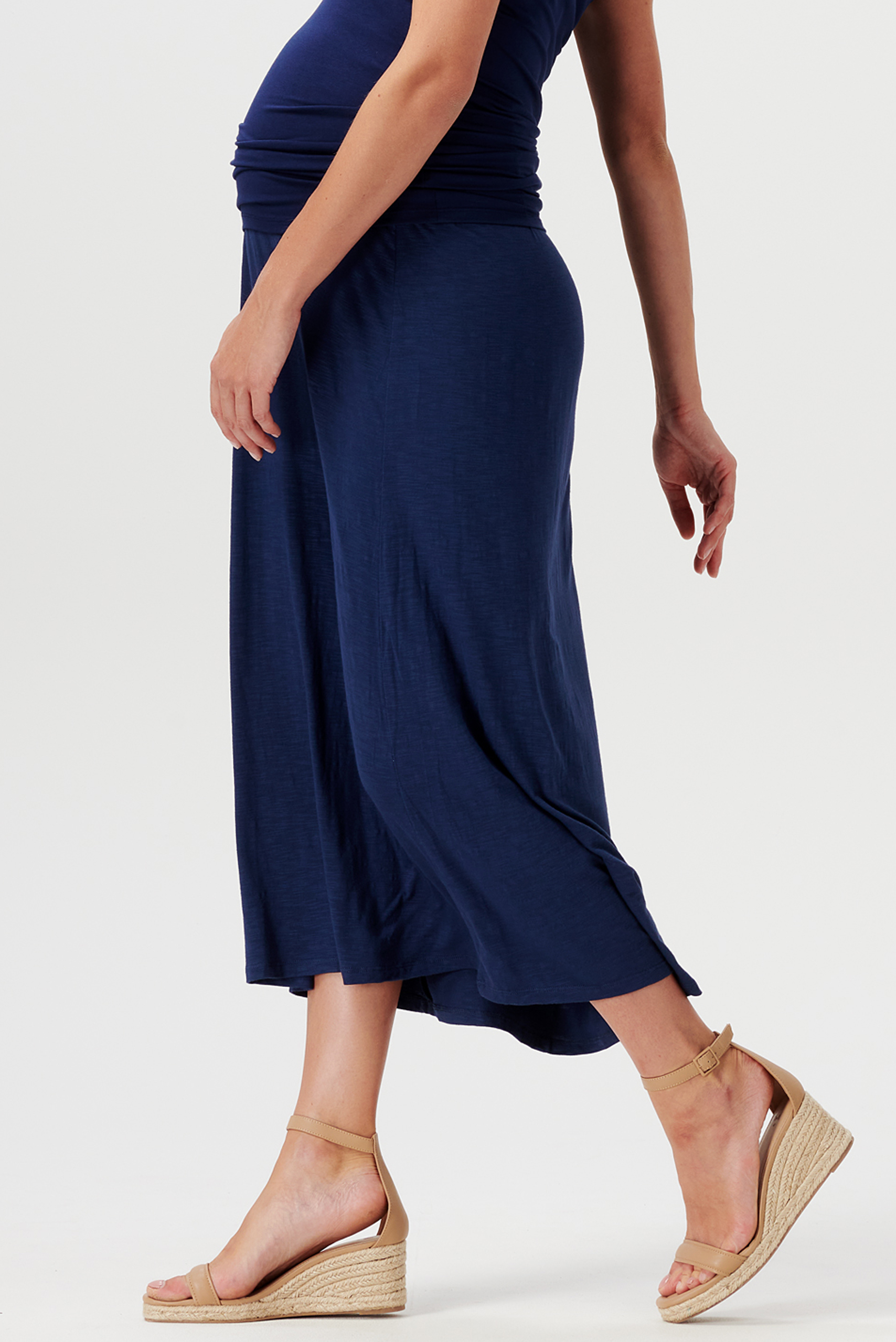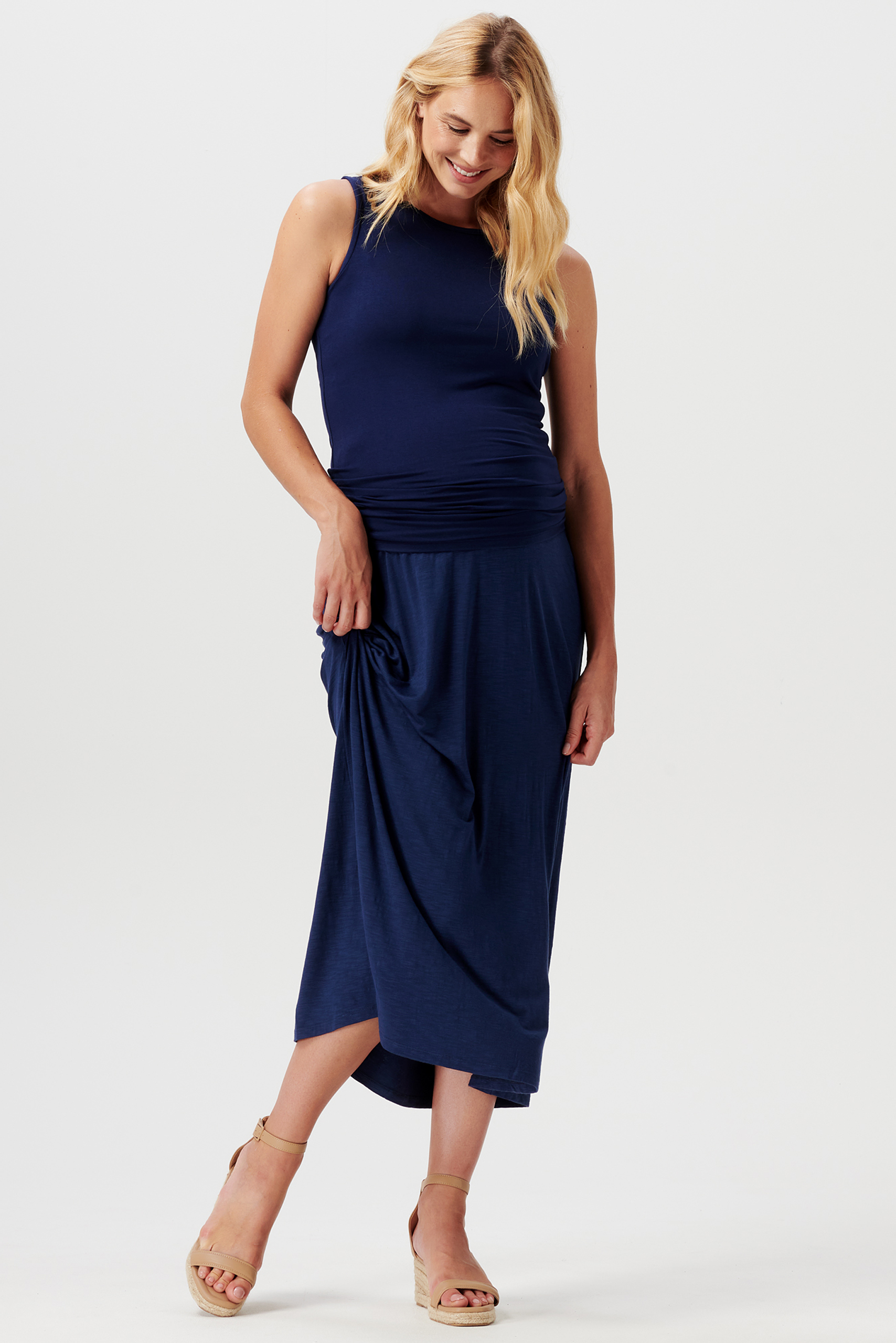 Midi Umstandsrock aus weicher EcoVero™ Viskose. Der elastische Gummizug im Bund sorgt dafür, dass der Rock zu jederzeit bequem unter deinem Bauch sitzt, ohne einzuengen. Farbe: navy