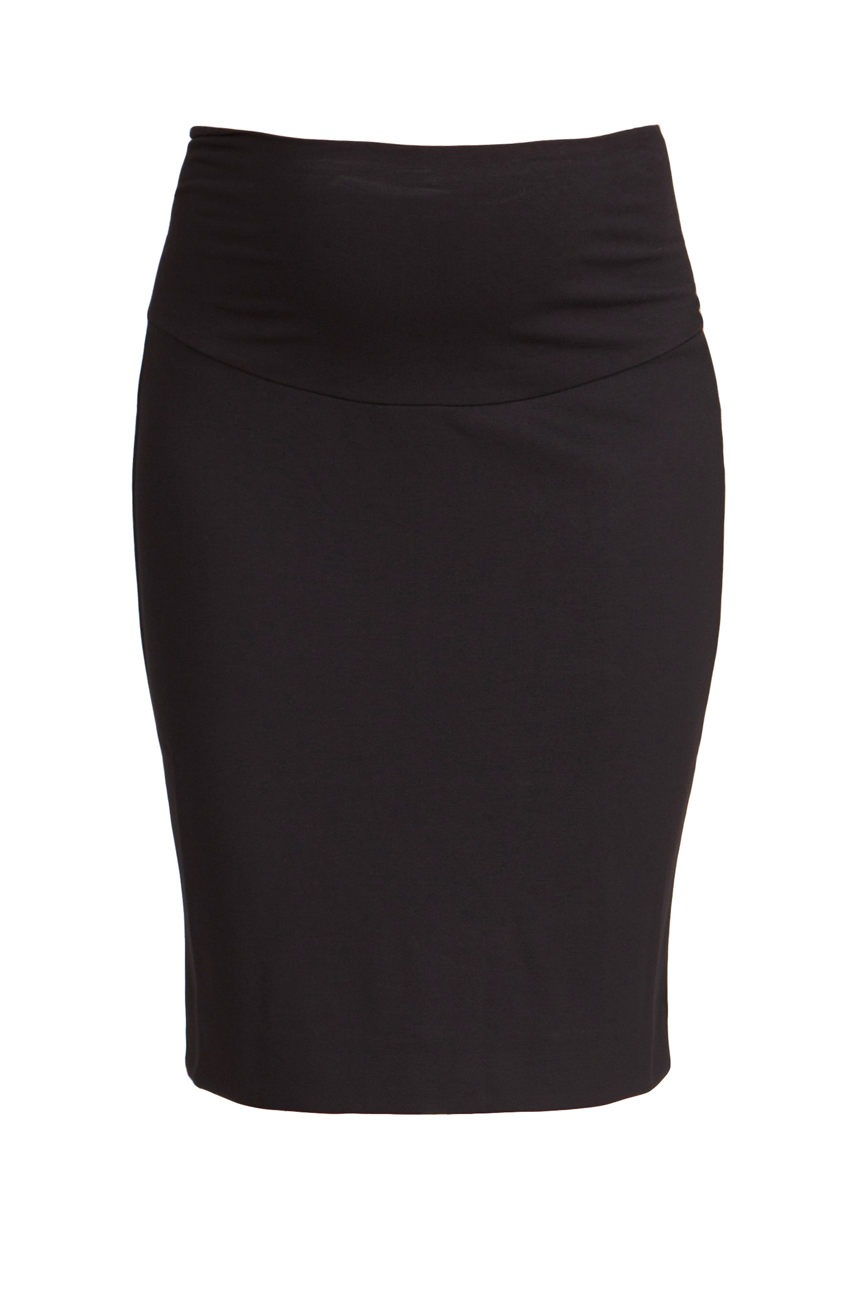 Stretchiger Pencil-Rock mit komfortablem Rollover-Bund, der flexibel mitwächst. Modell ohne Taschen.Farbe: schwarz