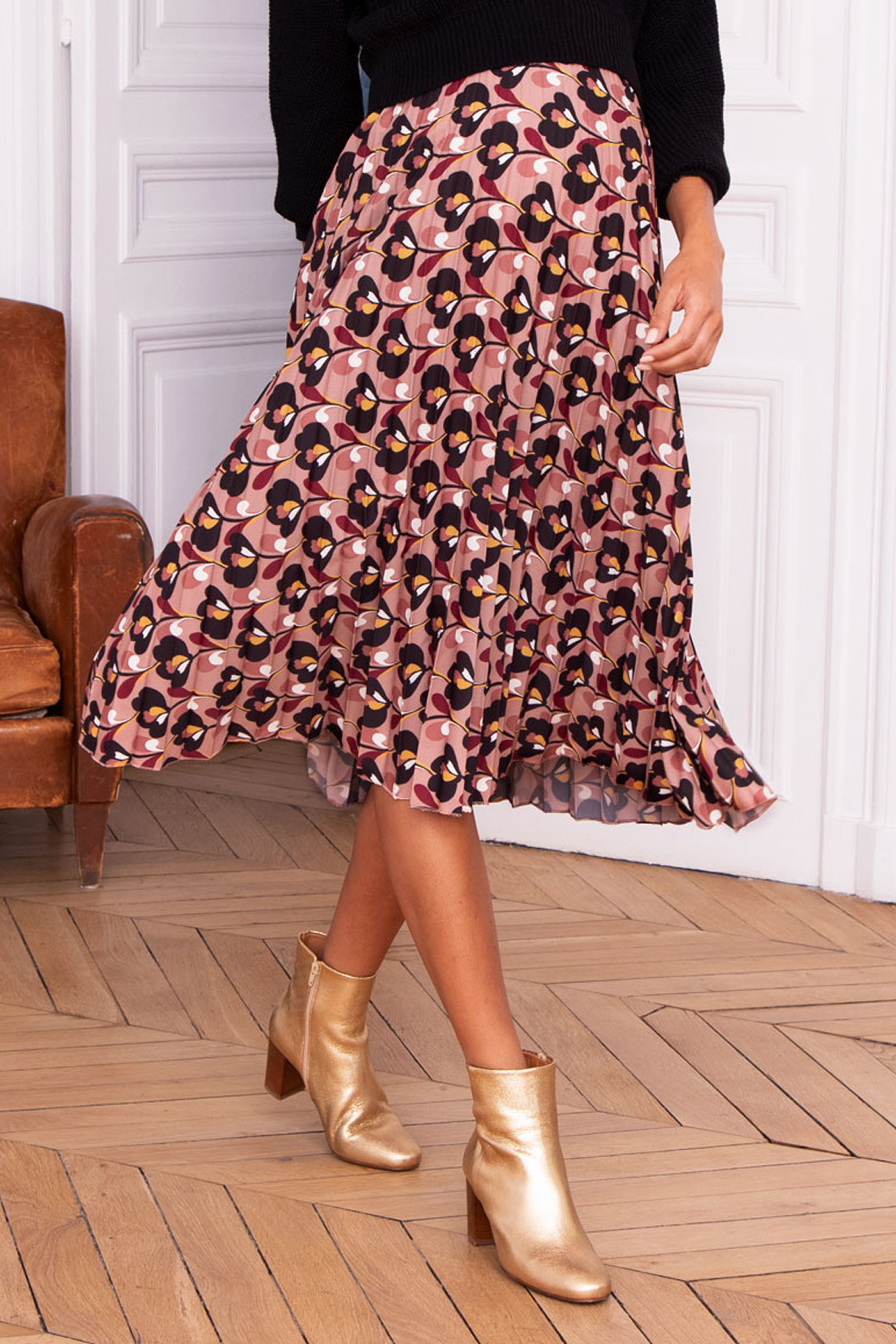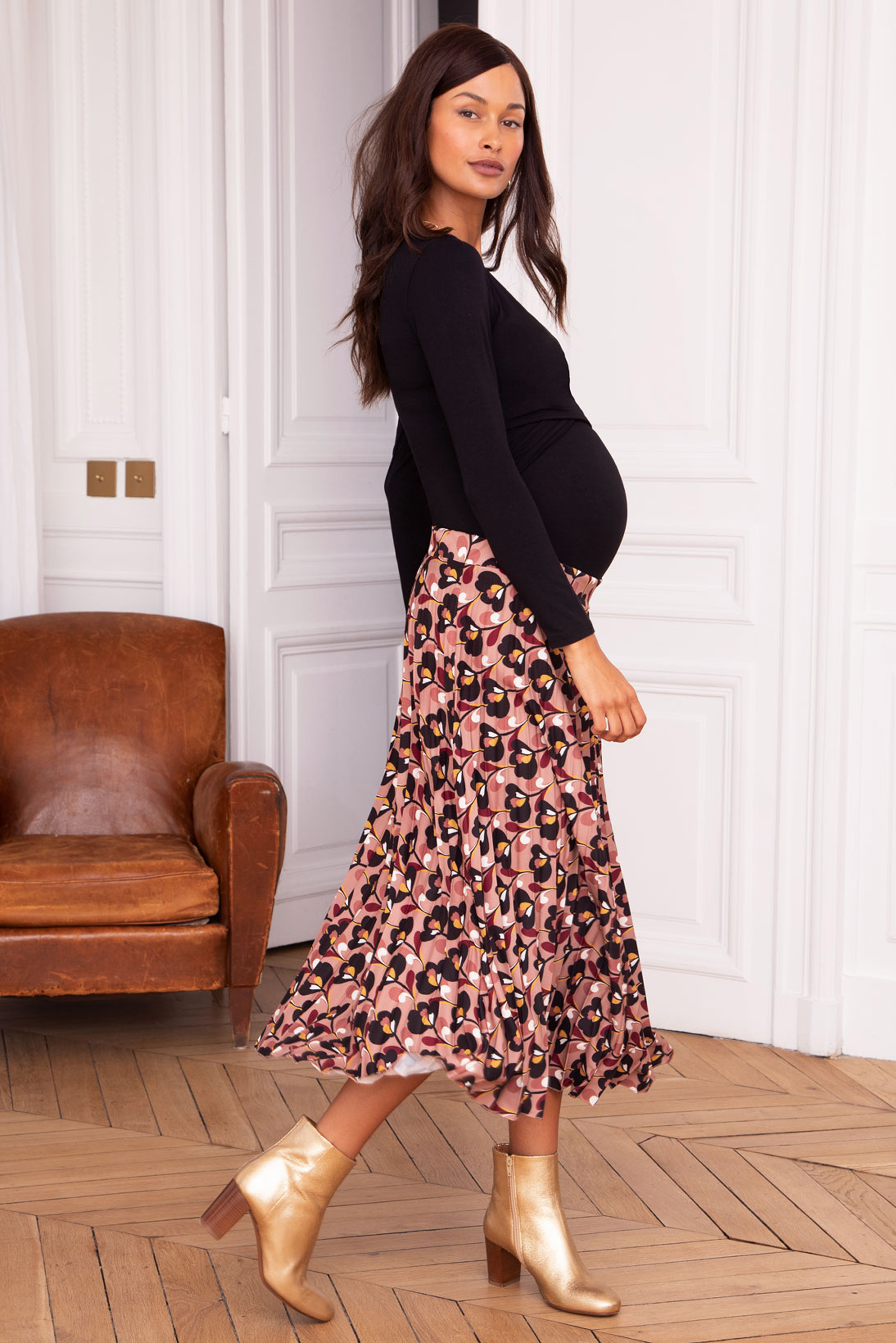Umstands-Faltenrock aus weichem und fließendem Material in Einheitsgröße, der während der gesamten Schwangerschaft wunderschön über deinen Babybauch fällt. Die elastische Taille sorgt dabei dafür, das der Rock zu jederzeit bequem sitzt ohne einzuengen. Zu kannst ihn über oder unter dem Bauch tragen und so zu vielfältigen Styles kombinieren. Länge: ca. 80cm Farbe: rosa/print