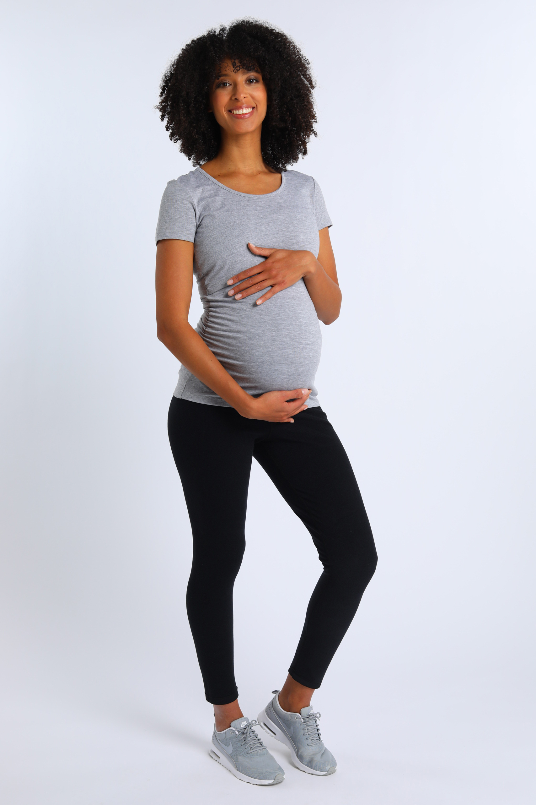 Passform-Info: Unser Model Diana ist 180cm groß und auf den Fotos in der 35. SSW. Sie trägt das Shirt in Größe S.