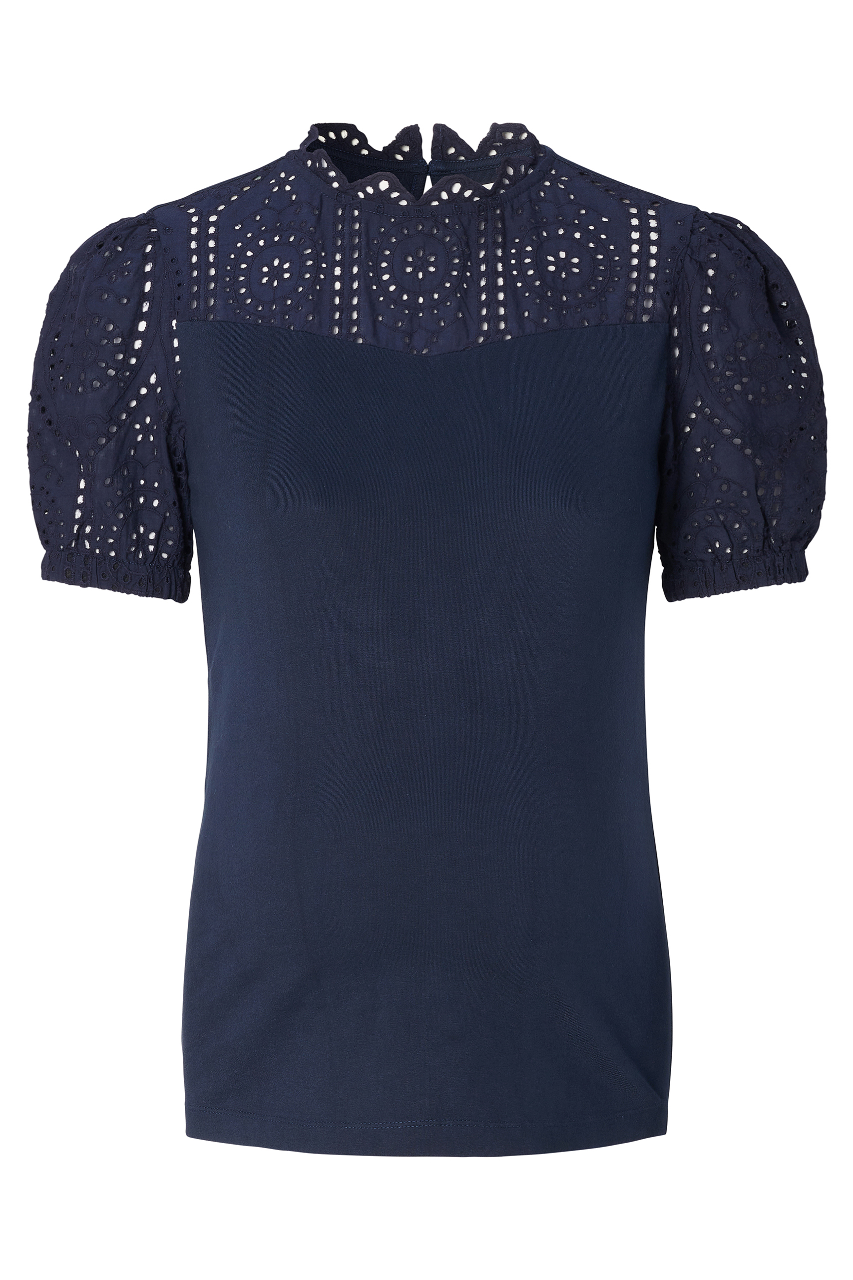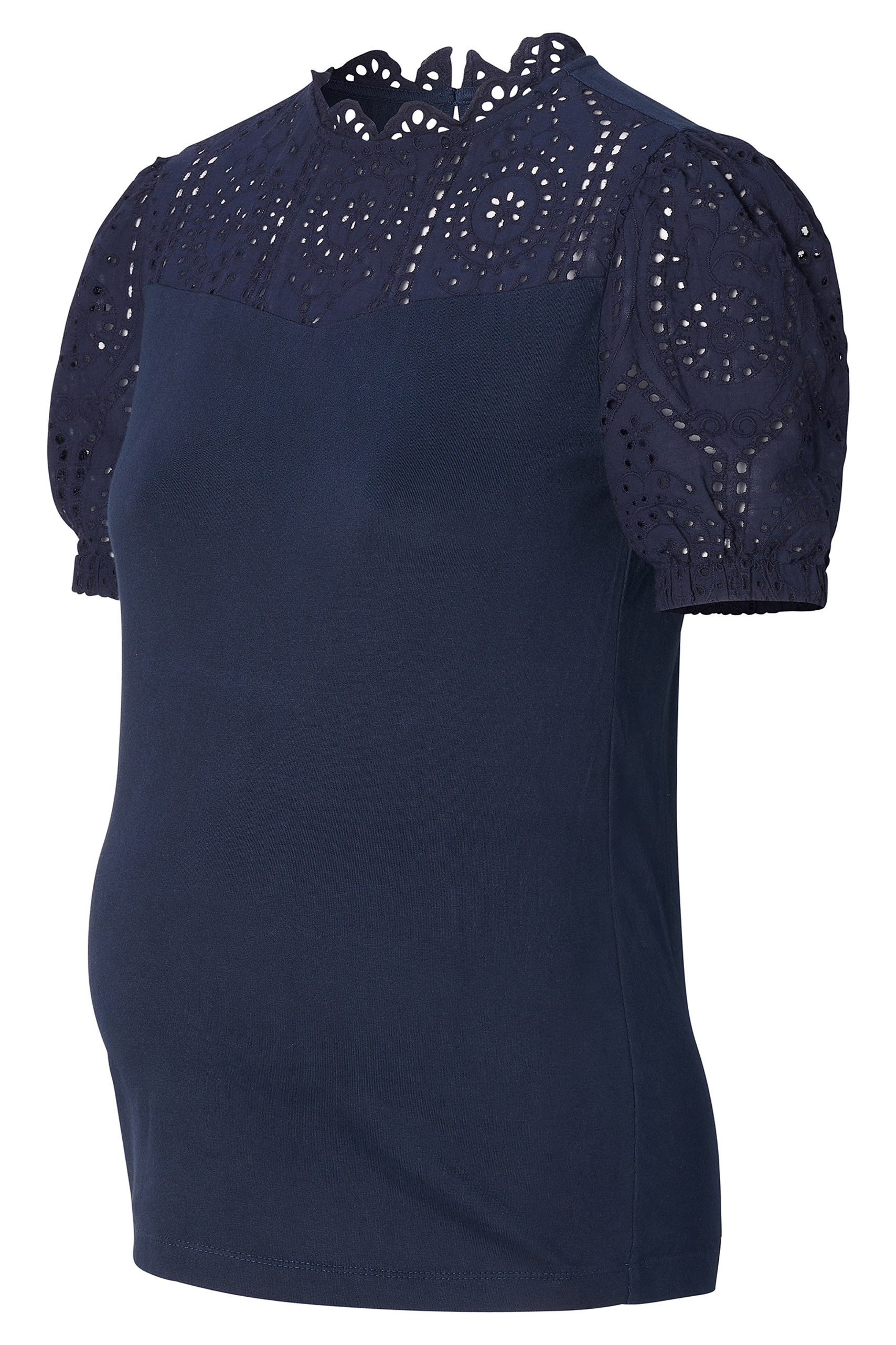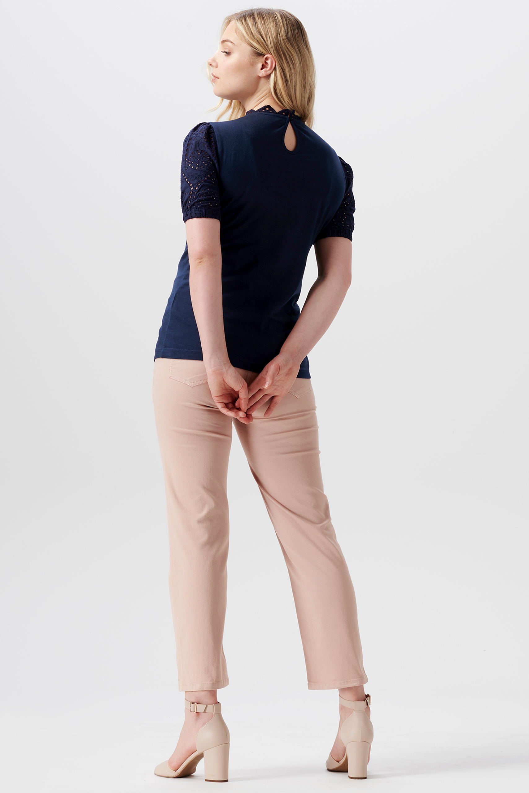 Umstandsshirt aus weicher BCI* Baumwolle mit Häkelpitze an Ärmeln und Ausschnitt, die dem Shirt einen besonders eleganten und femininen Look verleiht. Das körperbetont geschnittene Shirt schmiegt sich sanft an deine Kurven an. Du kannst es super zur Jeans, einem Rock oder mit einem Blazer kombinieren. Farbe: navy