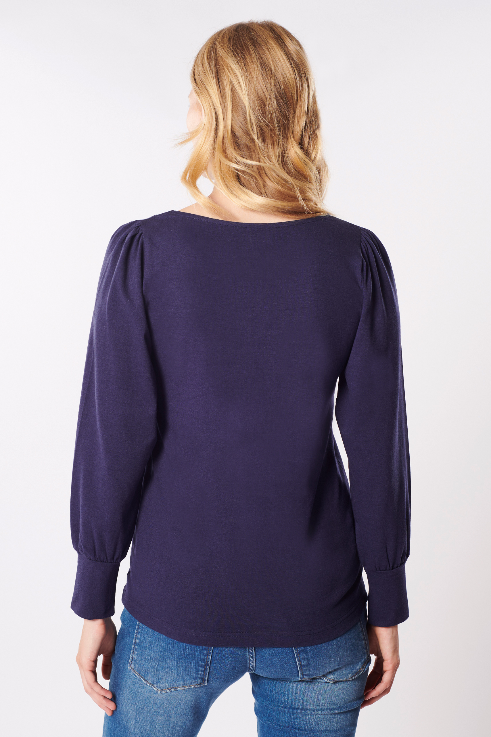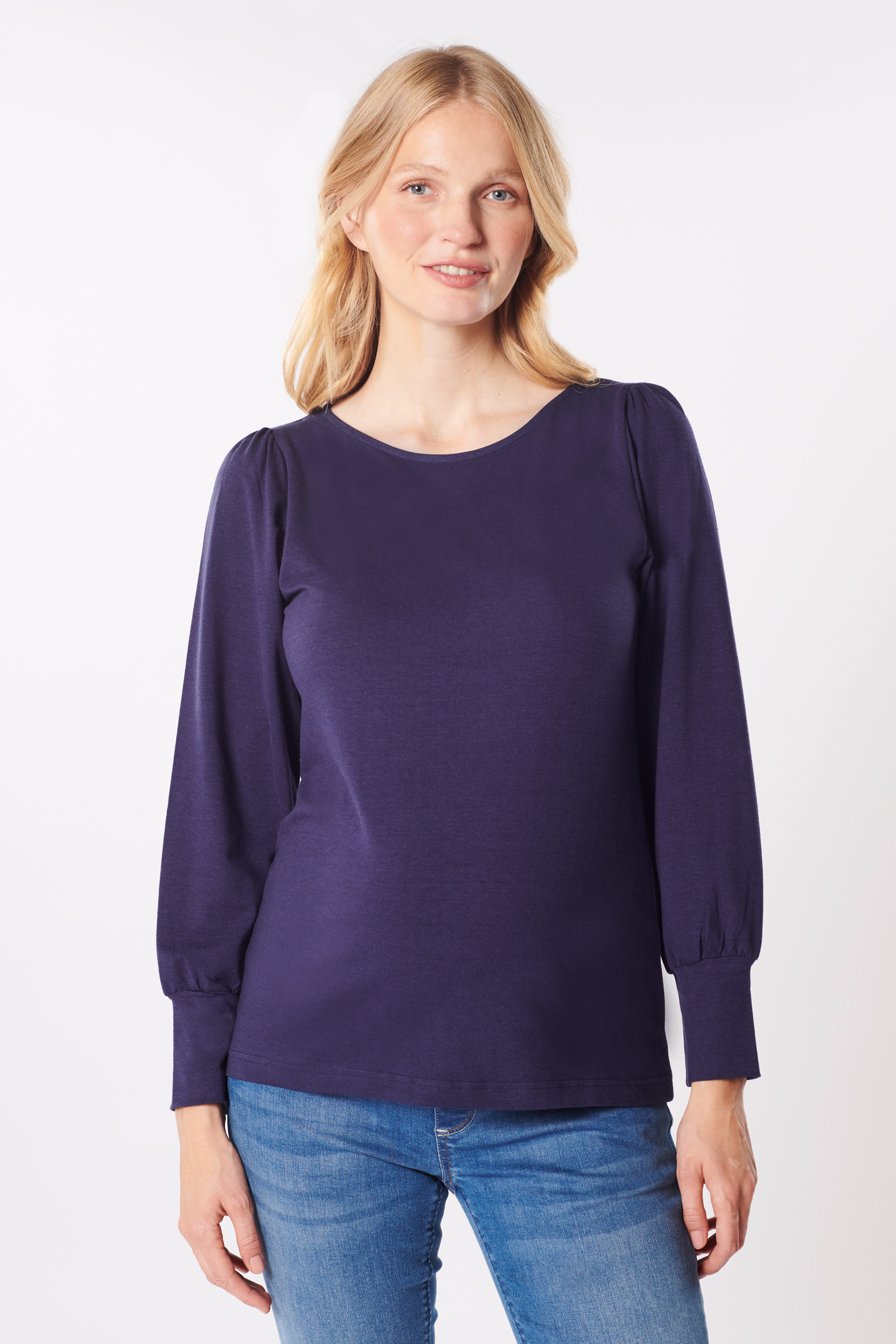 Boatneck Umstandsshirt mit Puffärmeln aus dehnbarem Material. Die Puffärmel und der Rundhalsausschnitt verleihen dem Shirt eine elegante Note. Der flexible Stoff bietet eine optimale Passform und extra hohen Tragekomfort. Zusätzlich verleiht der enge Bund an den Ärmeln einen modischen Look. Zudem eignet sich das Shirt perfekt für den Alltag und kann sowohl schick unter einem Blazer als auch sportlich mit Sneakern und Jeans kombiniert werden. Farbe: navy