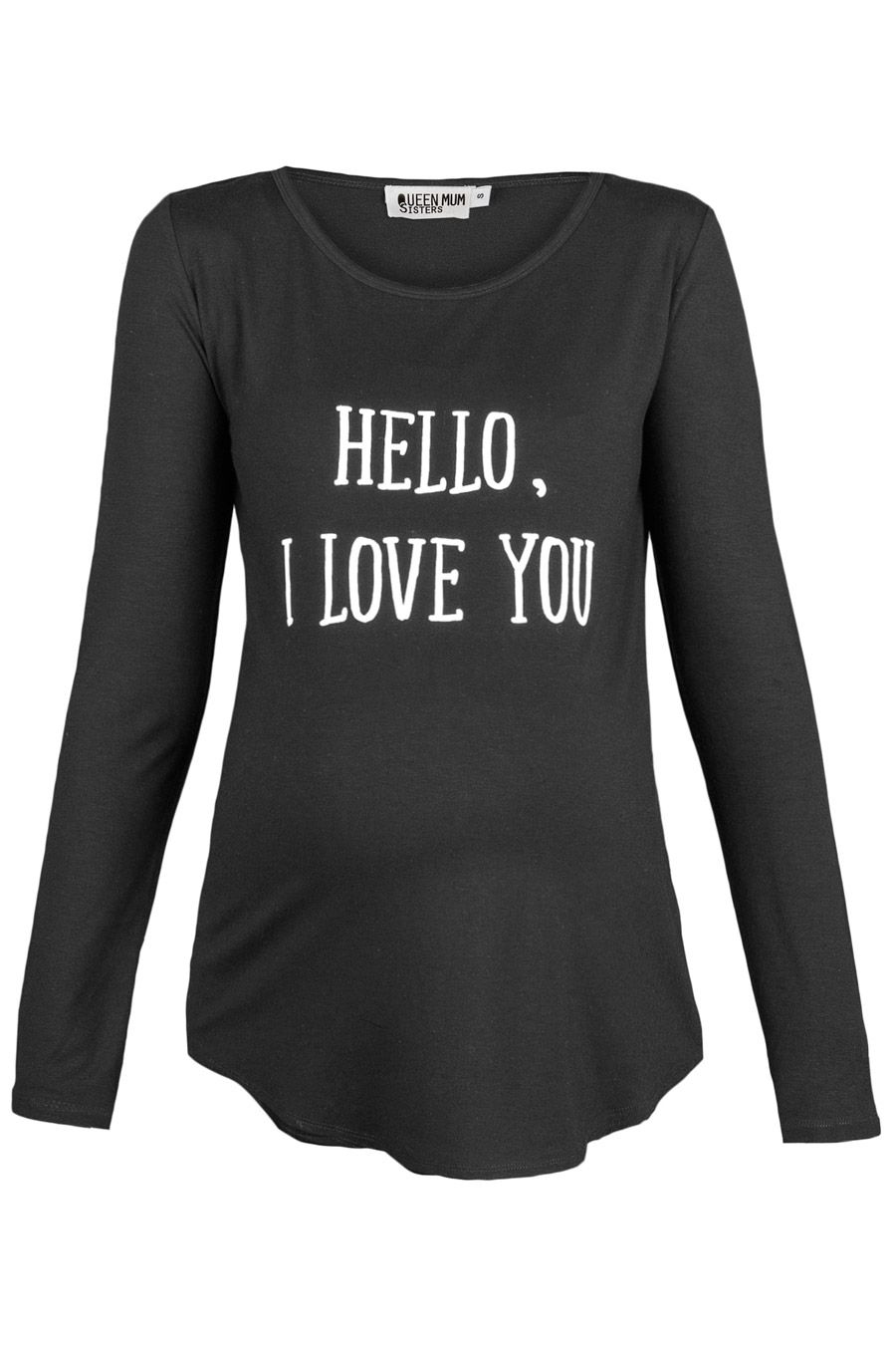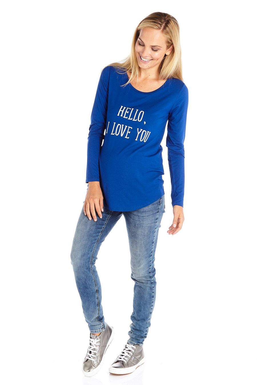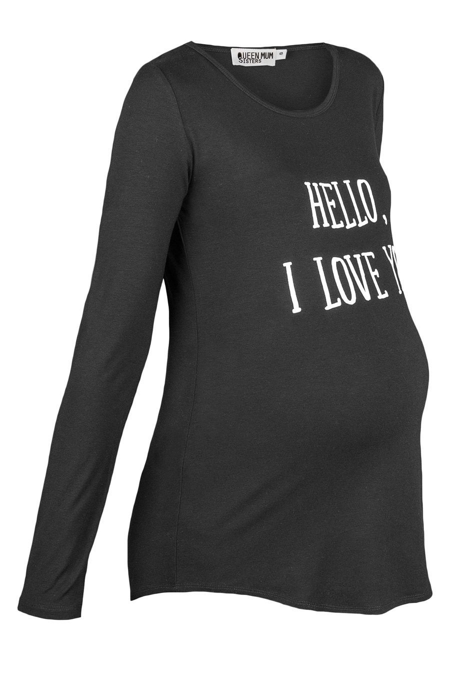 Umstands-Shirt in leichter A-Linie mit Rundhalsausschnitt, langen Ärmeln und Slogan-Print.