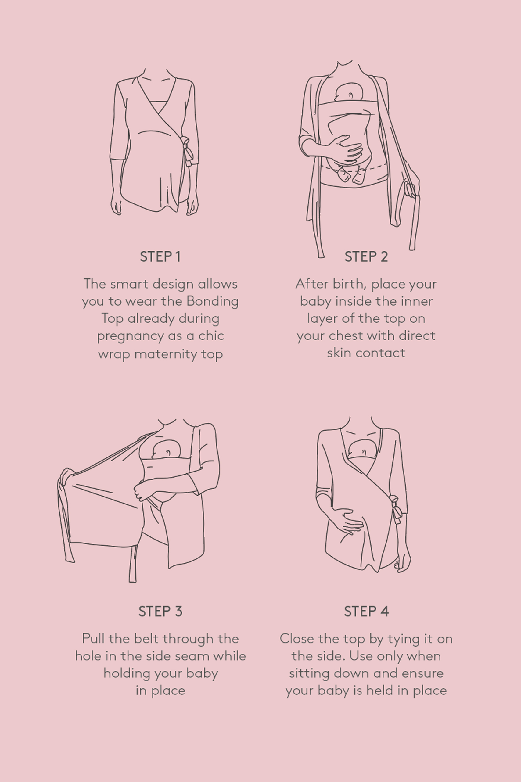 Bitte beachte: es handelt sich bei diesem Shirt um keine Babytrage! Es wurde speziell für den Hautkontakt mit deinem neugeborenen Baby im Sitzen designt.