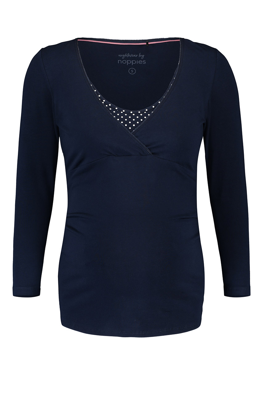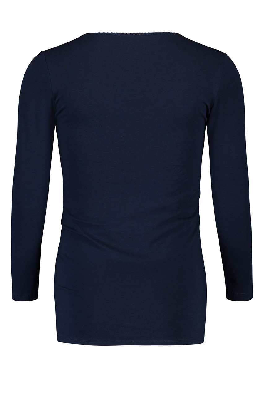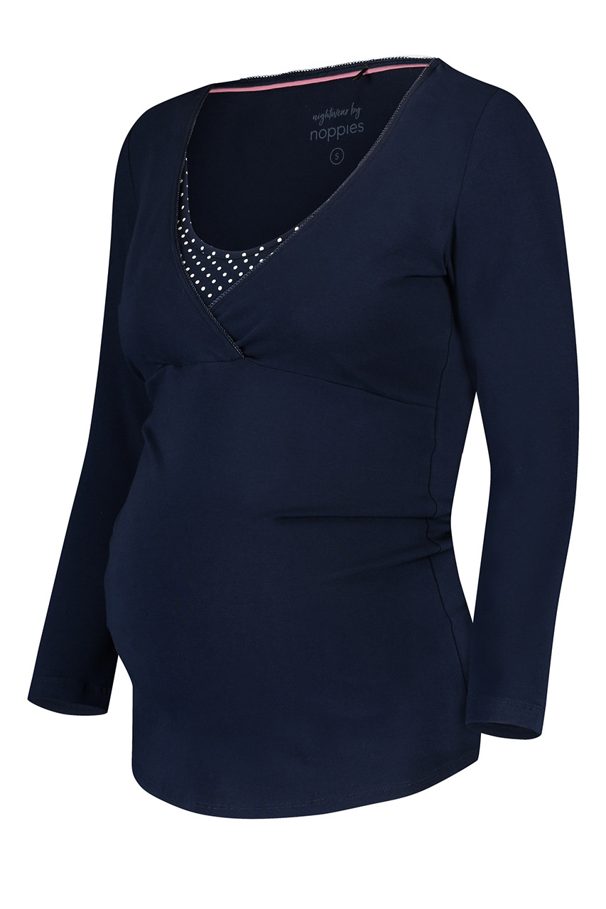 Länger geschnittenes Umstands- und Stillshirt aus weicher und elastischer Bio-Baumwolle mit Dreiviertelärmel. Über den praktischen Ausschnitt mit Stoffüberlappung erhältst du einen schnellen Stillzugang, in der Schwangerschaft passt sich der Stoff wunderbar an deinen wachsenden Bauch an. Farbe: navy